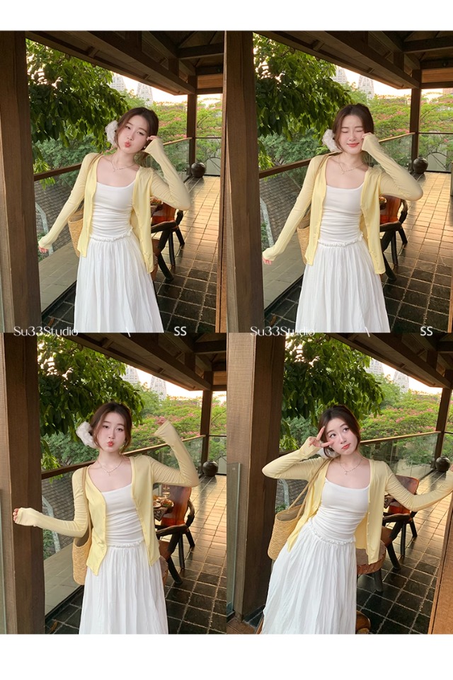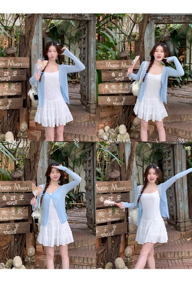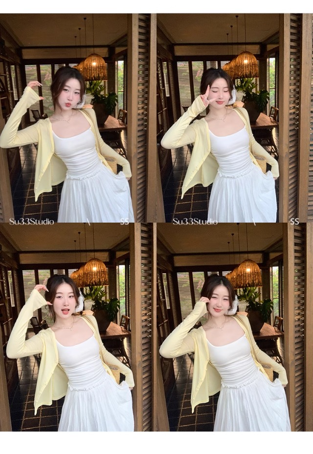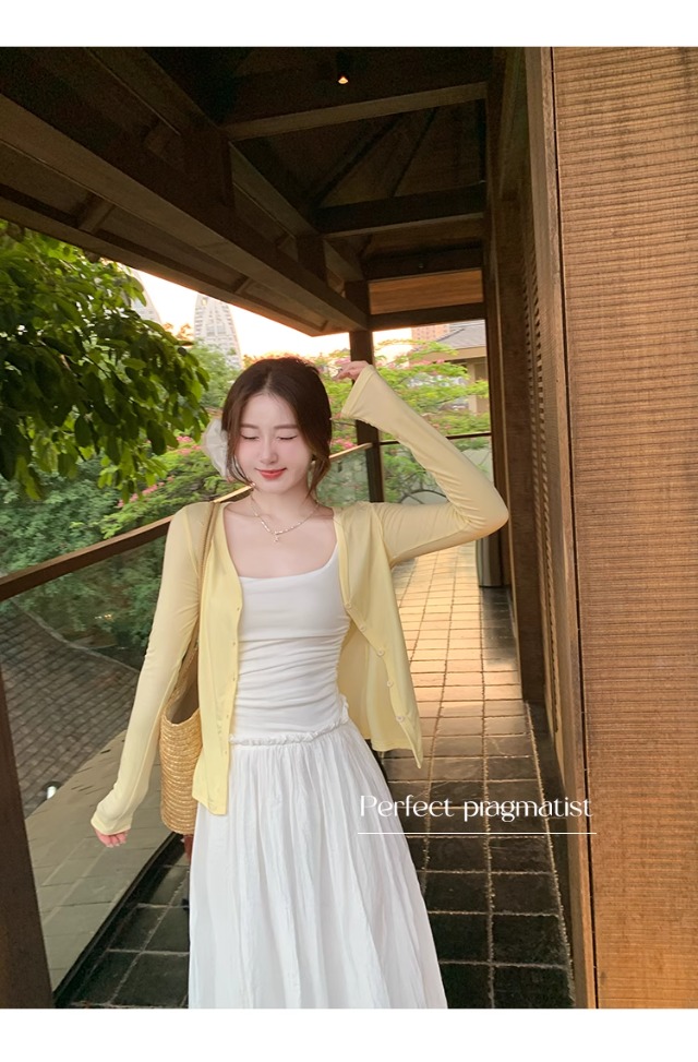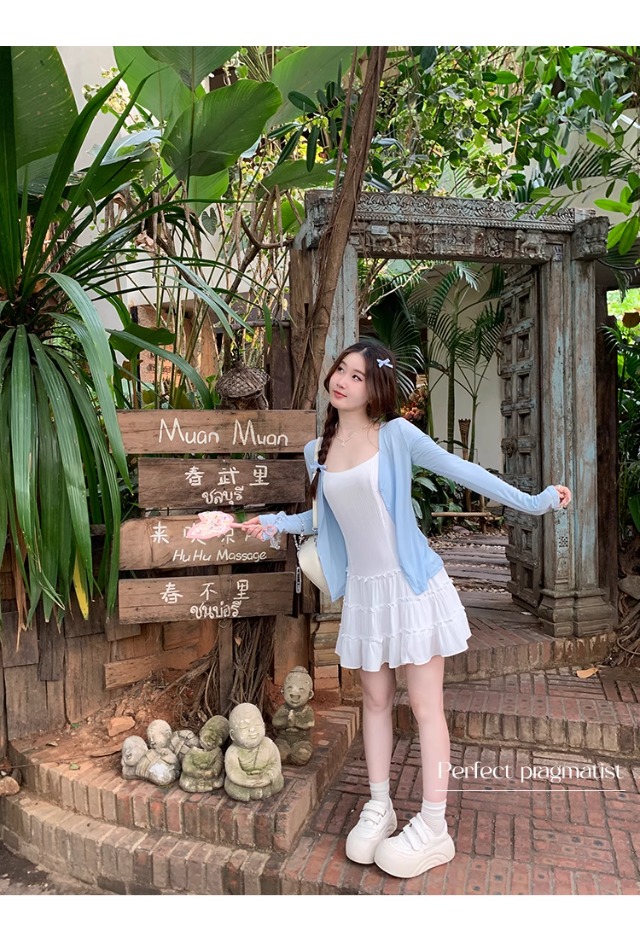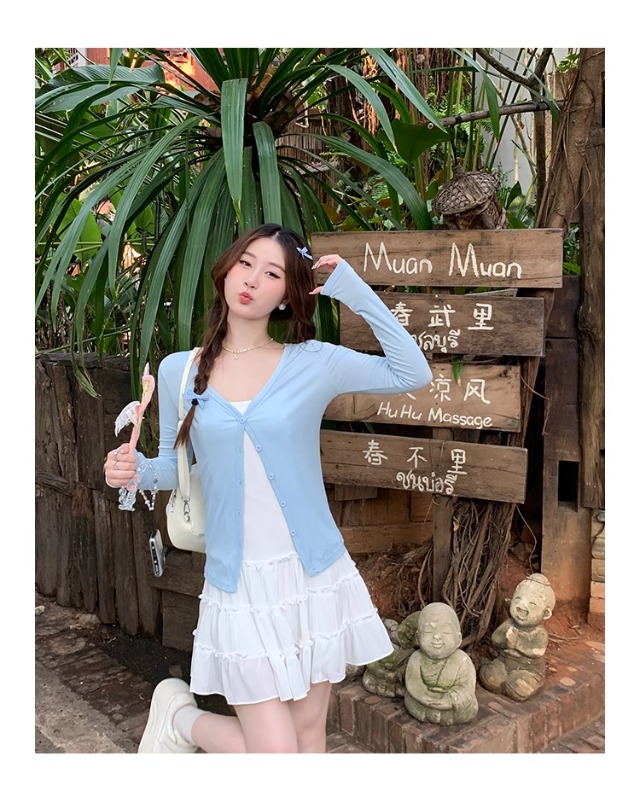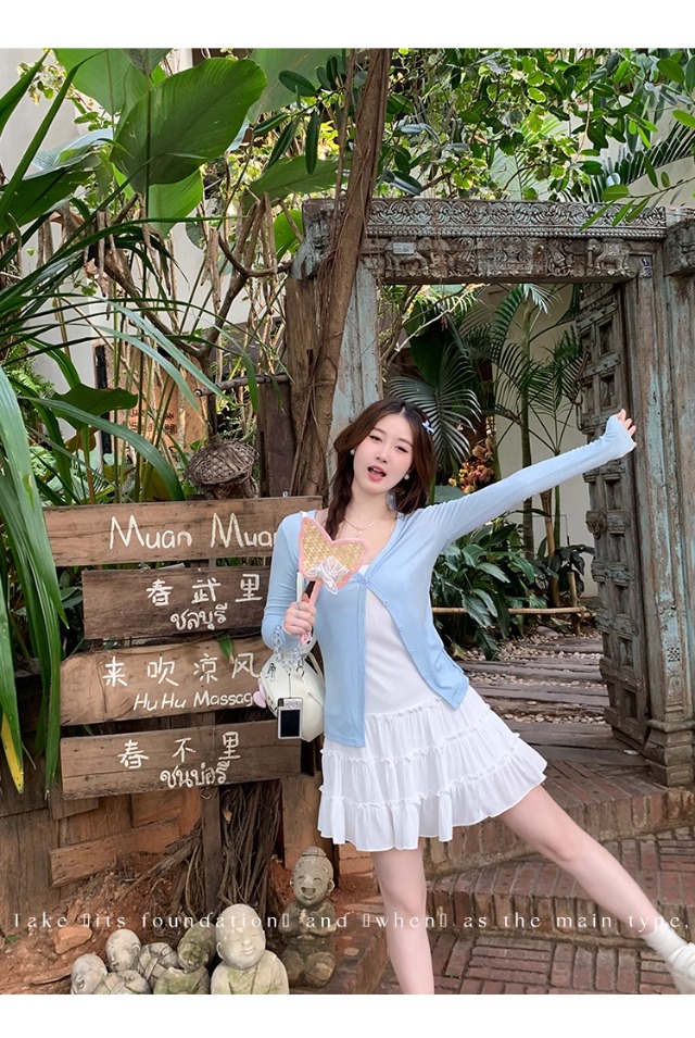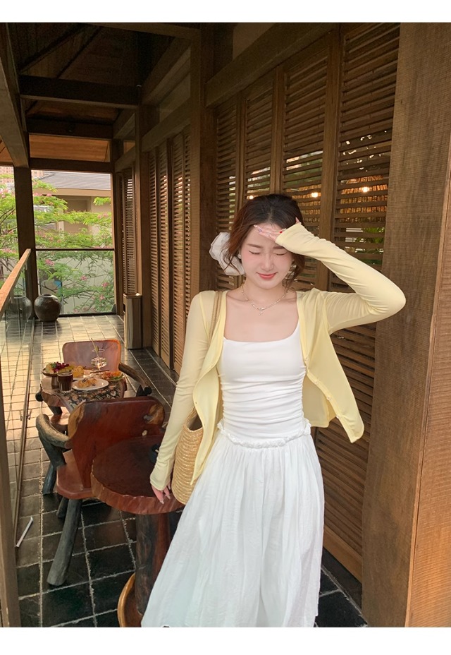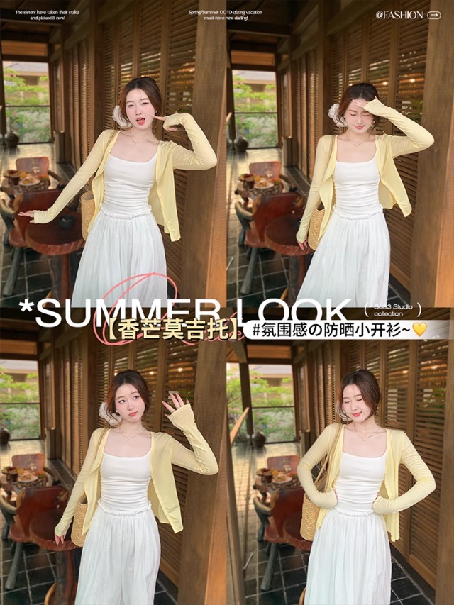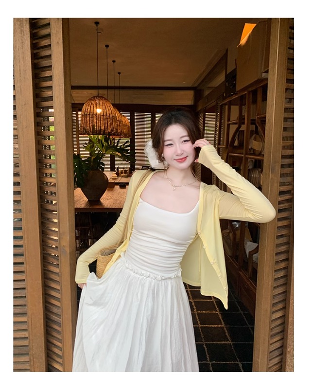 白色针织晒罩衫2026新款夏季吊带裙外搭开衫女外套薄款冰丝上衣
