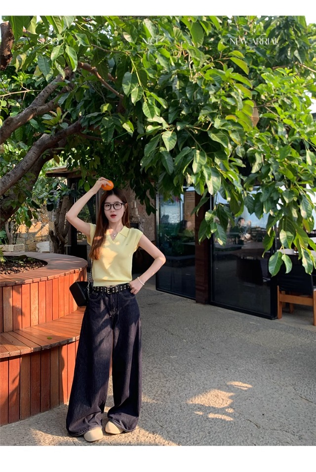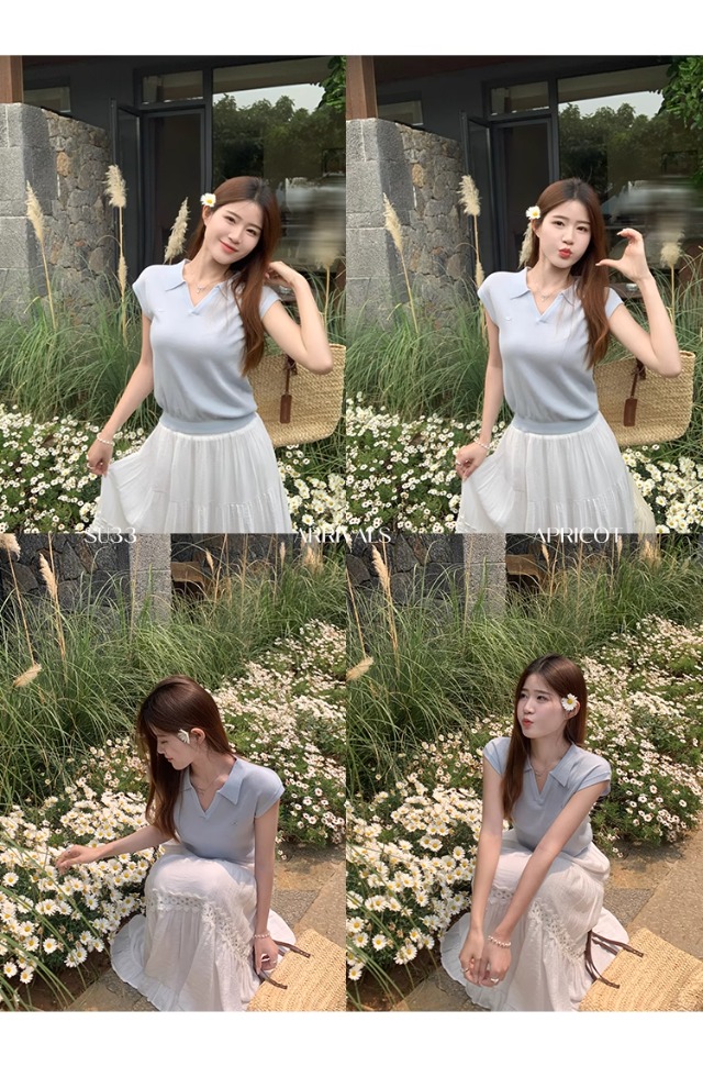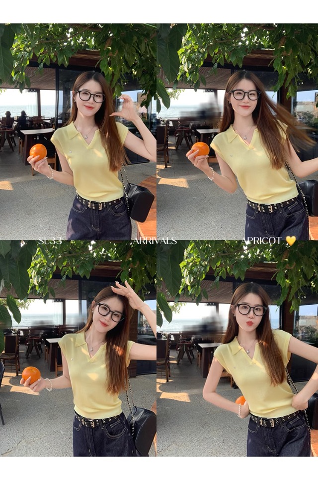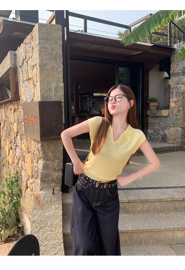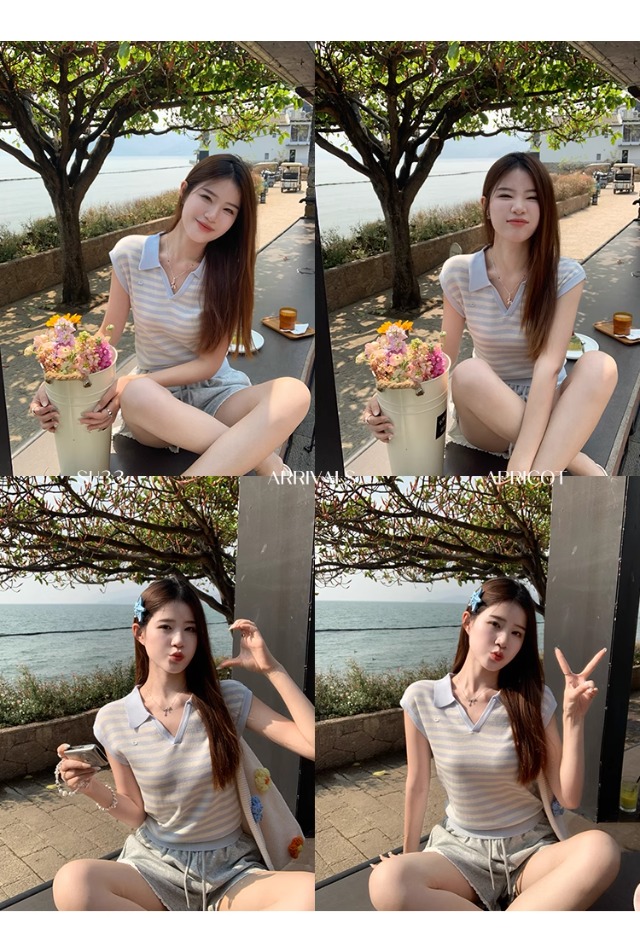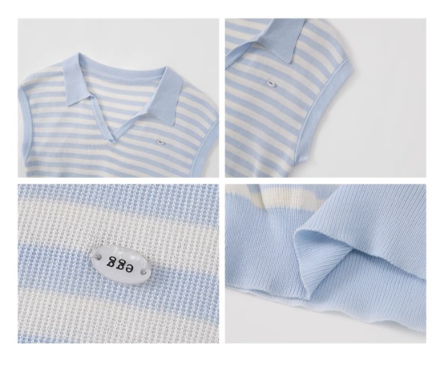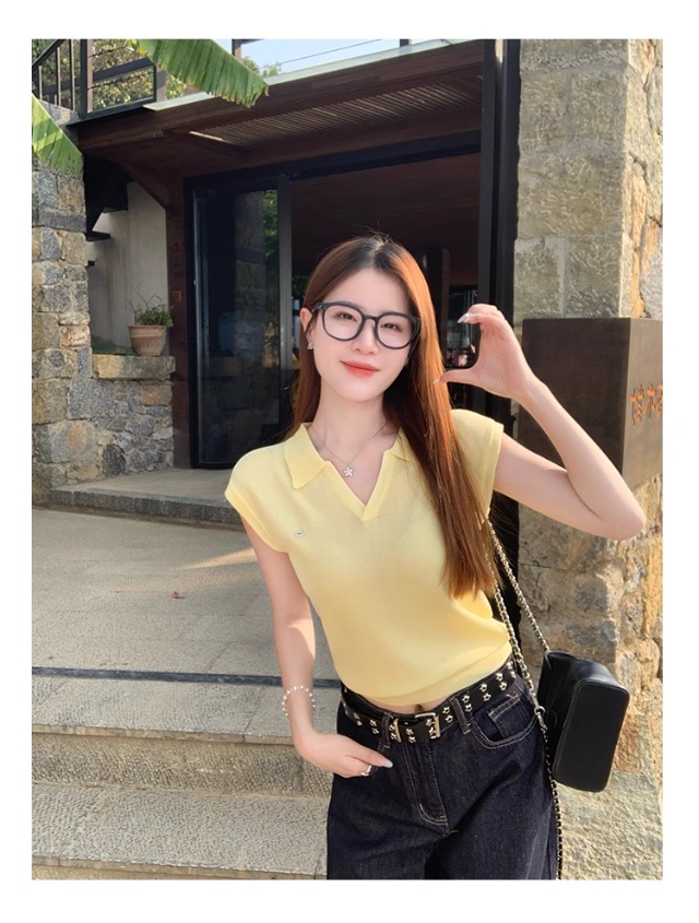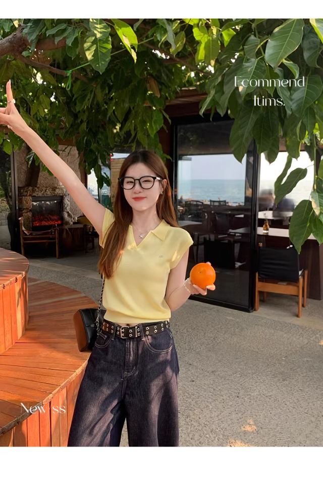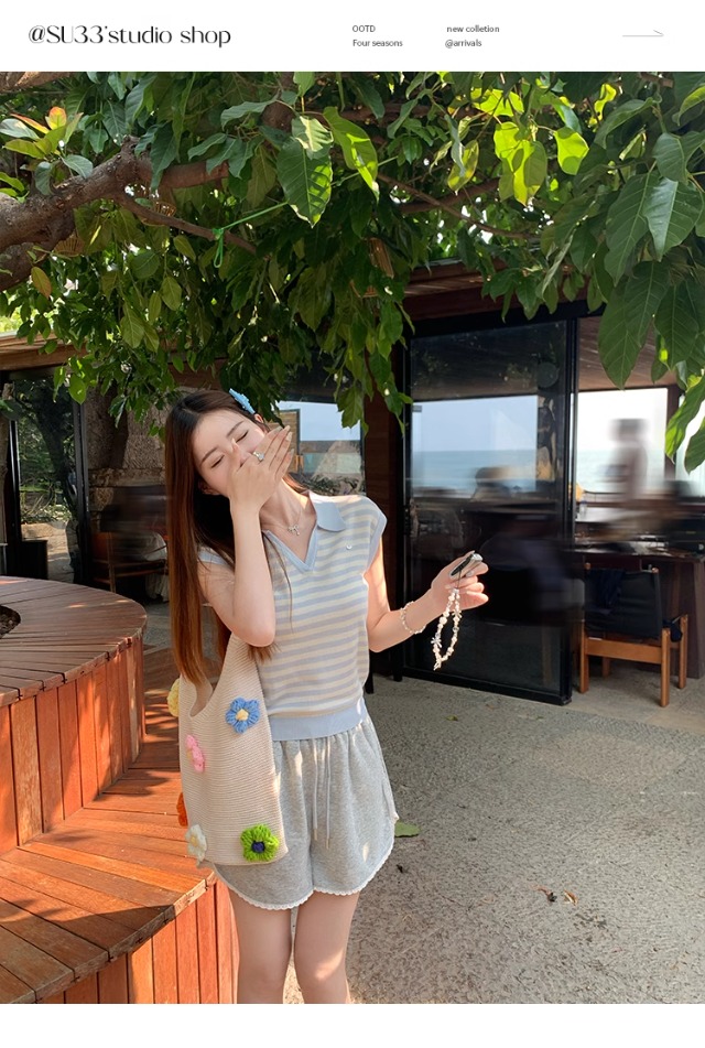 针织短袖女2026新款夏季薄款polo领t恤高级感短款条纹上衣