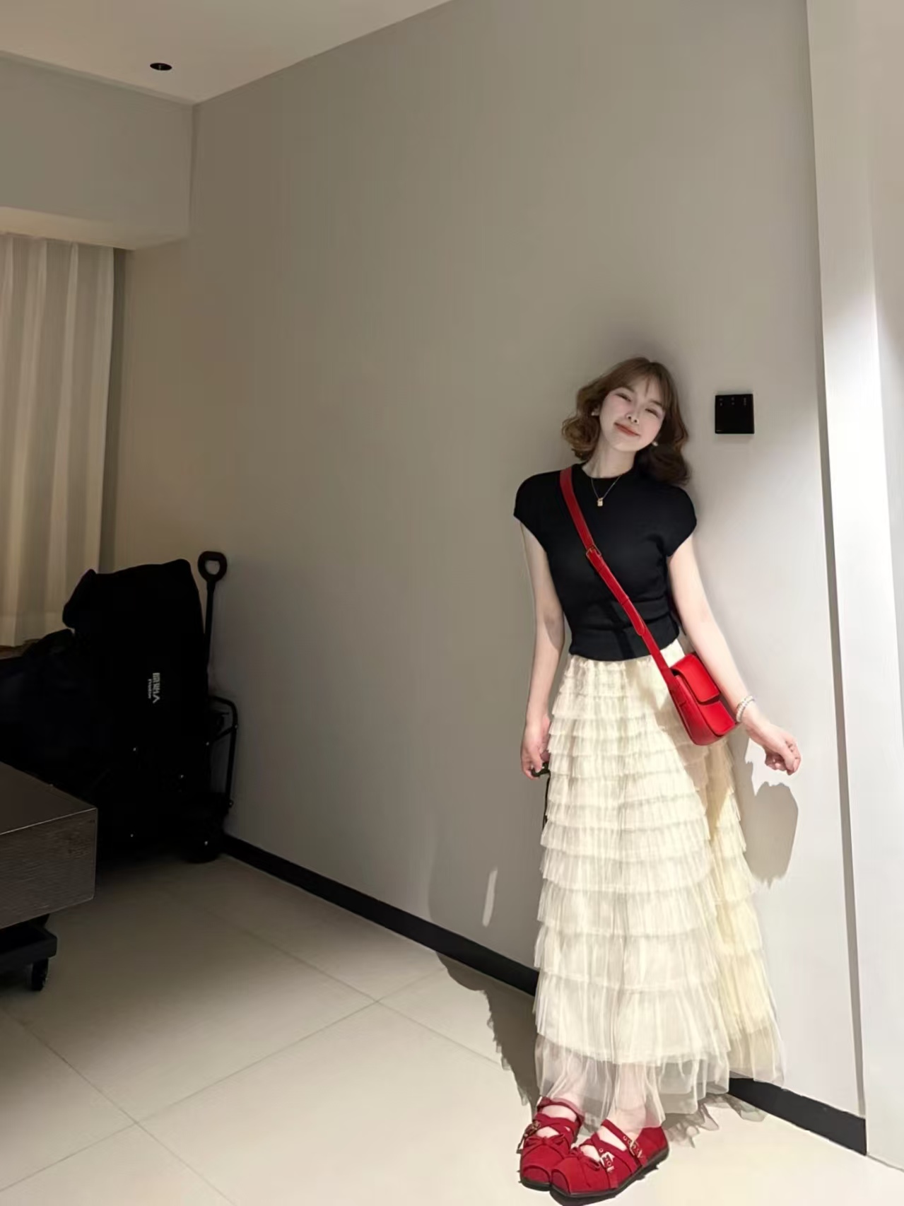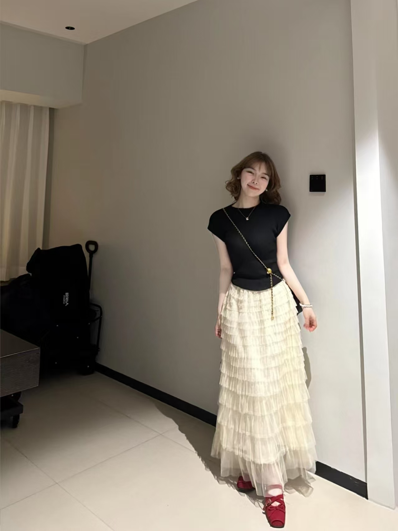 气质氛围感穿搭ins甜辣修身显瘦短袖T恤上衣女蛋糕半身裙两件套装