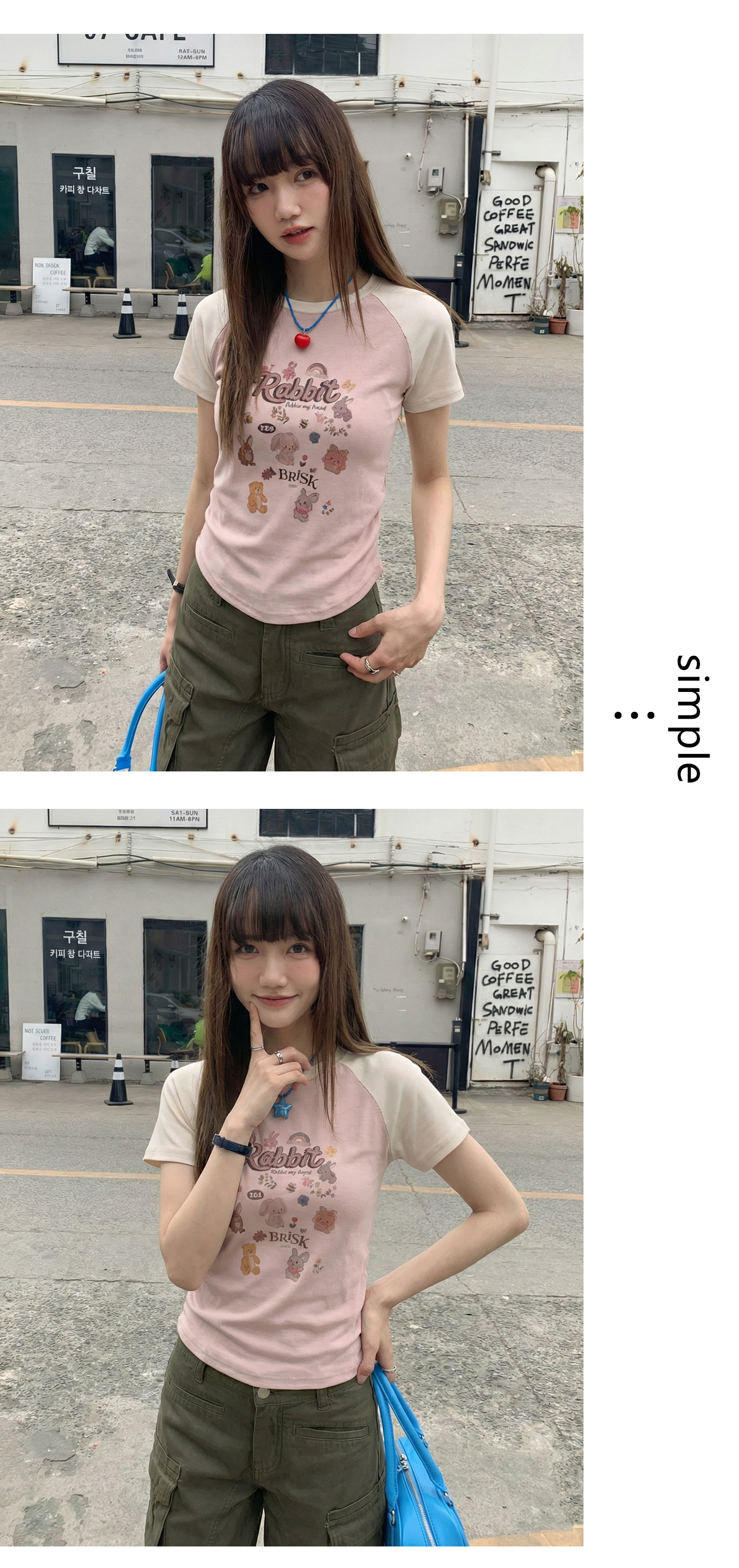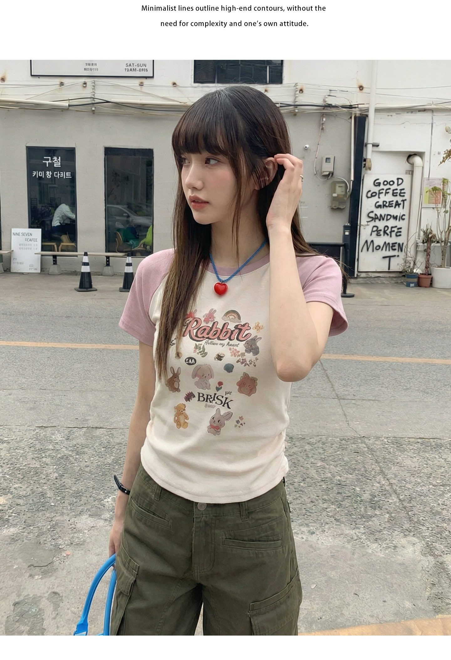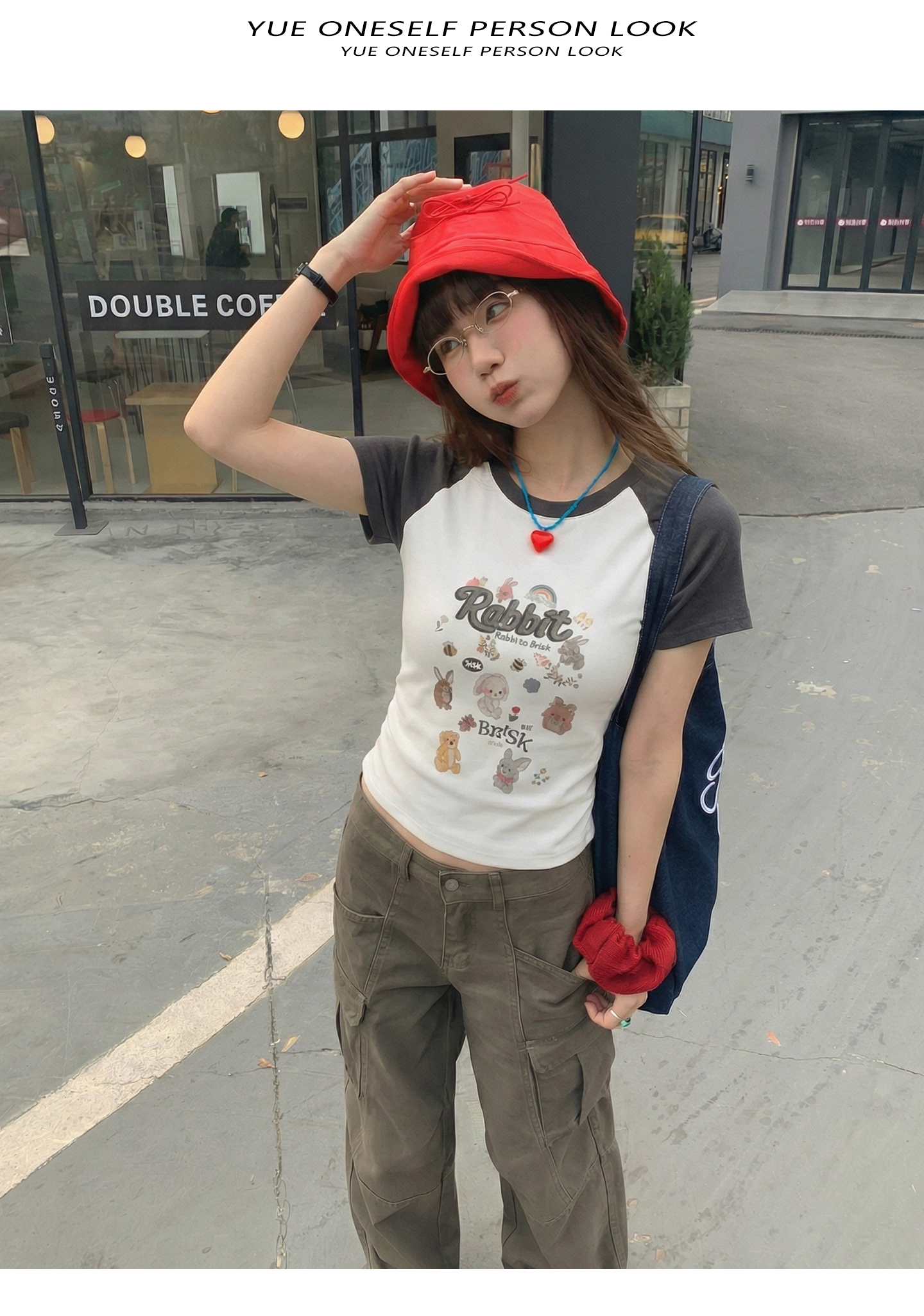 实拍实价#美式复古卡通印花插肩袖短袖t恤女春季设计感短款上衣