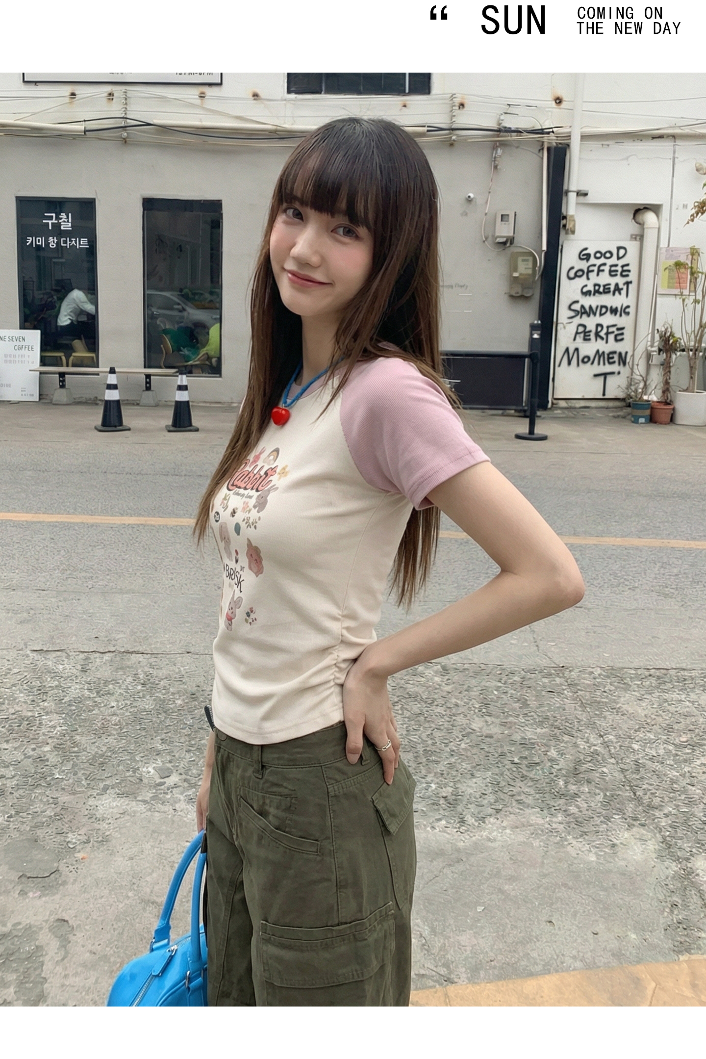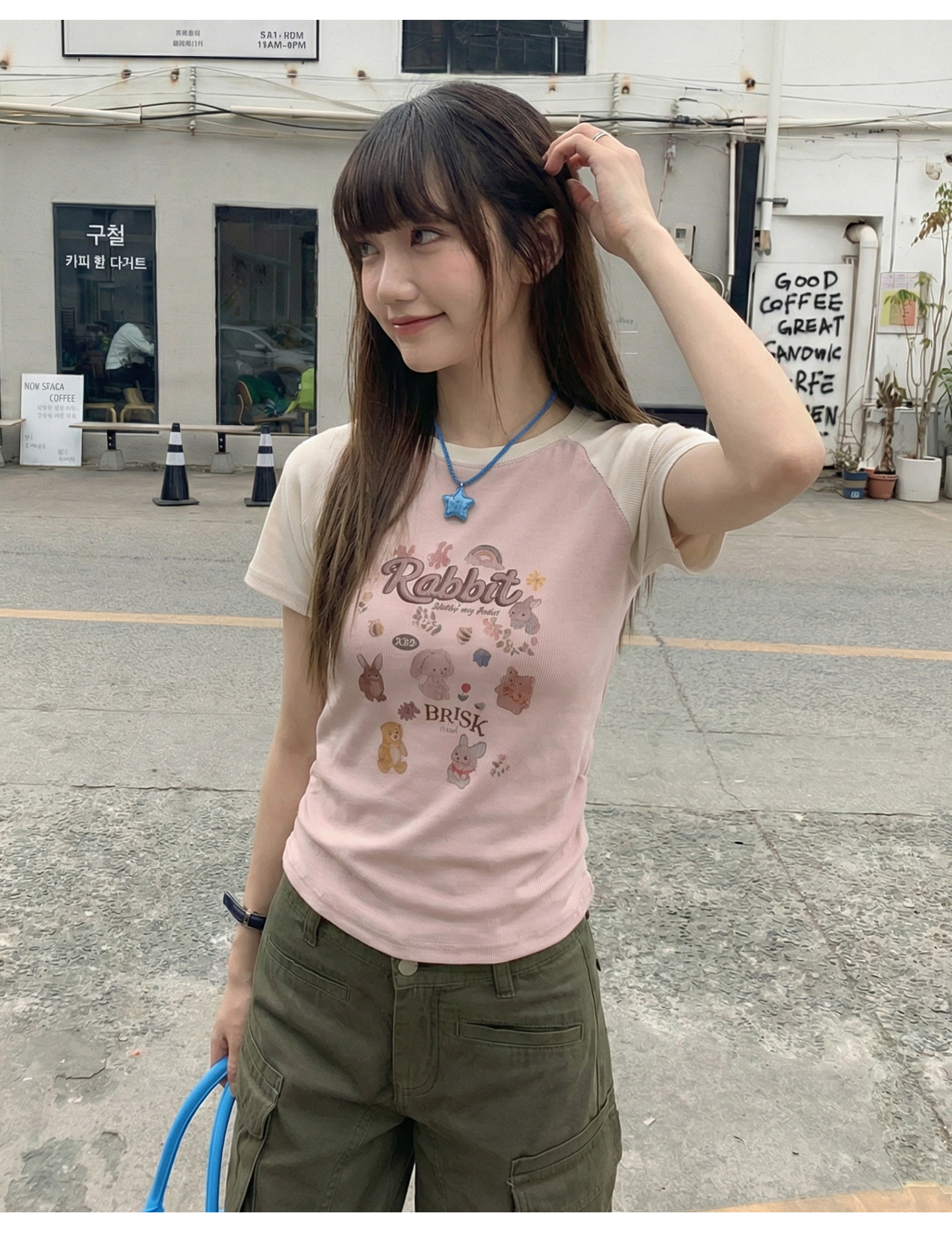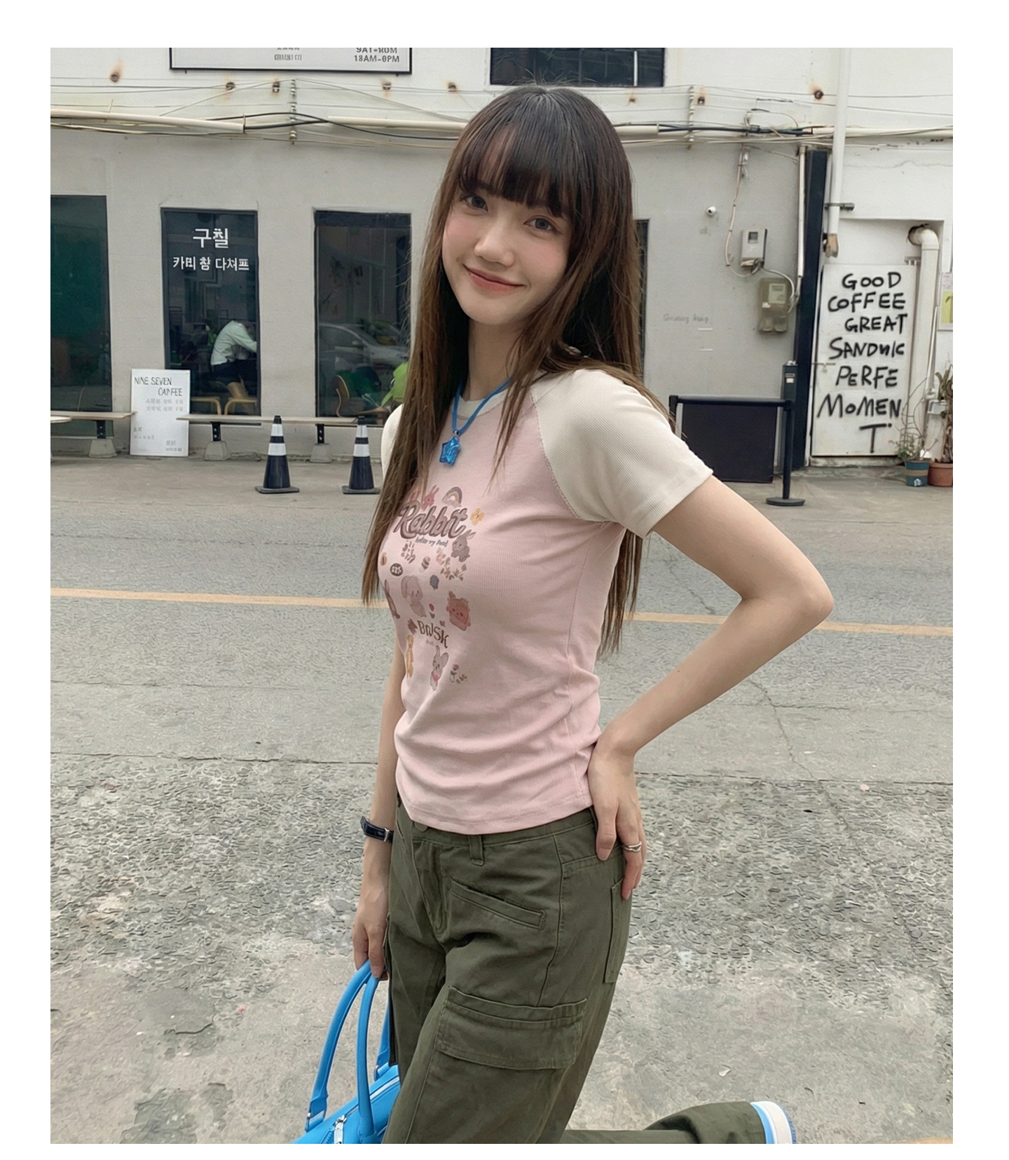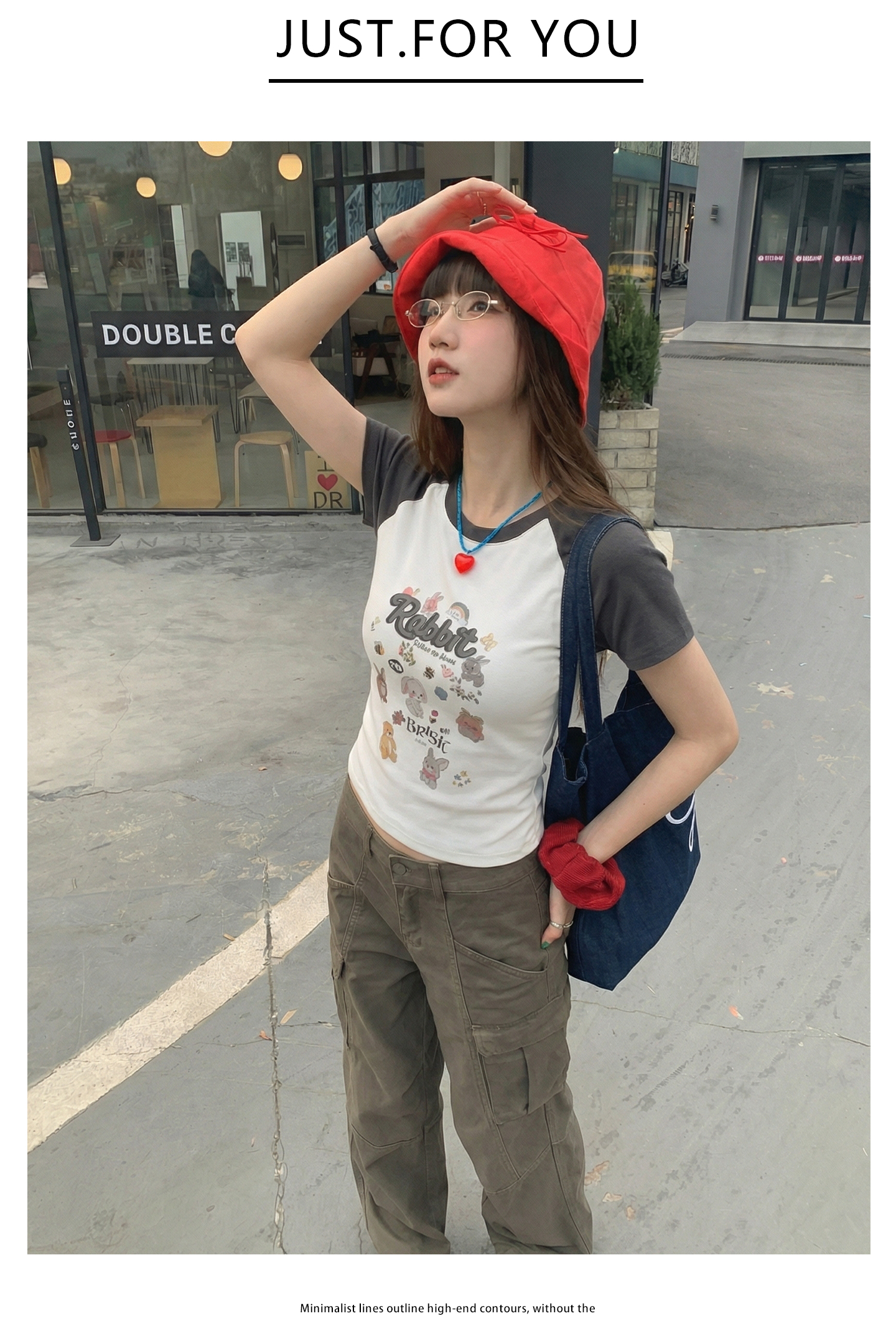 实拍实价#美式复古卡通印花插肩袖短袖t恤女春季设计感短款上衣