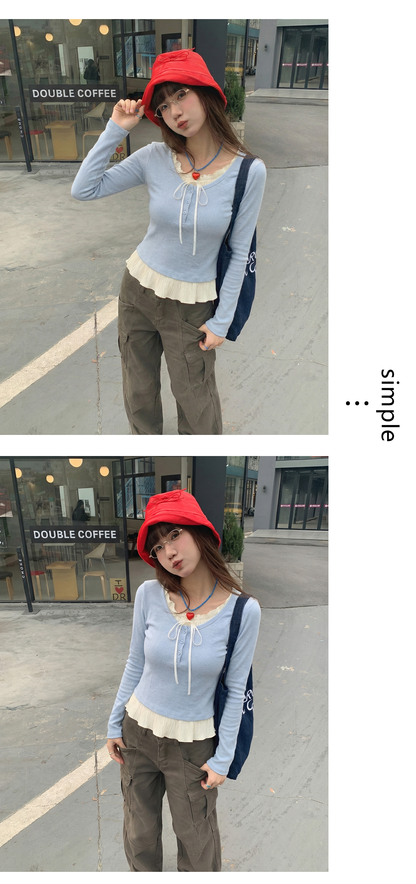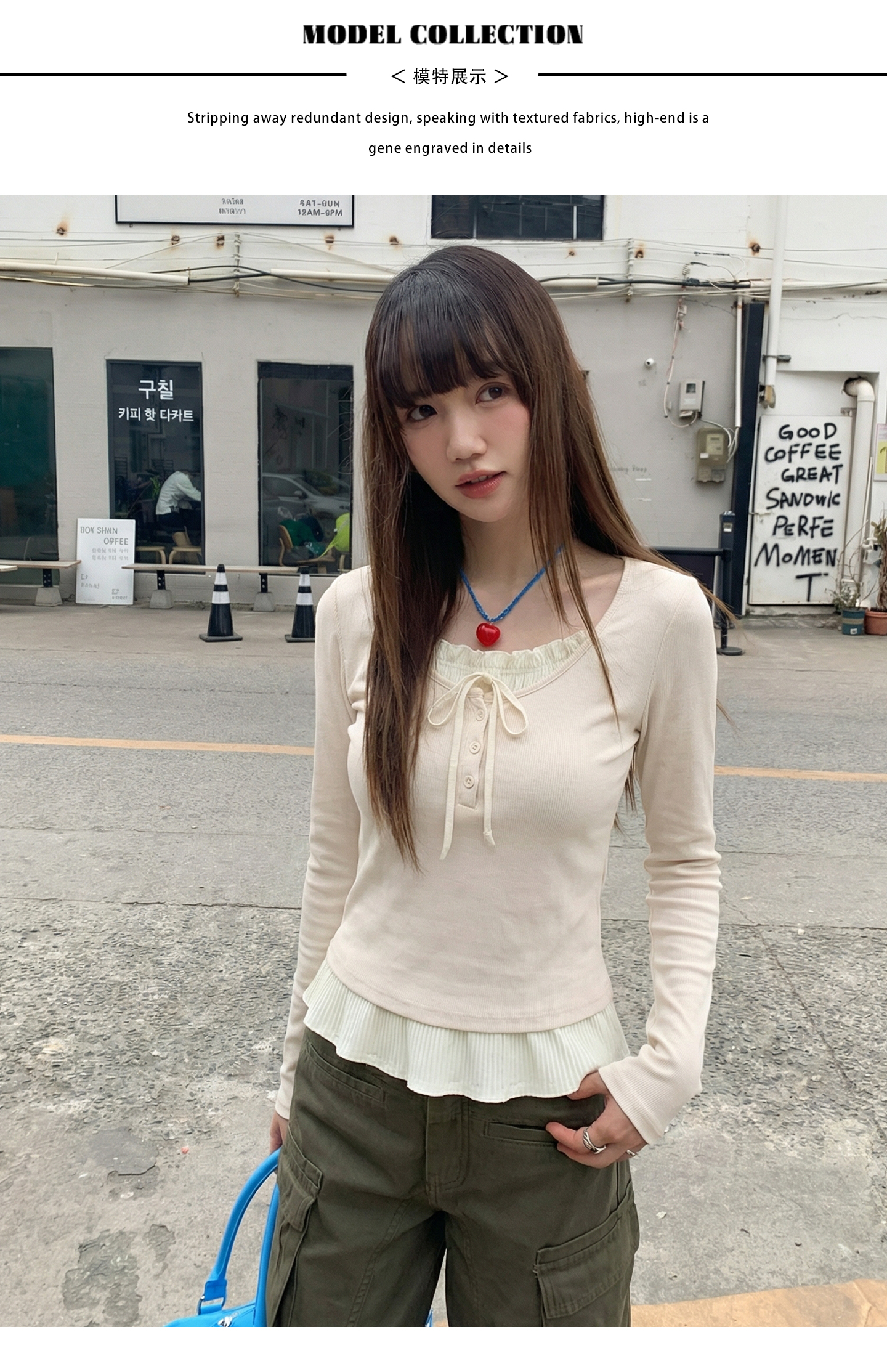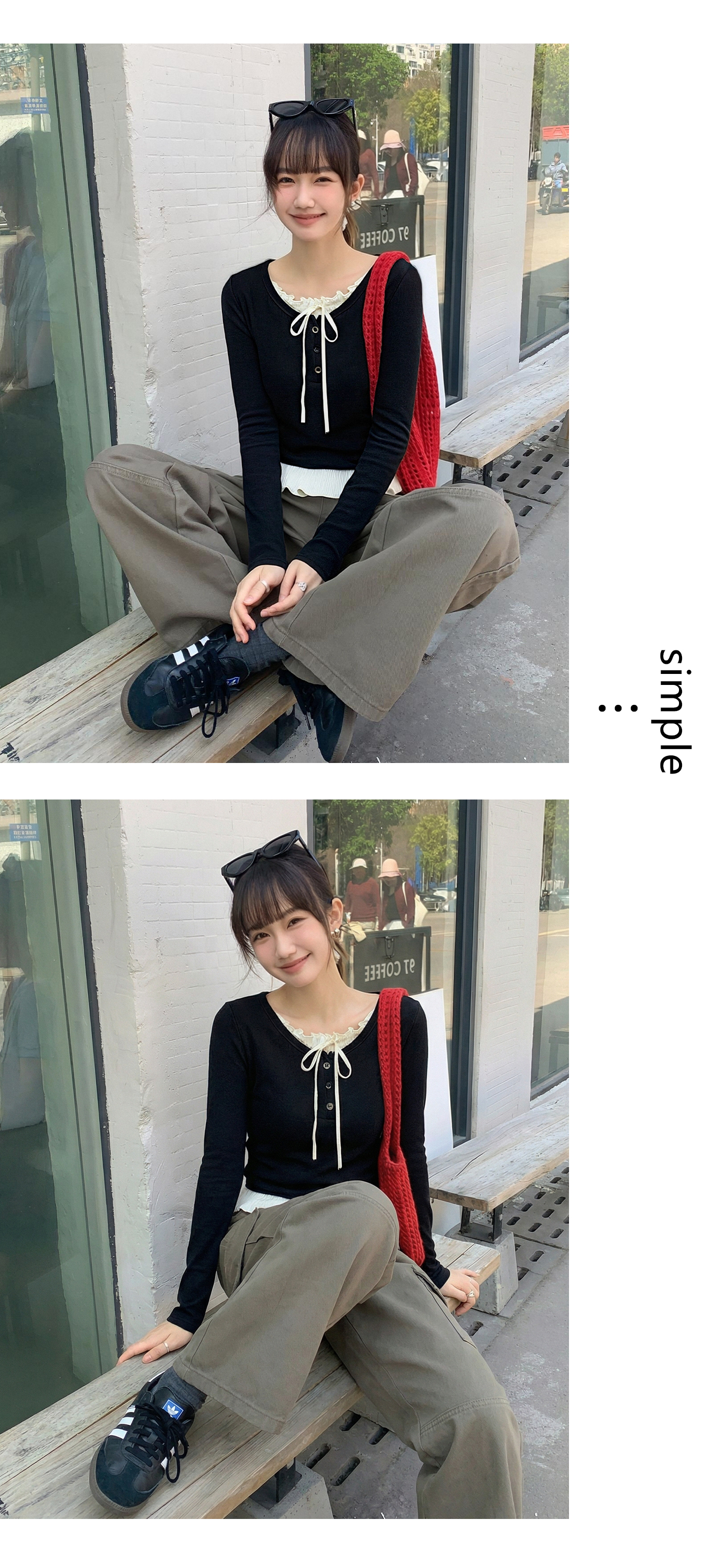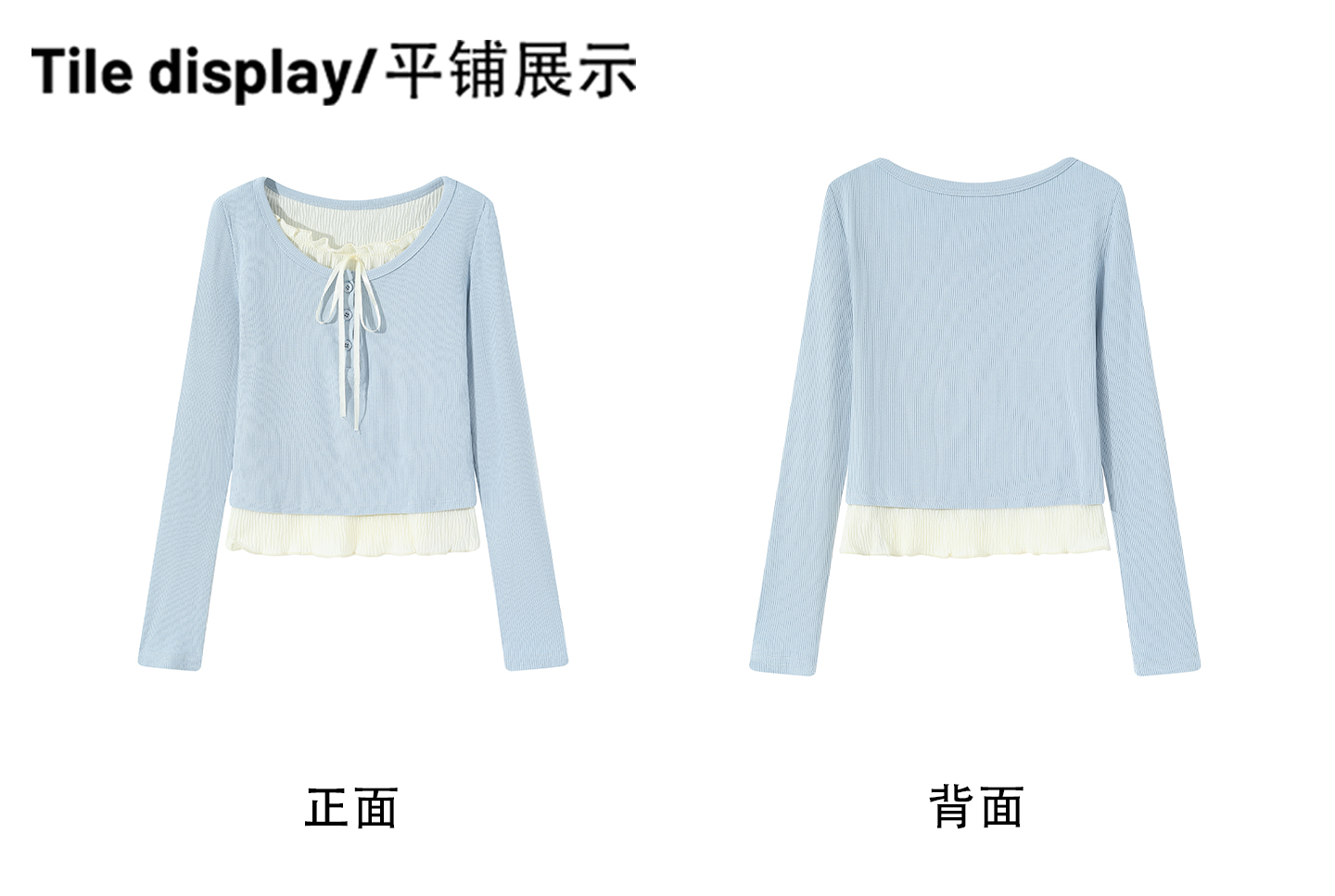 实拍实价假两件短款2026春季独特别致荷叶边设计感上衣长袖t恤女