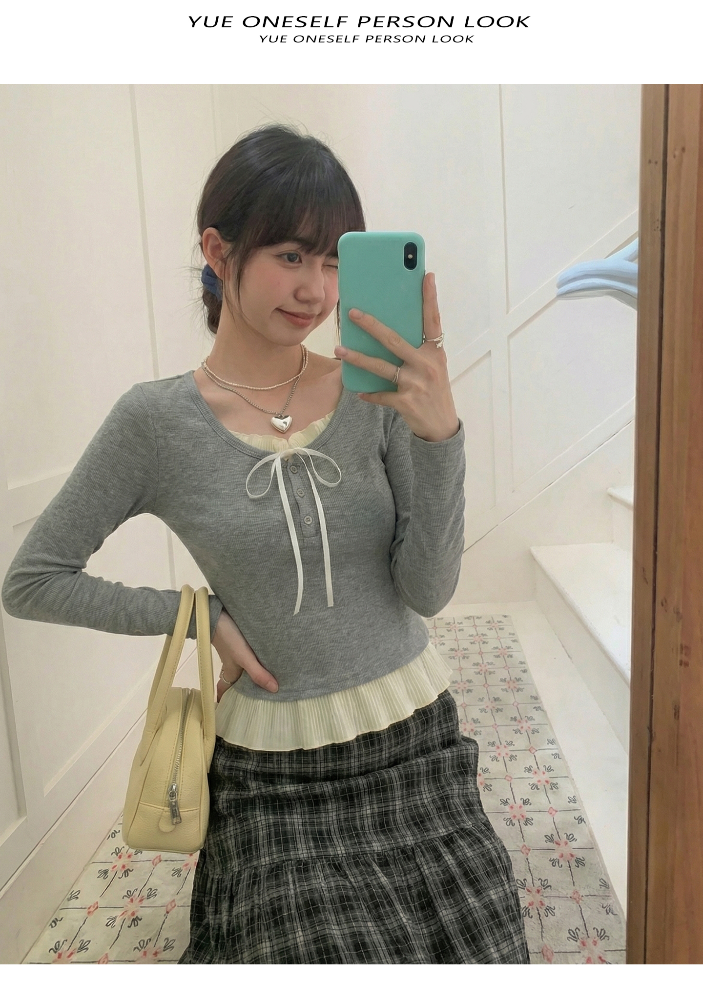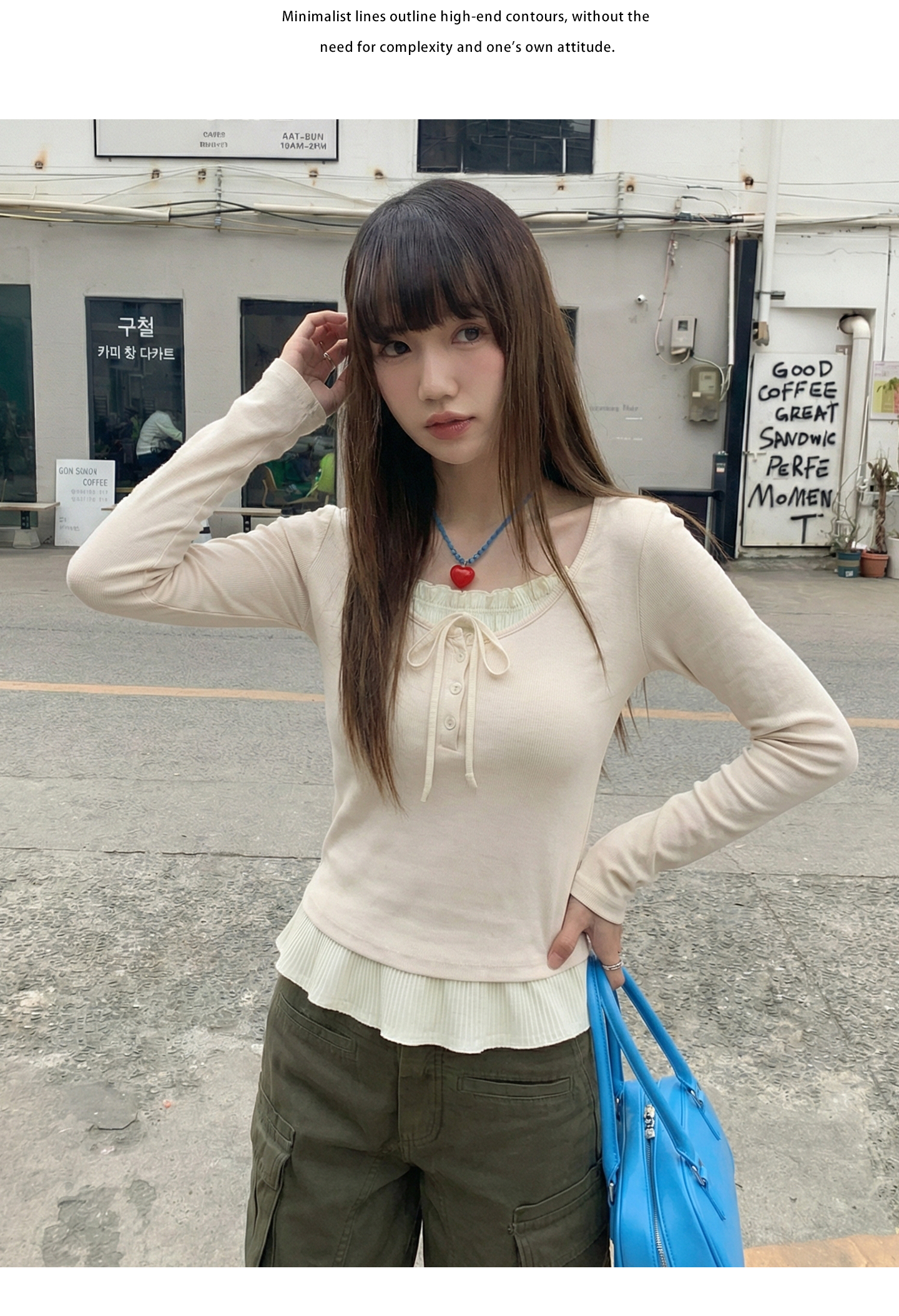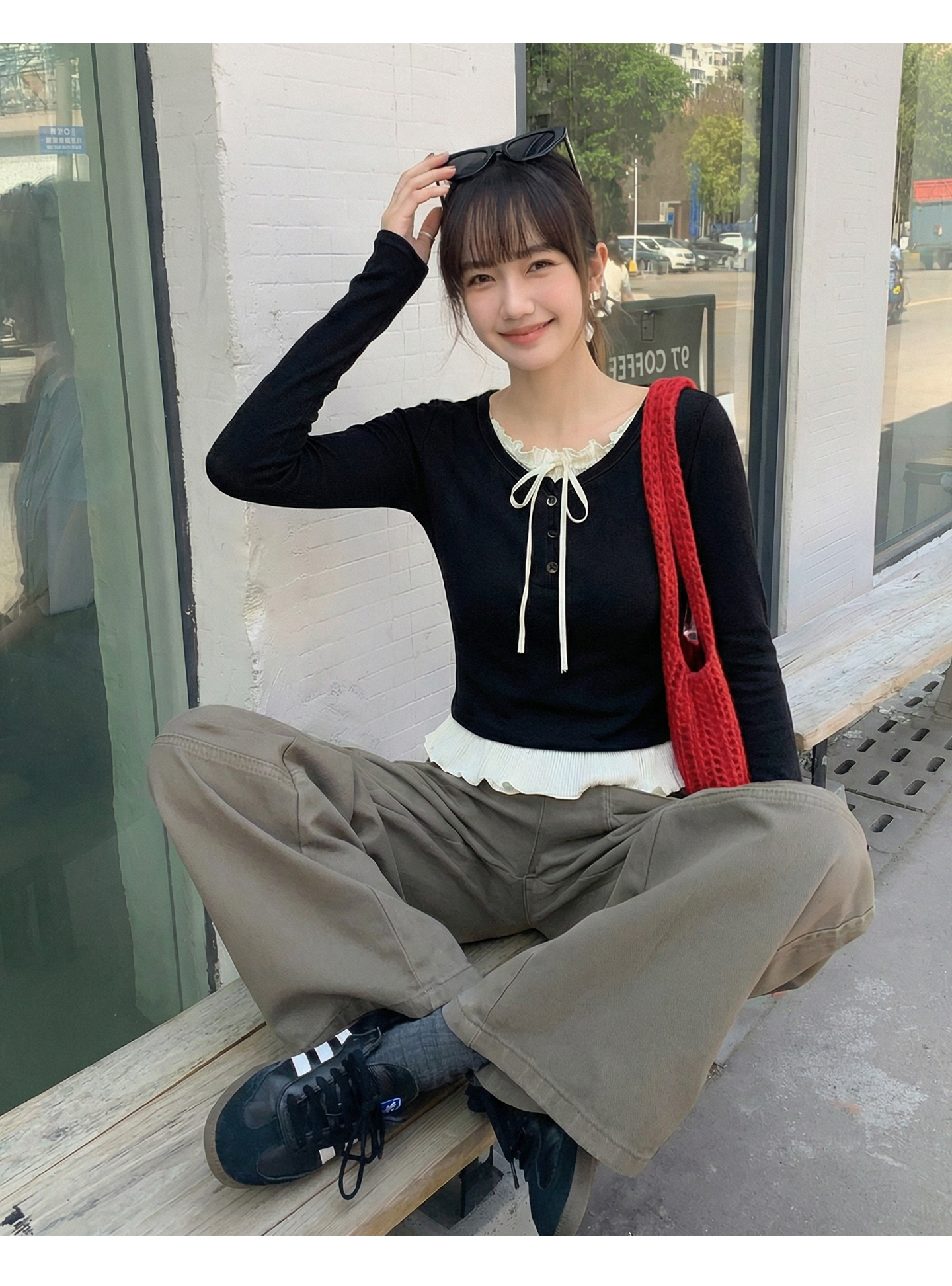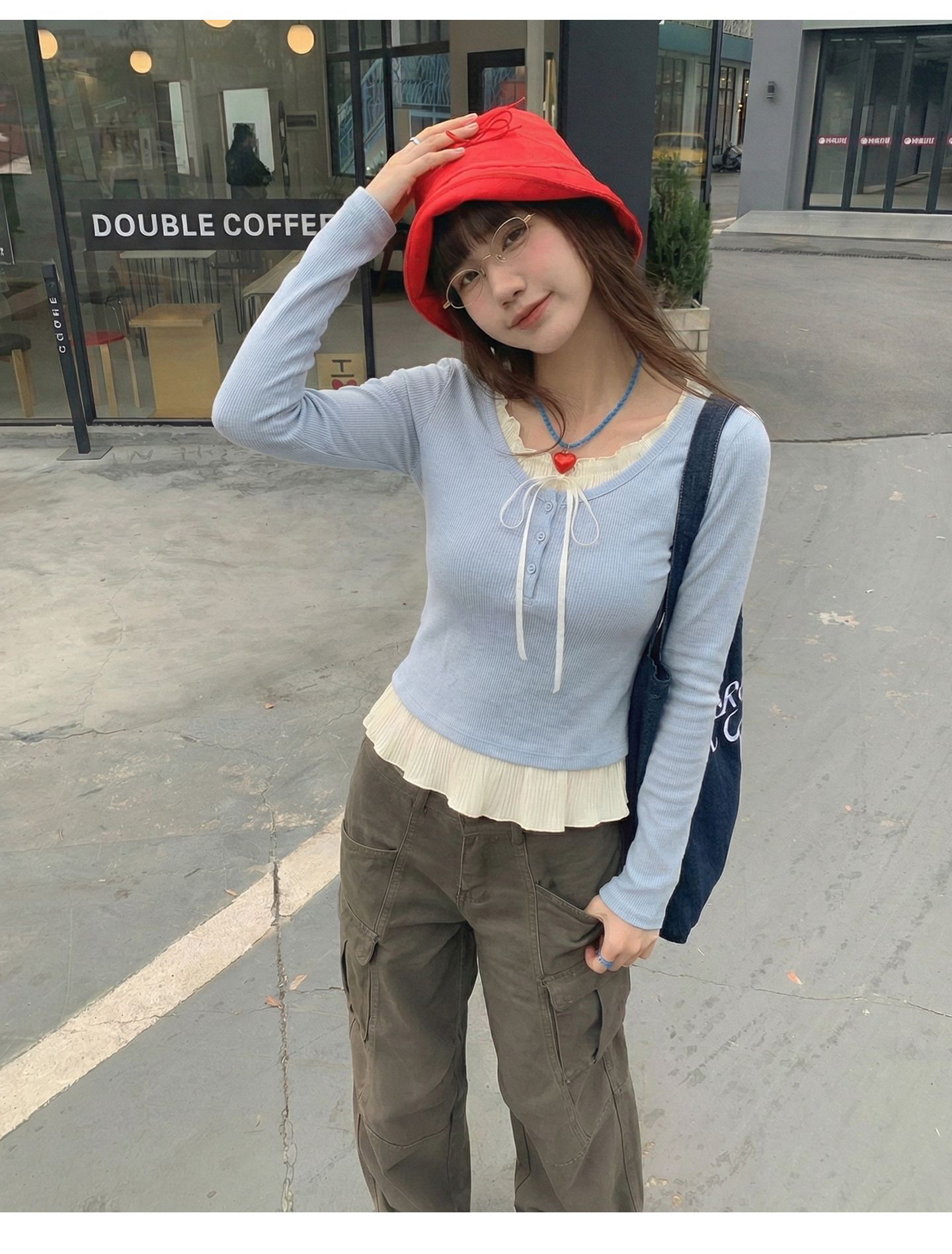 实拍实价假两件短款2026春季独特别致荷叶边设计感上衣长袖t恤女