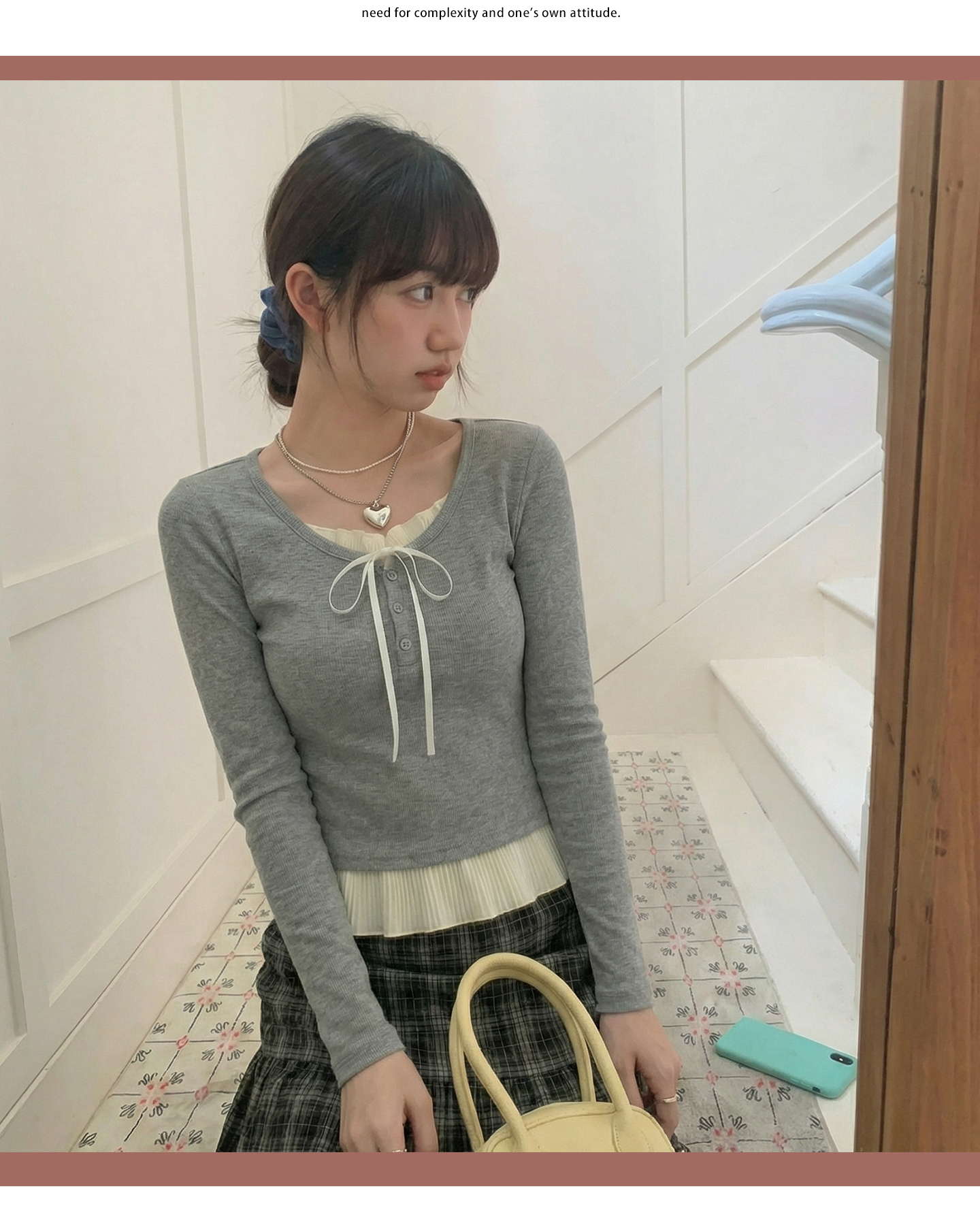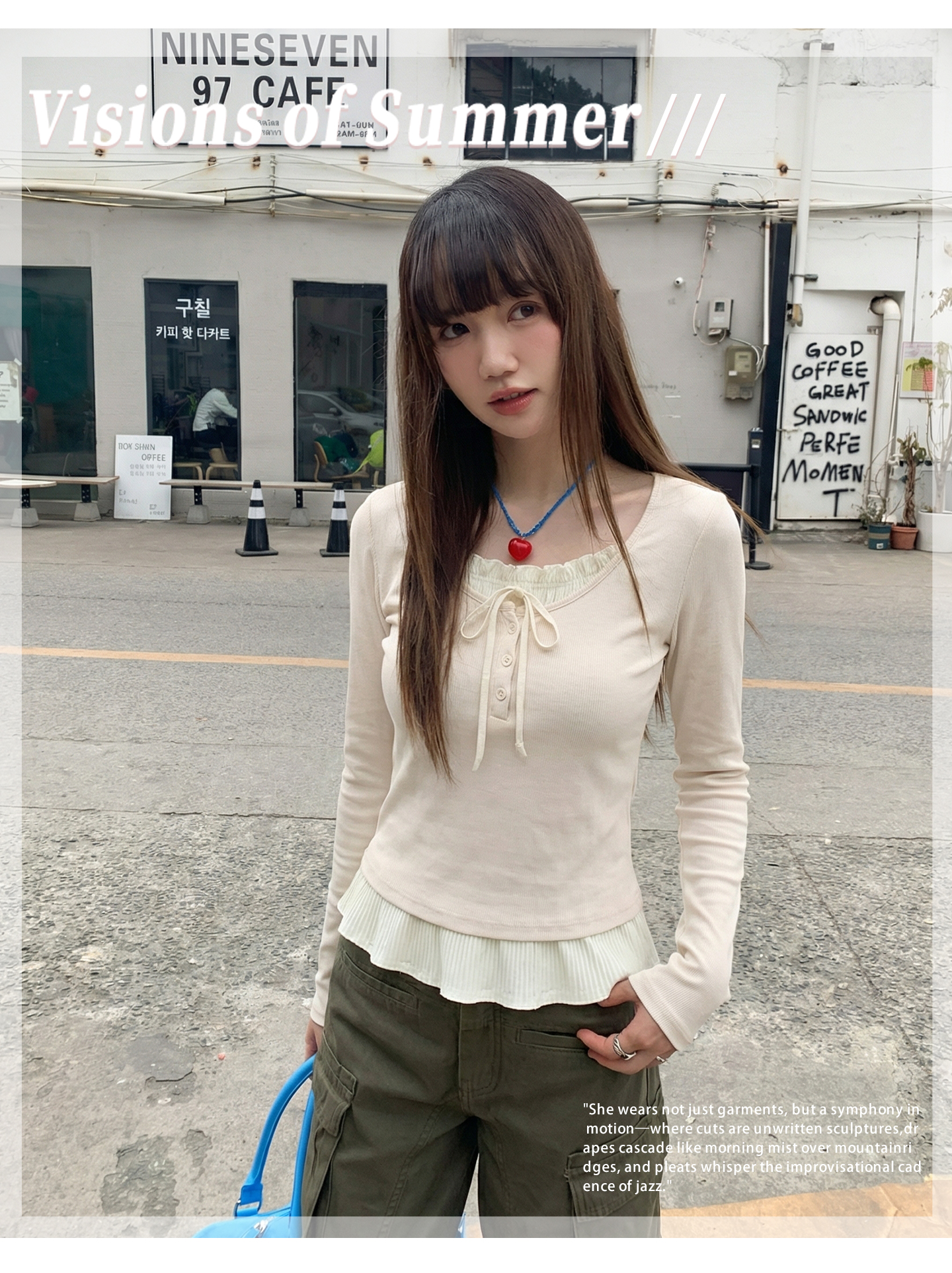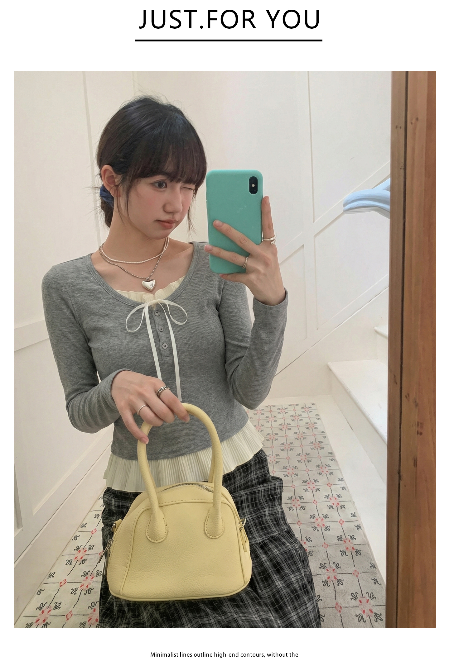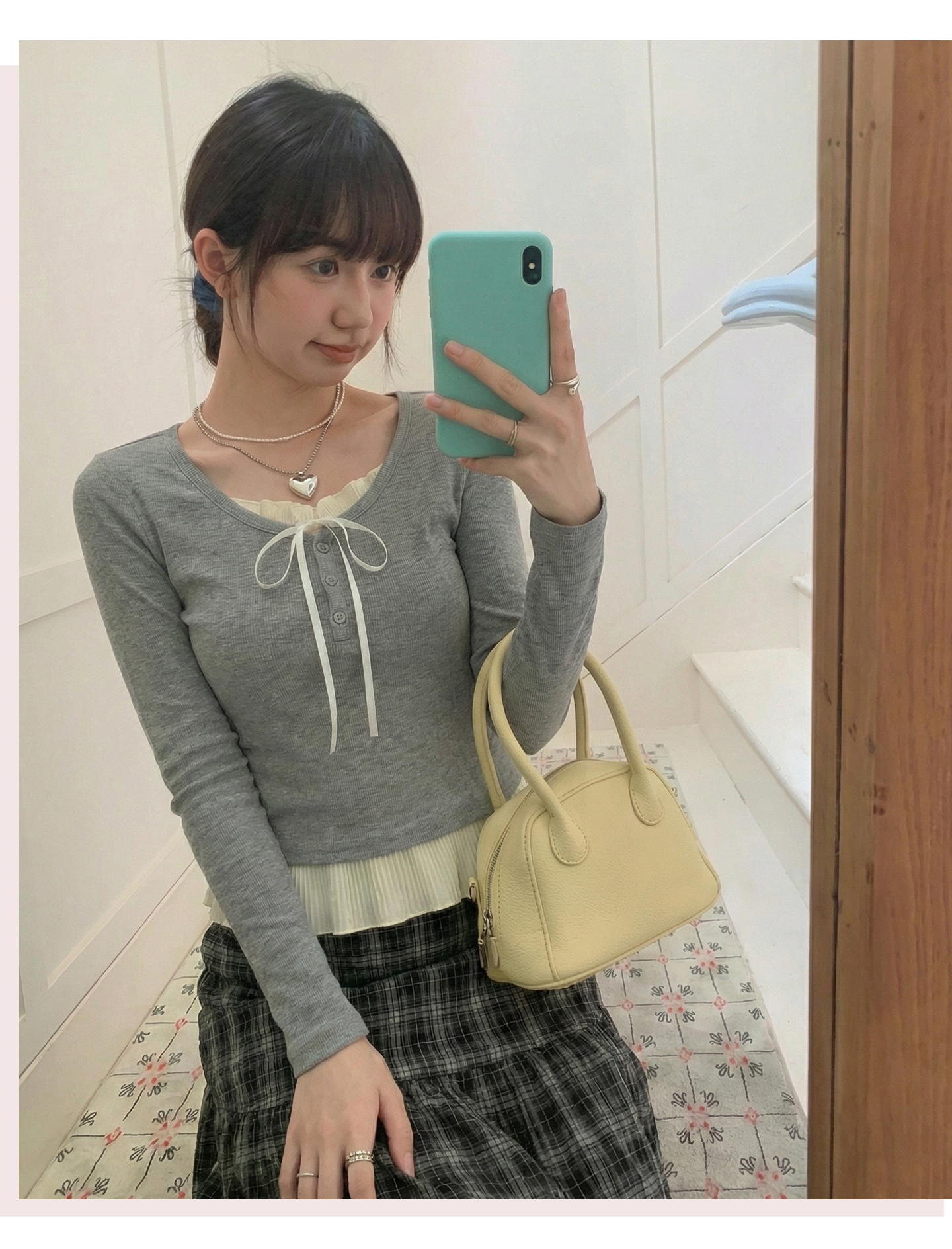实拍实价假两件短款2026春季独特别致荷叶边设计感上衣长袖t恤女