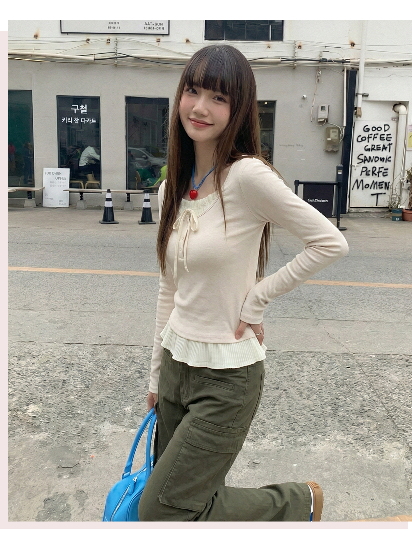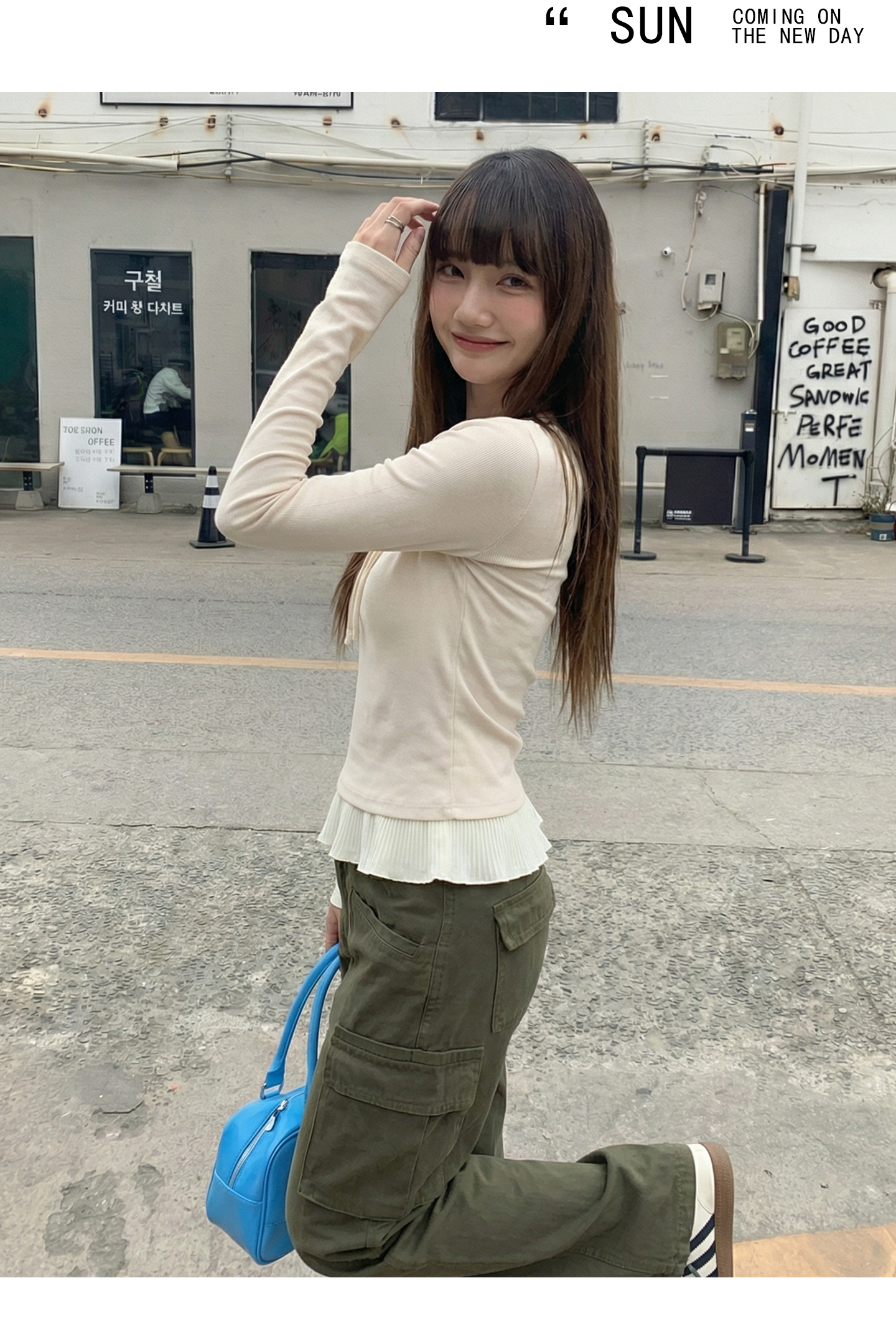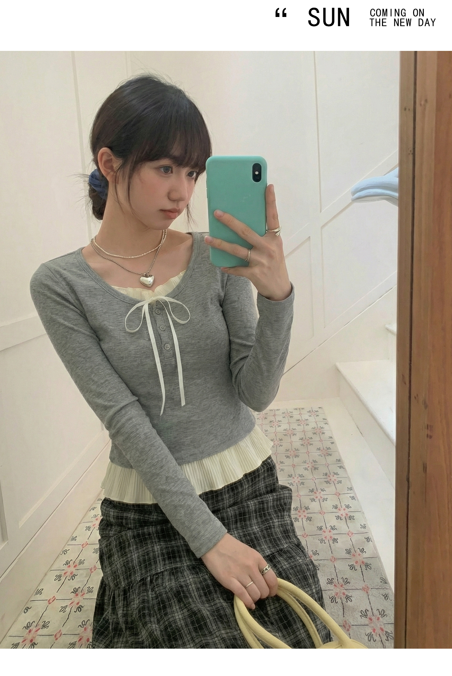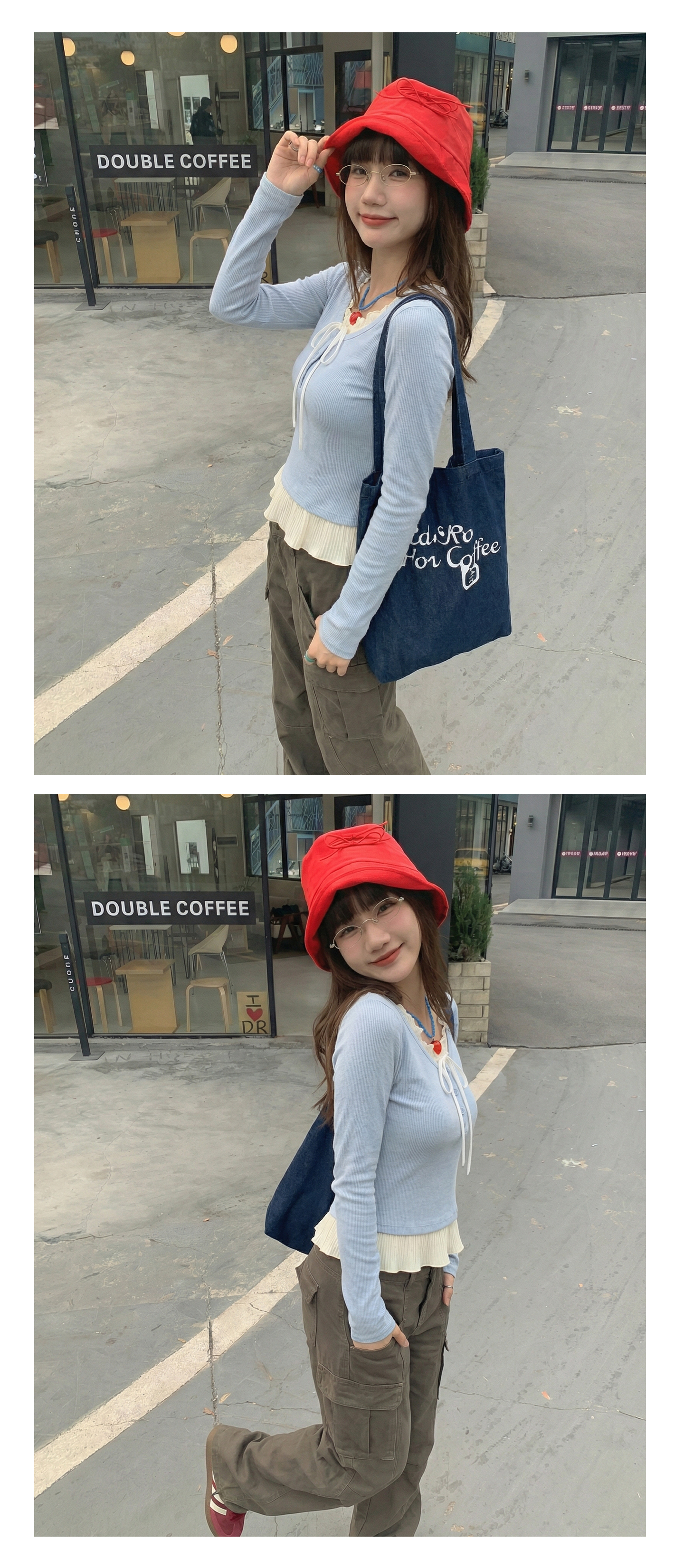 实拍实价假两件短款2026春季独特别致荷叶边设计感上衣长袖t恤女