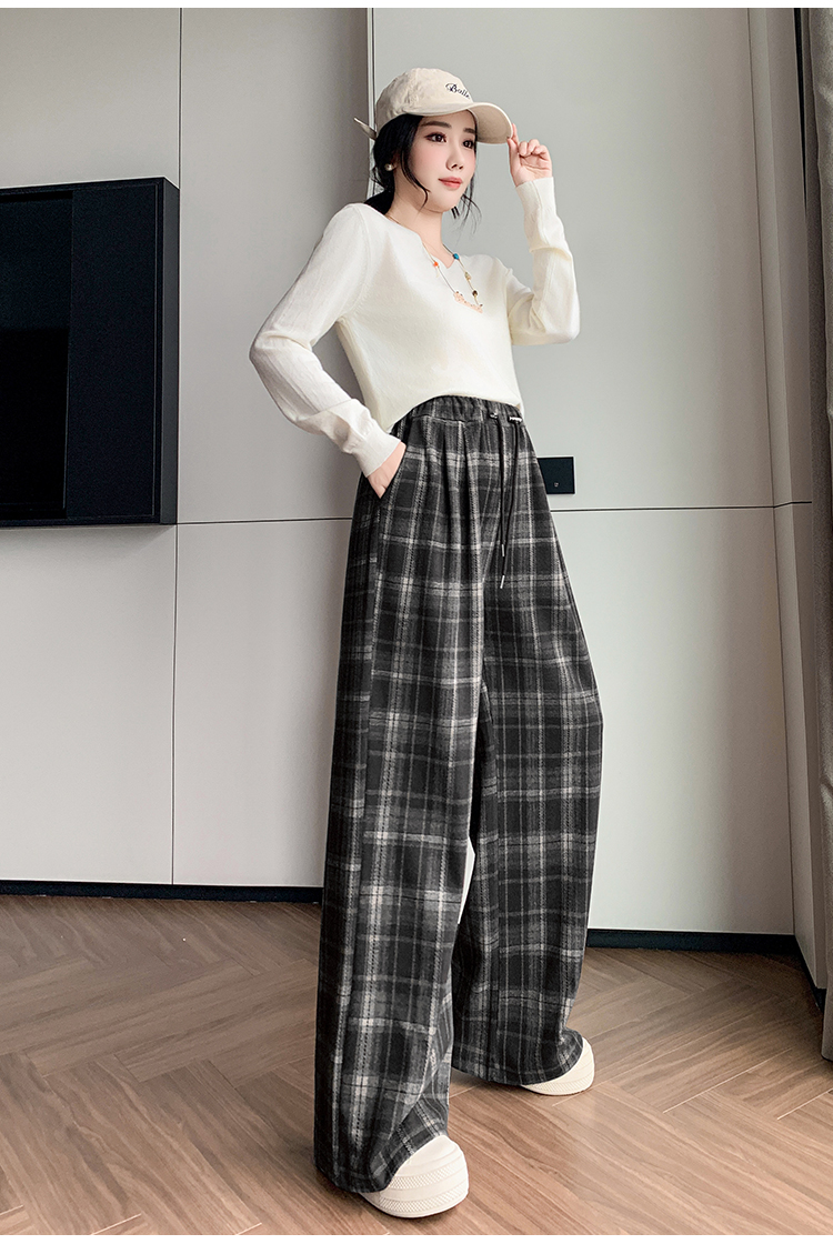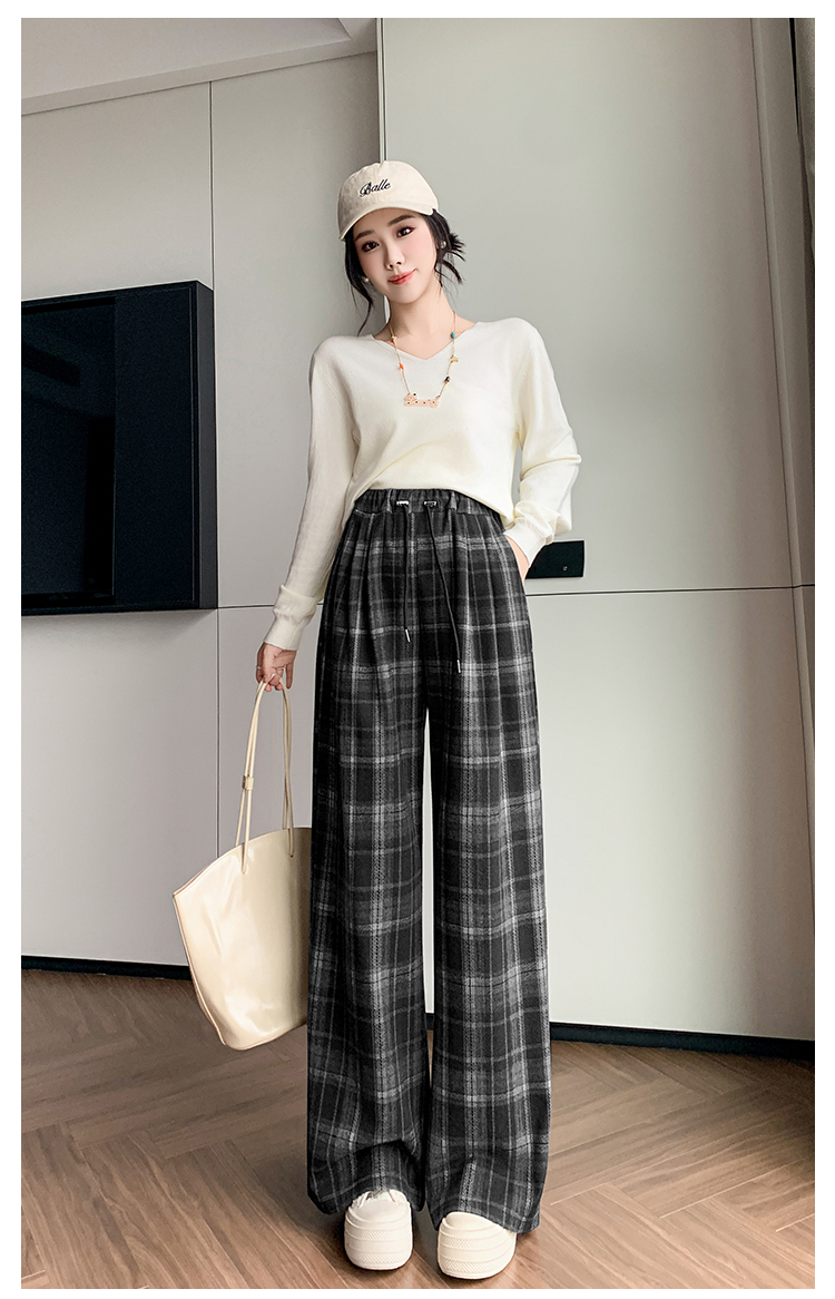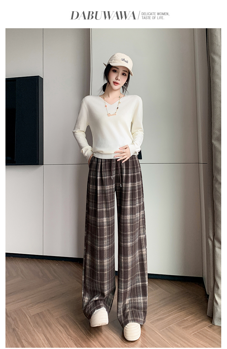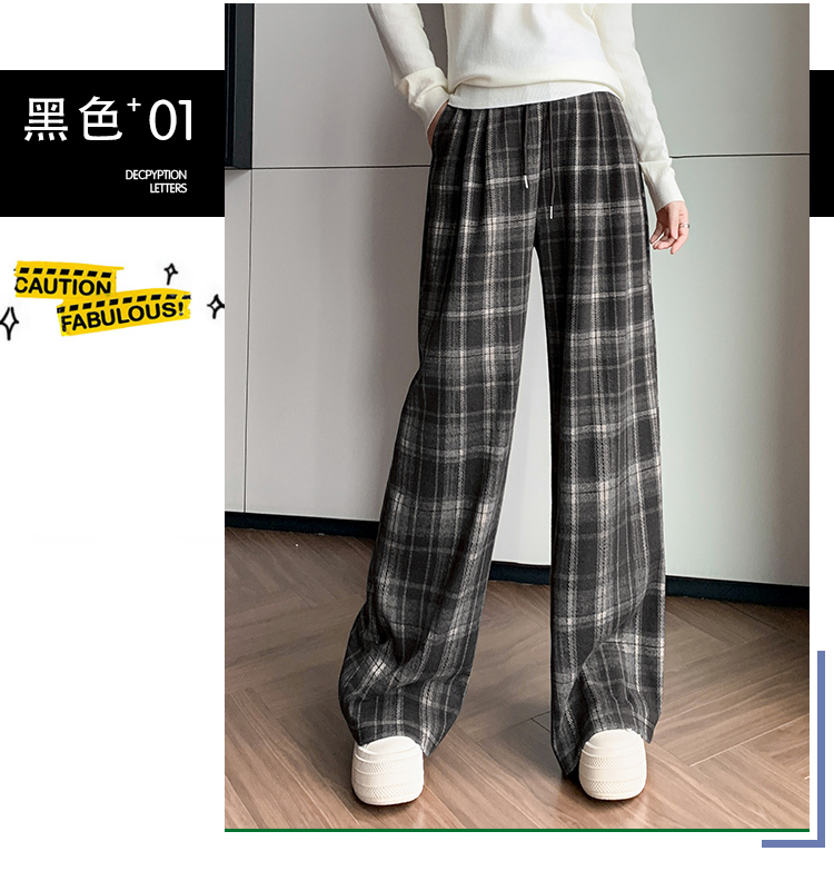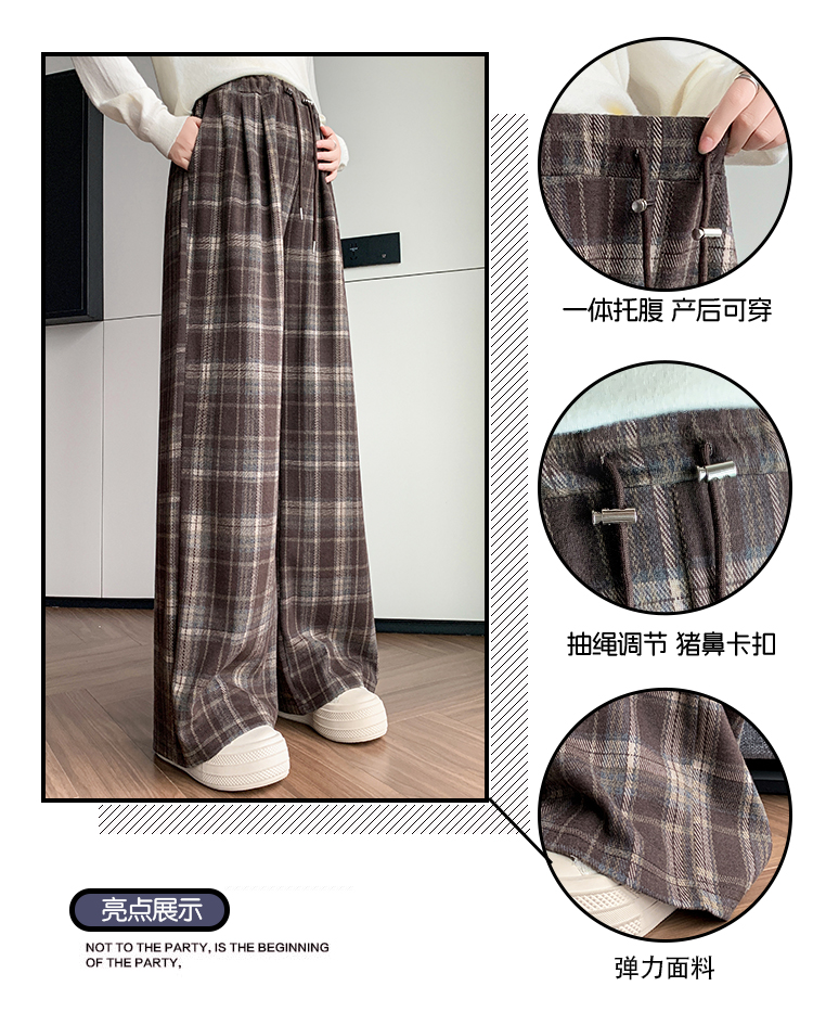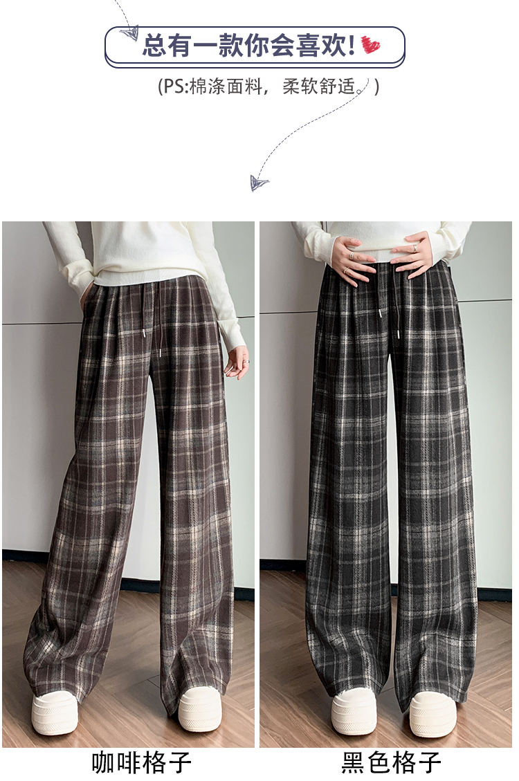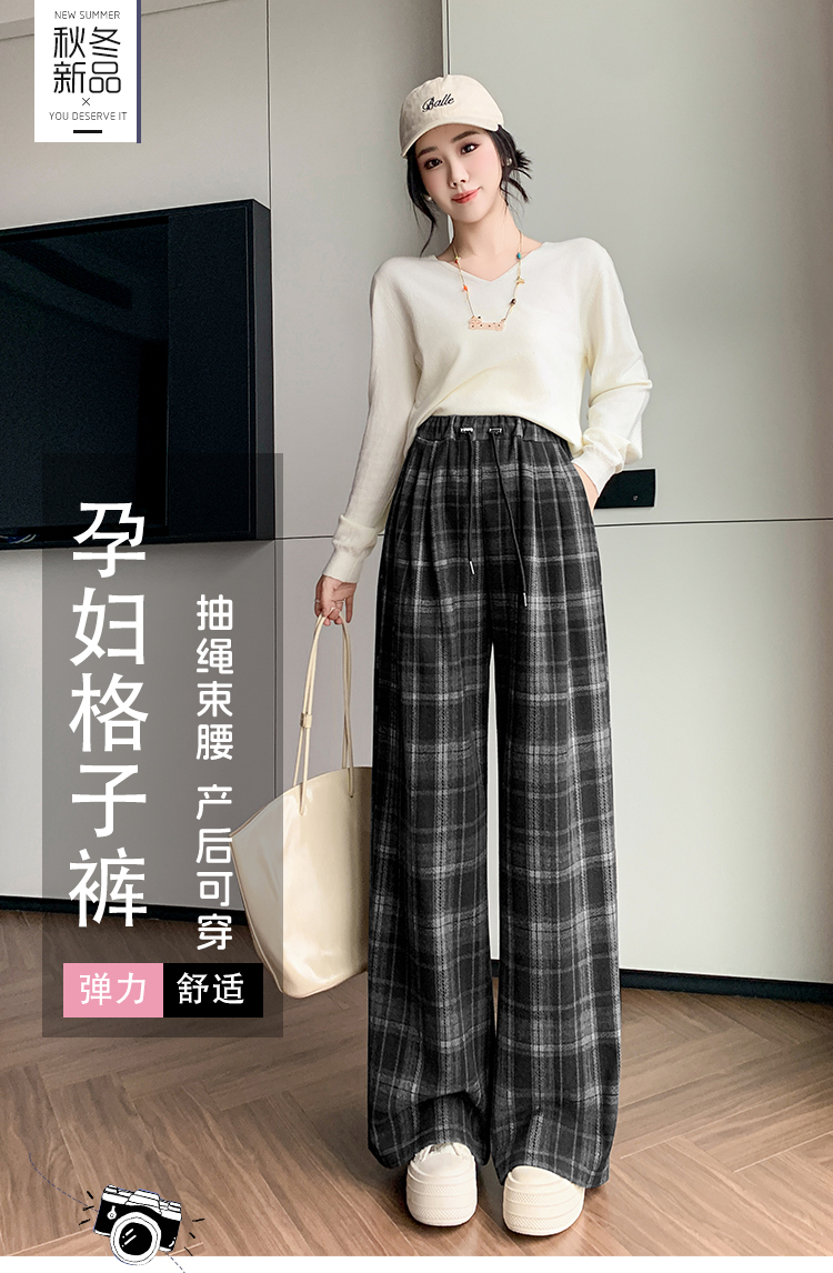 孕妇裤秋季外穿黑白格子长裤秋冬宽松直筒复古休闲春秋新款阔腿裤