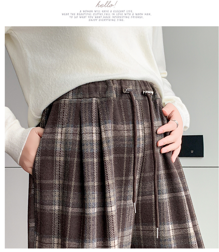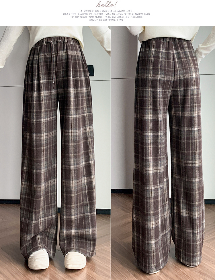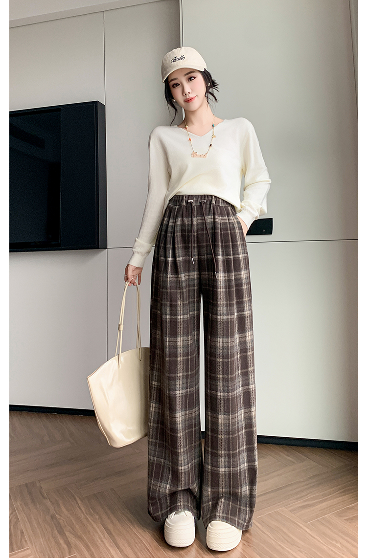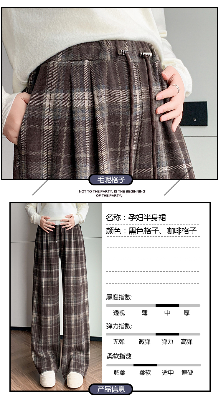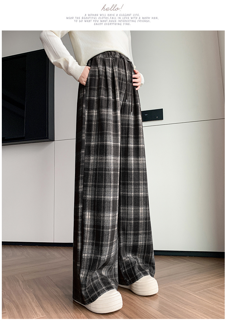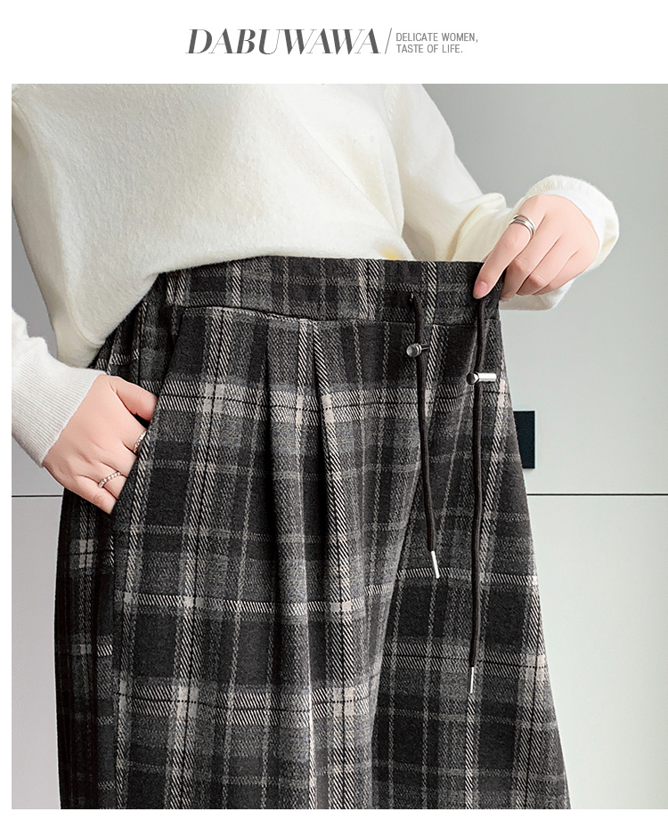 孕妇裤秋季外穿黑白格子长裤秋冬宽松直筒复古休闲春秋新款阔腿裤