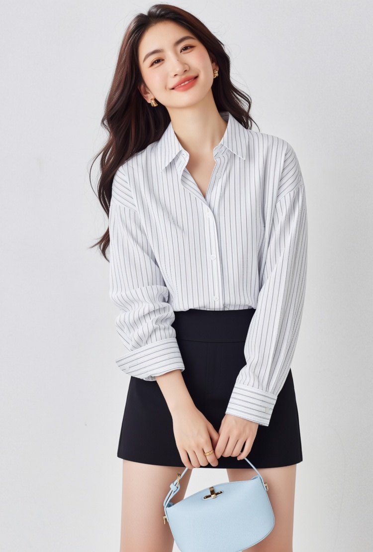 盐系条纹衬衫 慵懒风宽松休闲衬衣女2026春秋长袖通勤外套