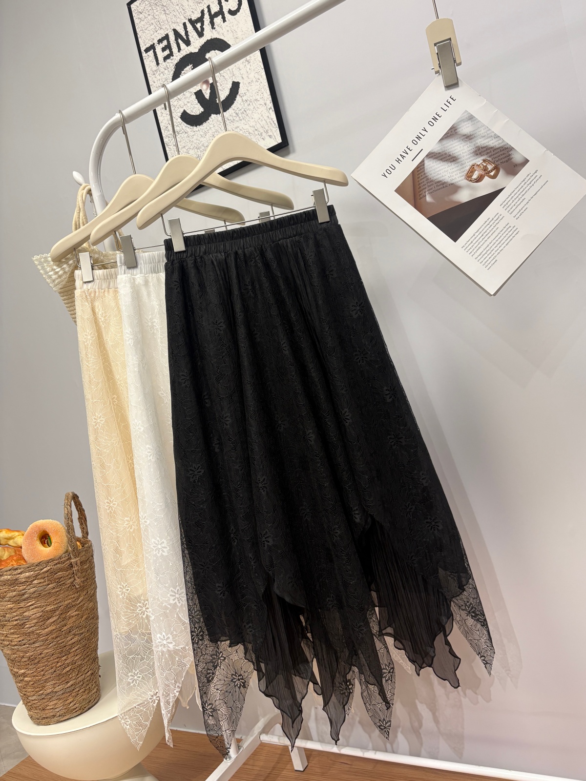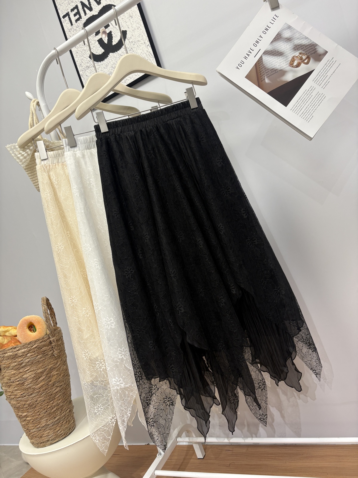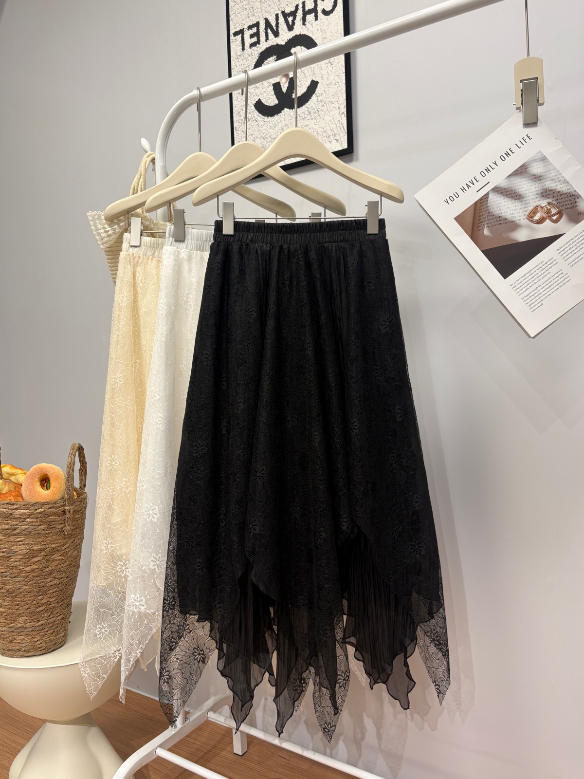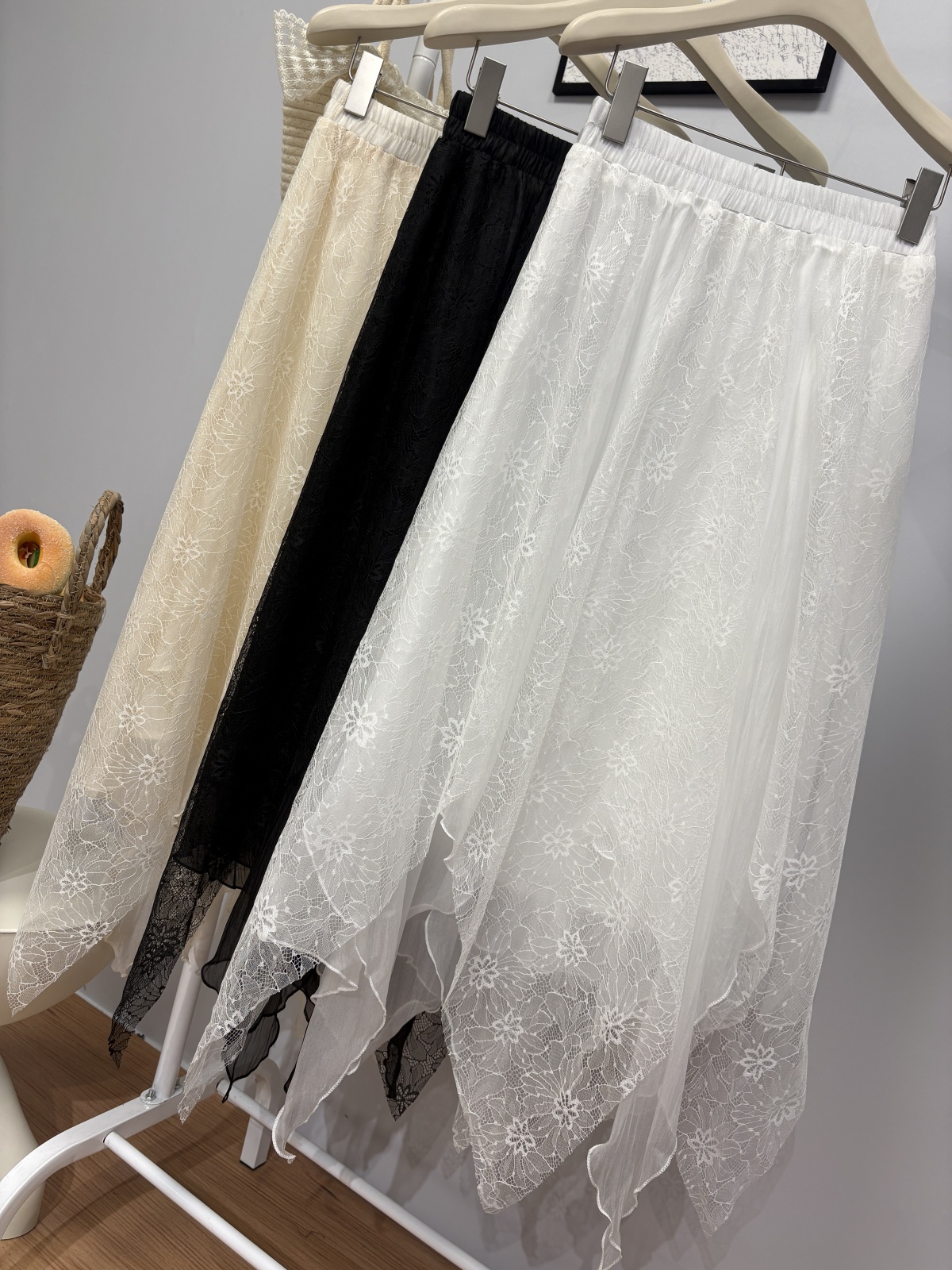 实拍 春夏新款2026韩系chic蕾丝拼接不规则大摆半身裙绝美仙女裙