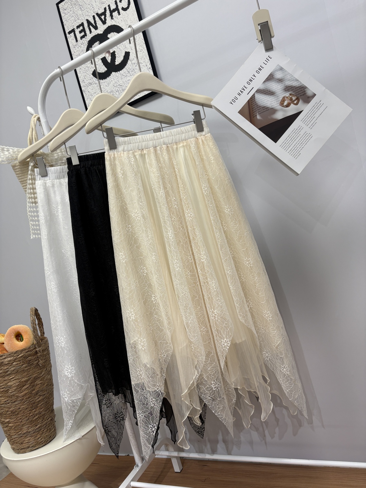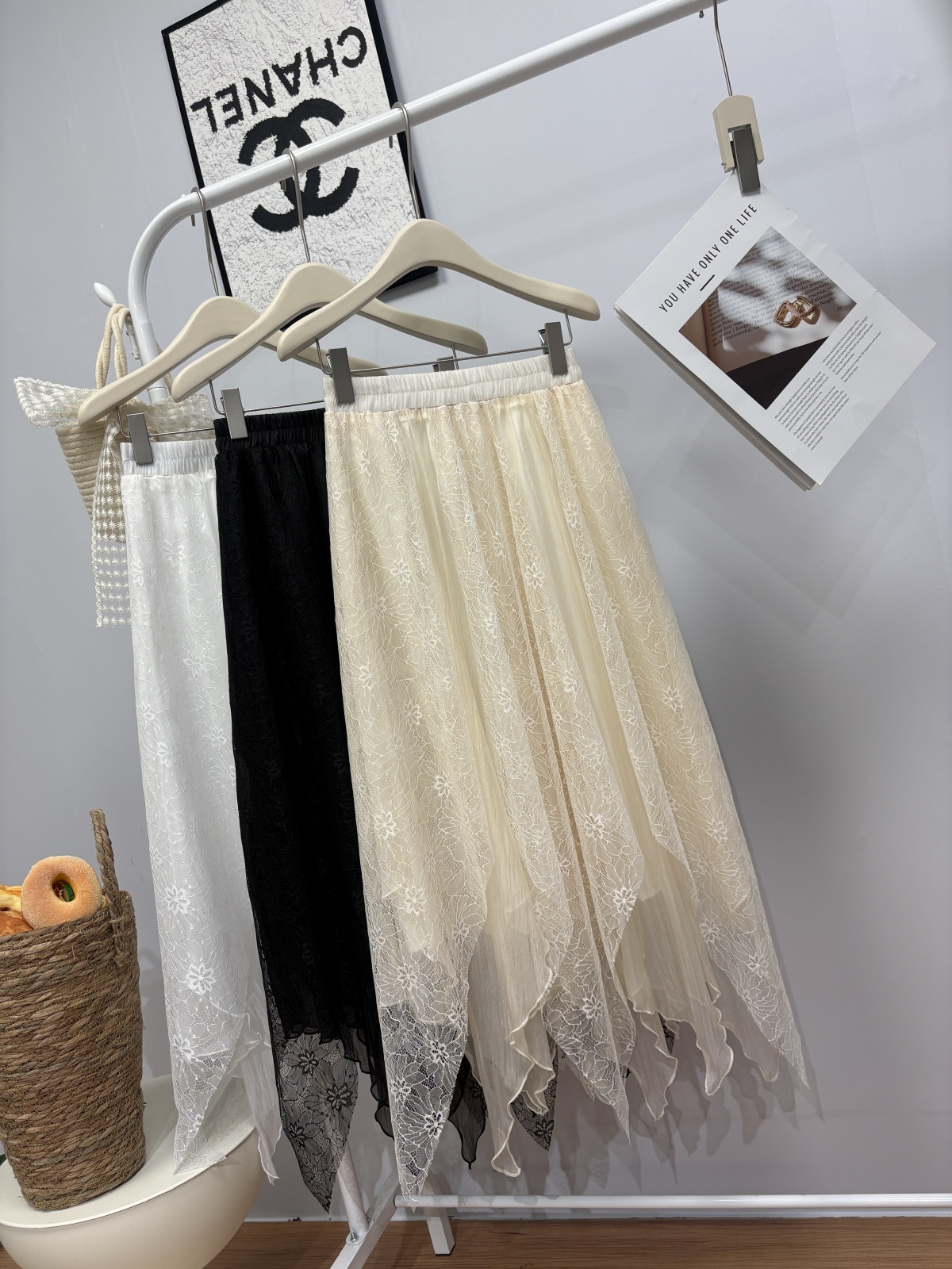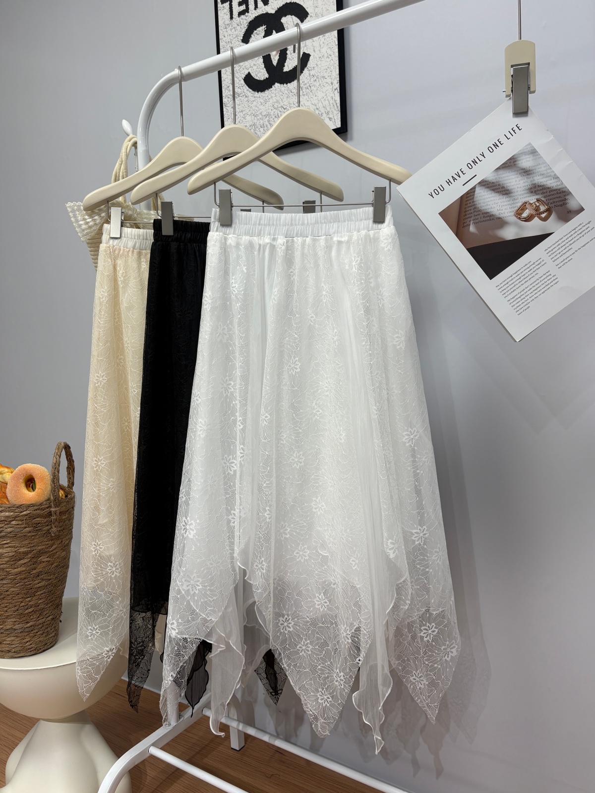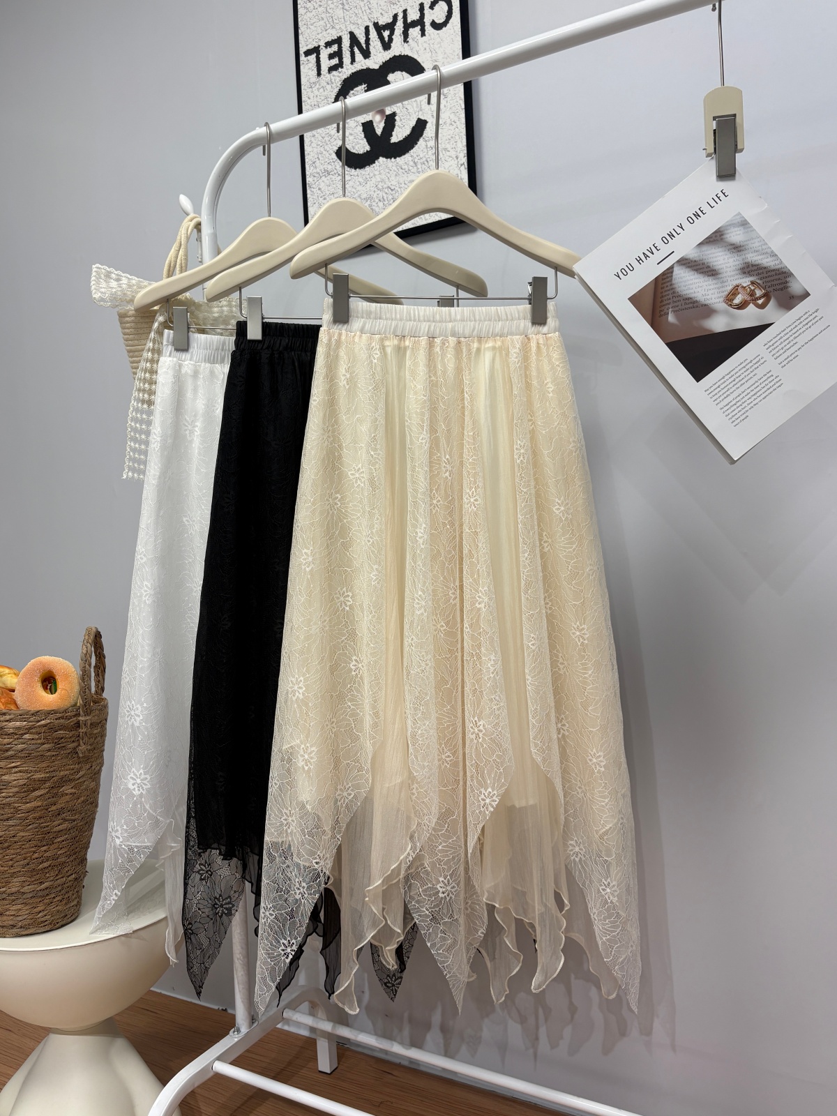实拍 春夏新款2026韩系chic蕾丝拼接不规则大摆半身裙绝美仙女裙