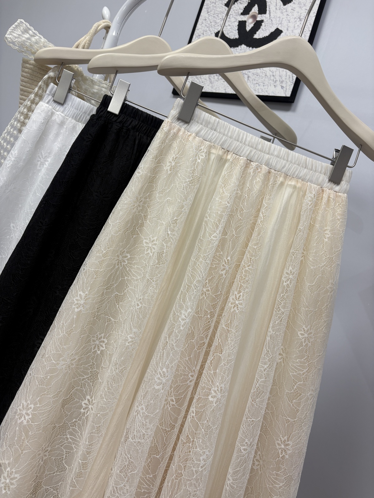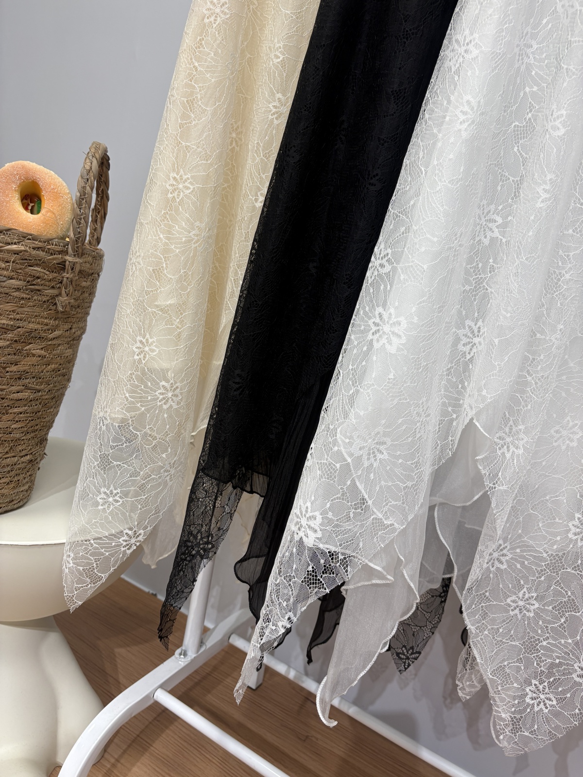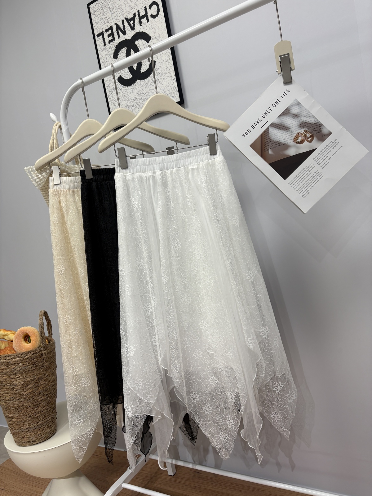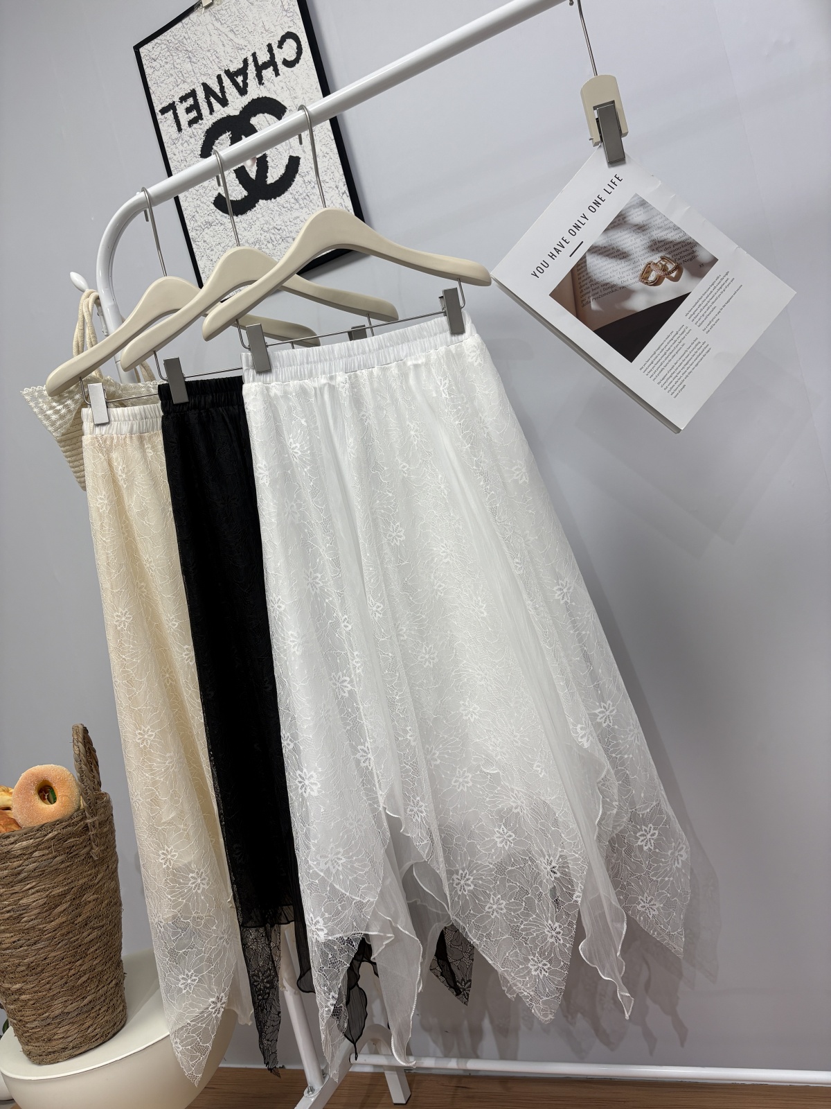 实拍 春夏新款2026韩系chic蕾丝拼接不规则大摆半身裙绝美仙女裙