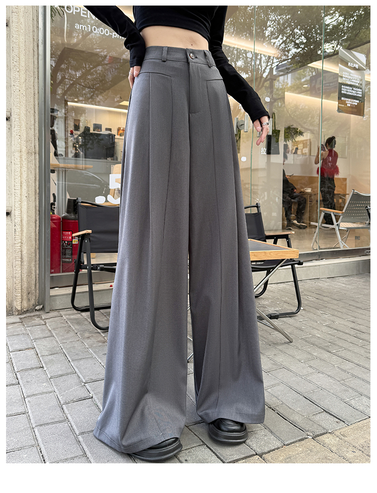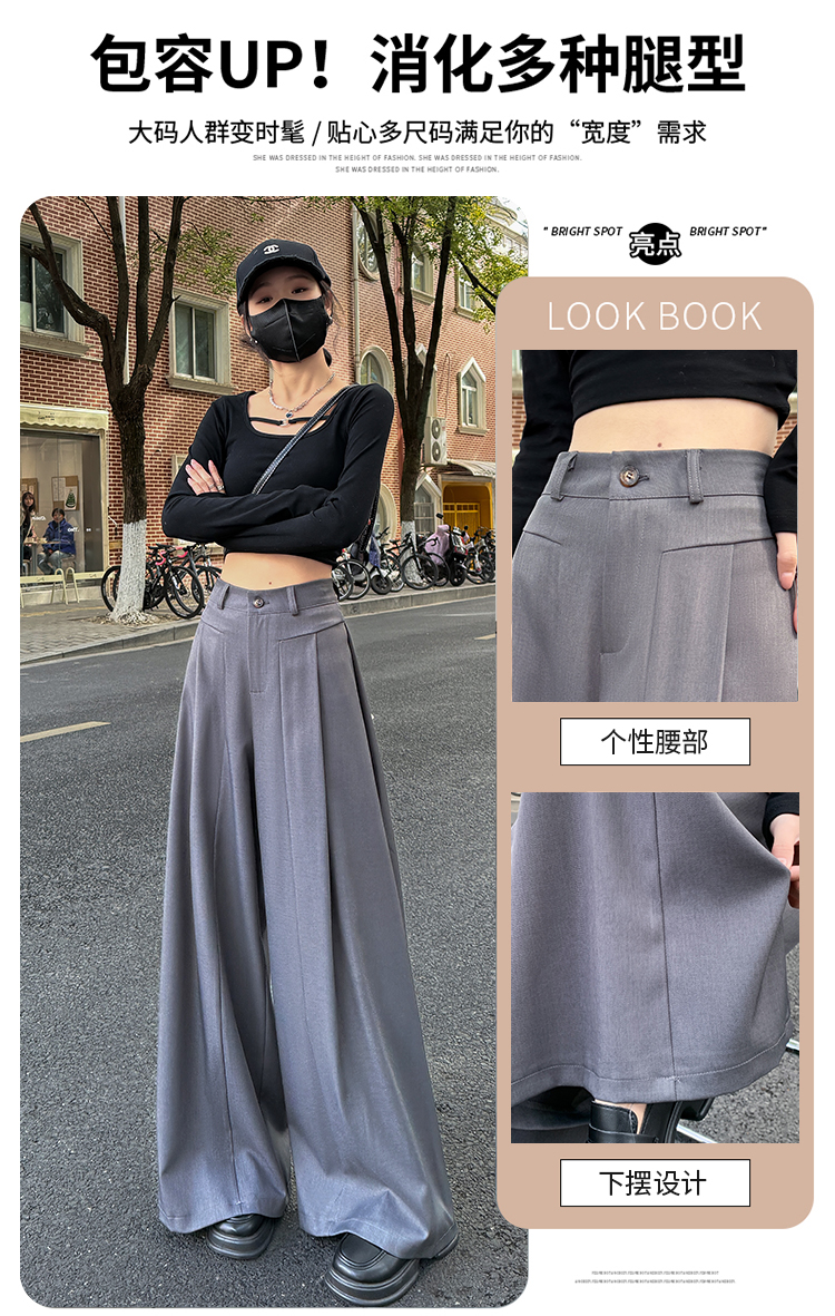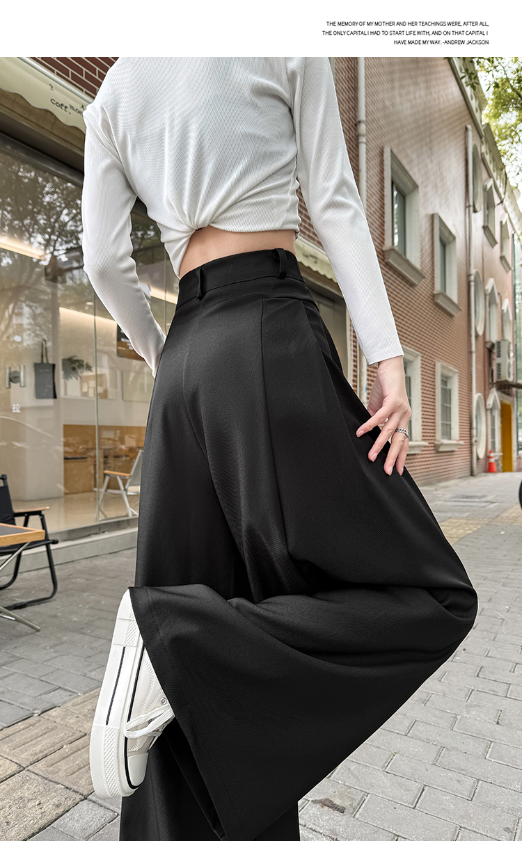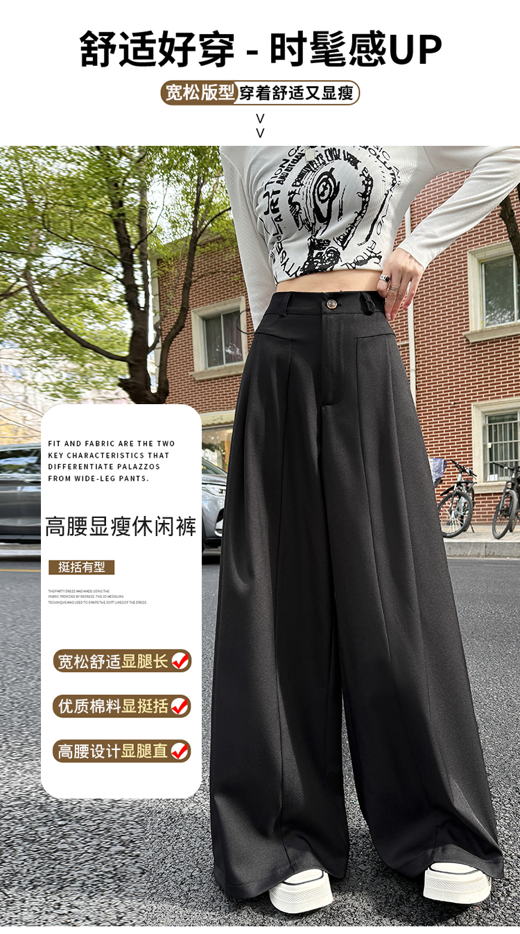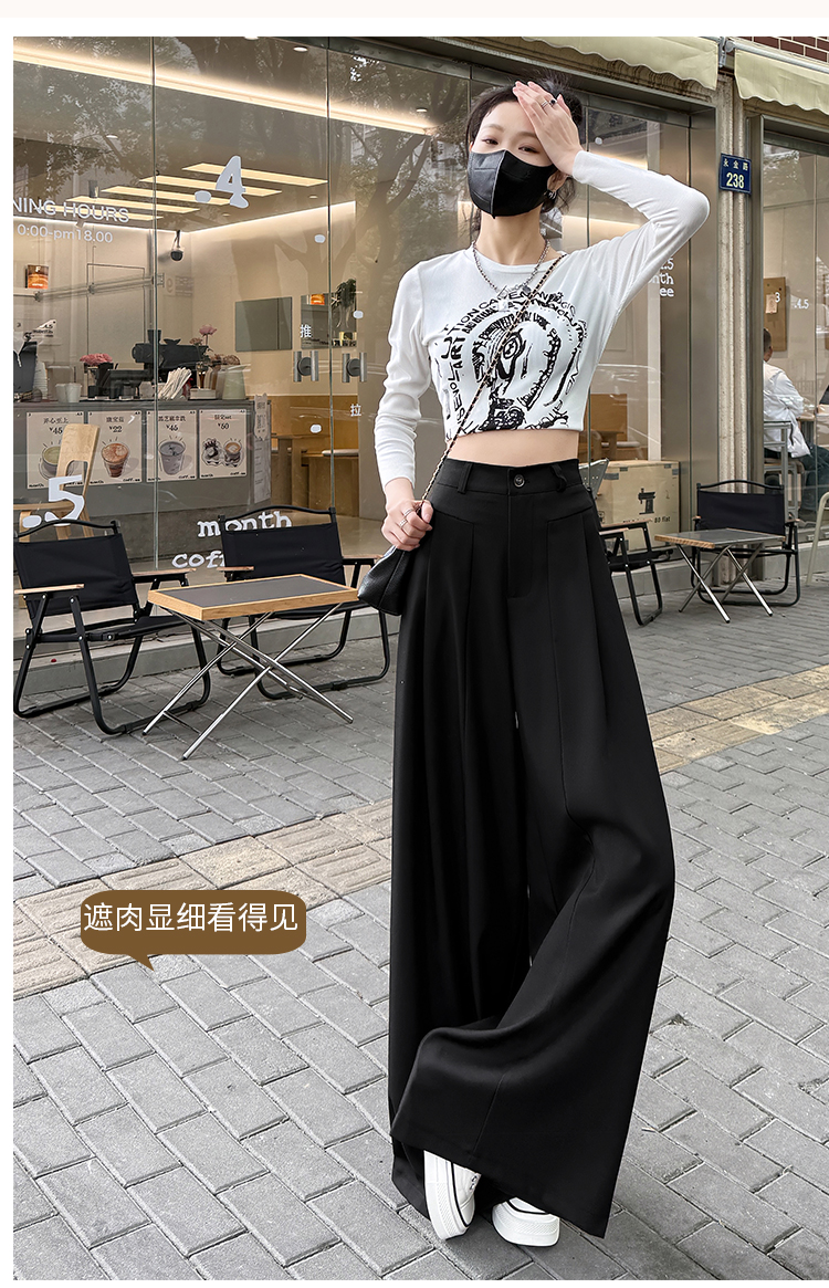实拍原创黑色西装裤女2026年早春新款高腰垂感拖地裤阔腿裤女