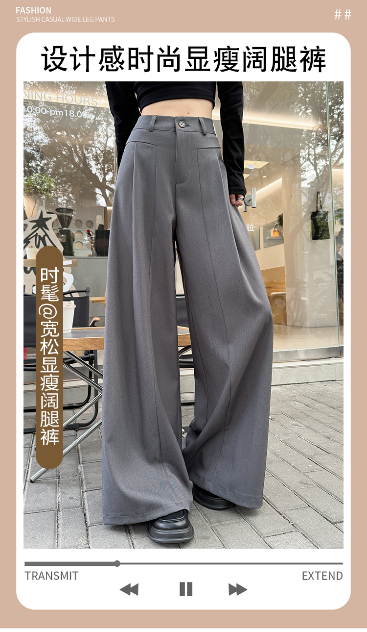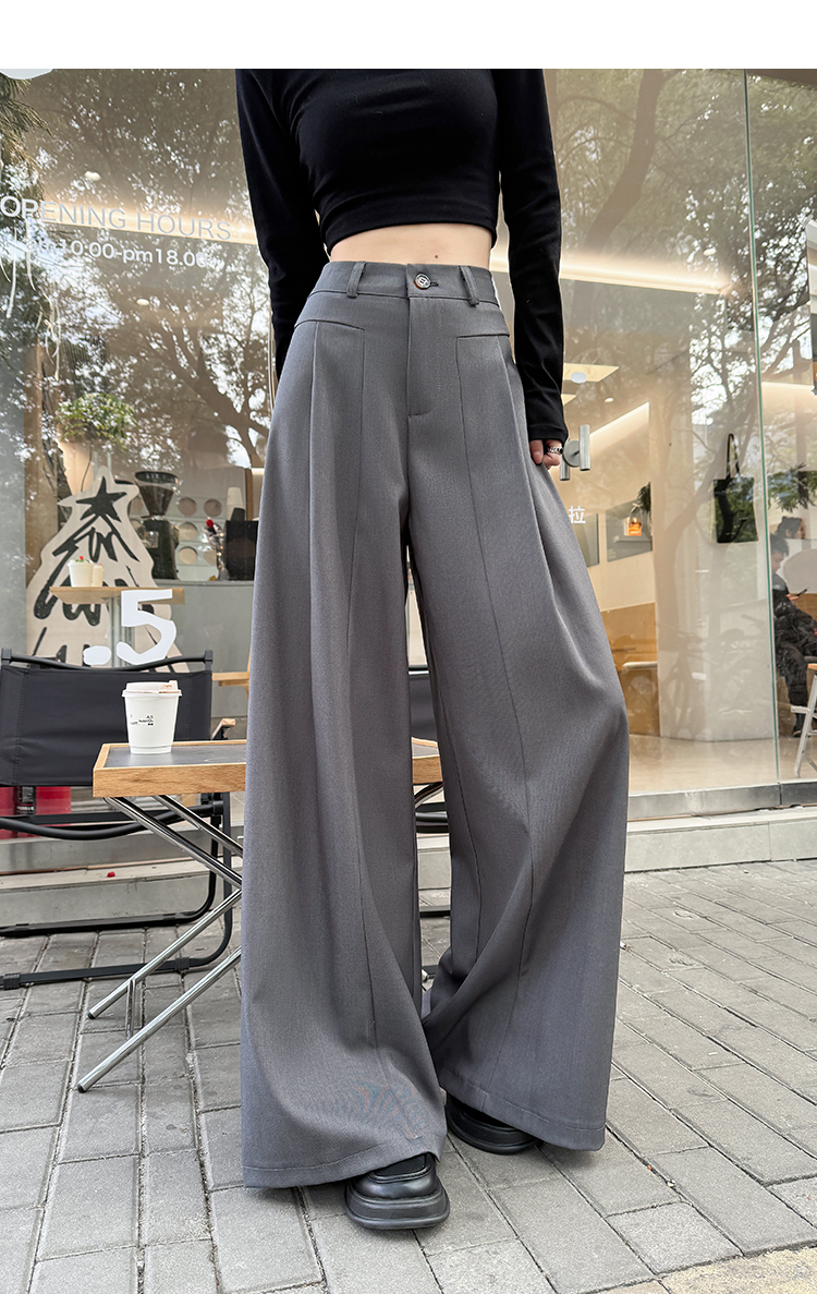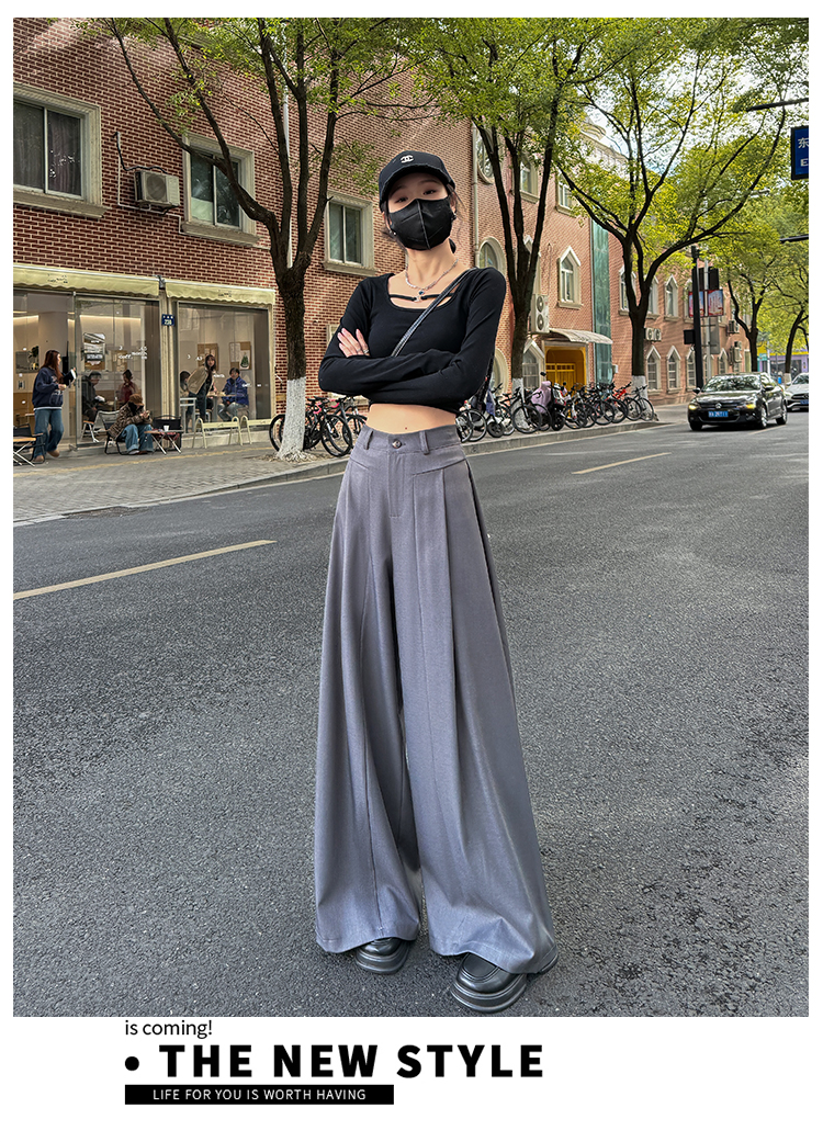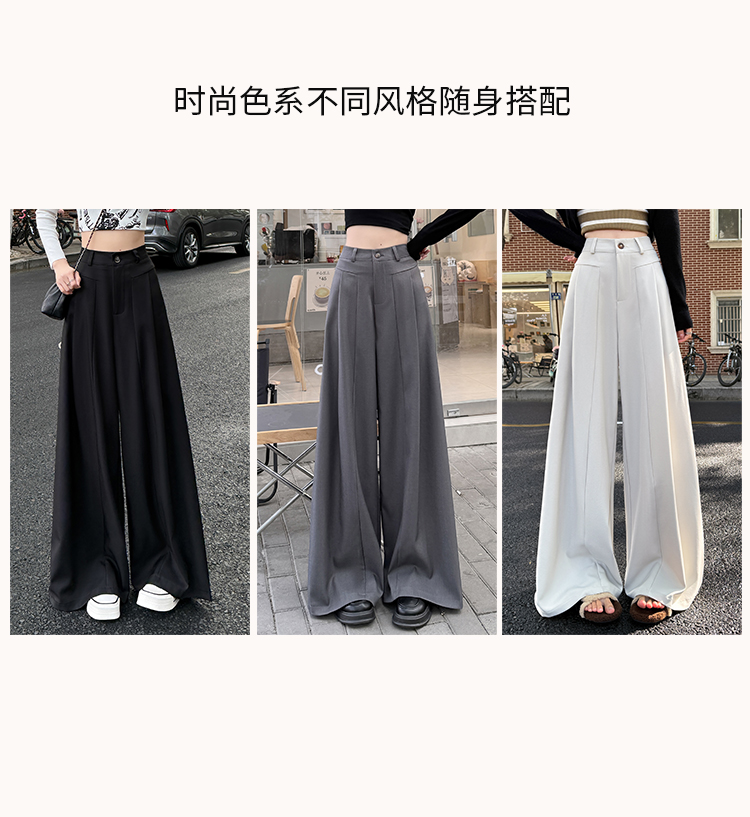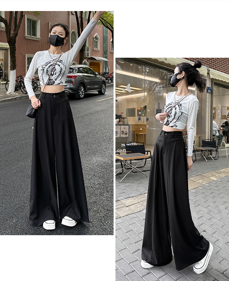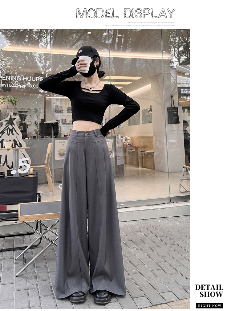 实拍原创黑色西装裤女2026年早春新款高腰垂感拖地裤阔腿裤女