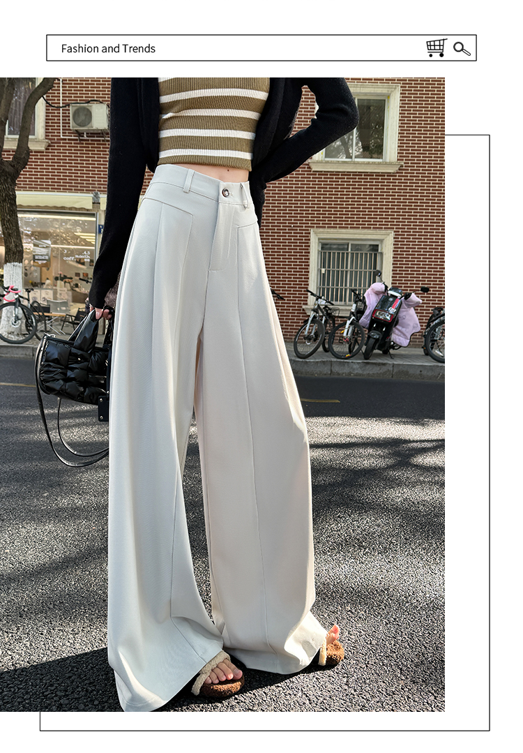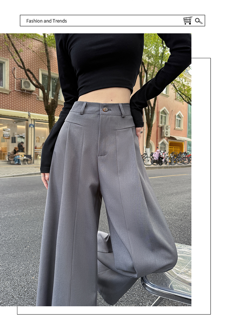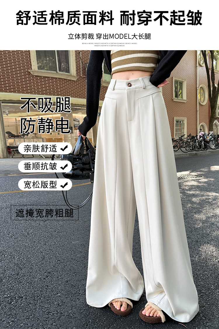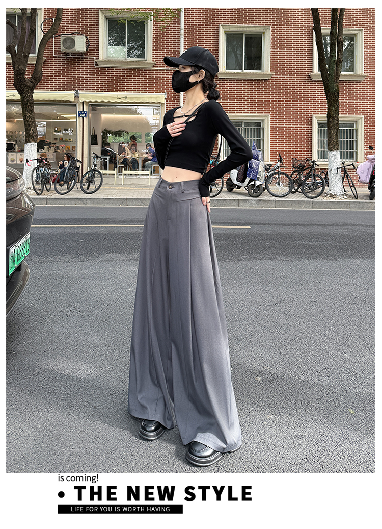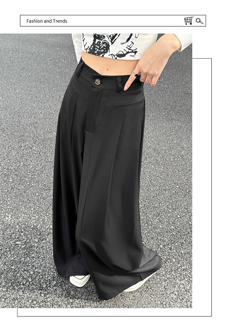 实拍原创黑色西装裤女2026年早春新款高腰垂感拖地裤阔腿裤女