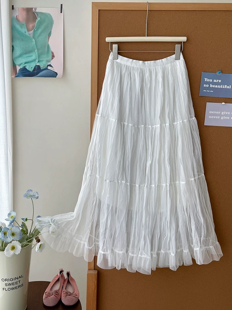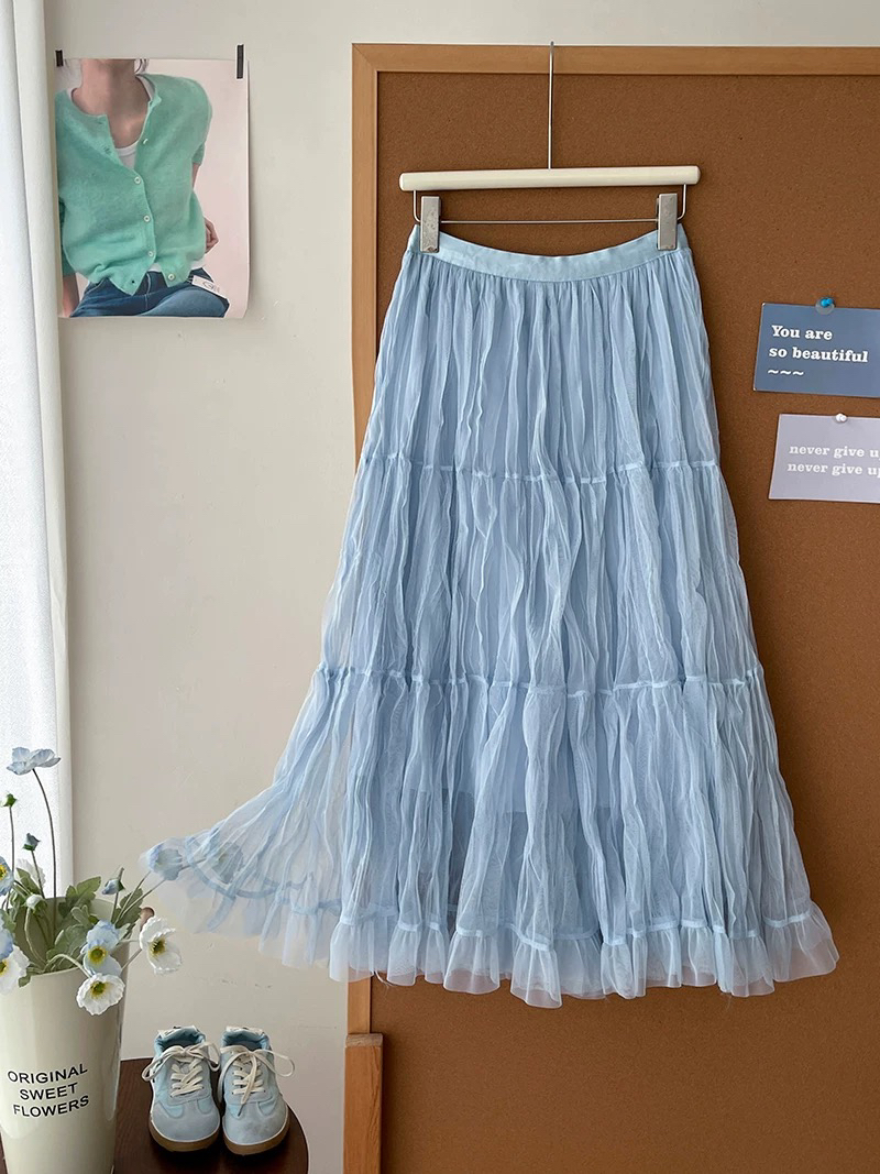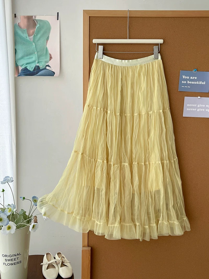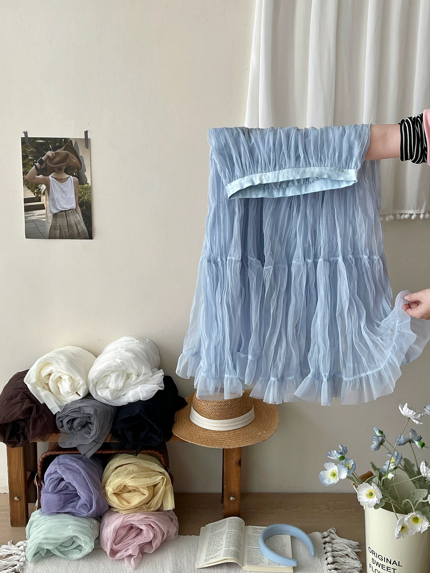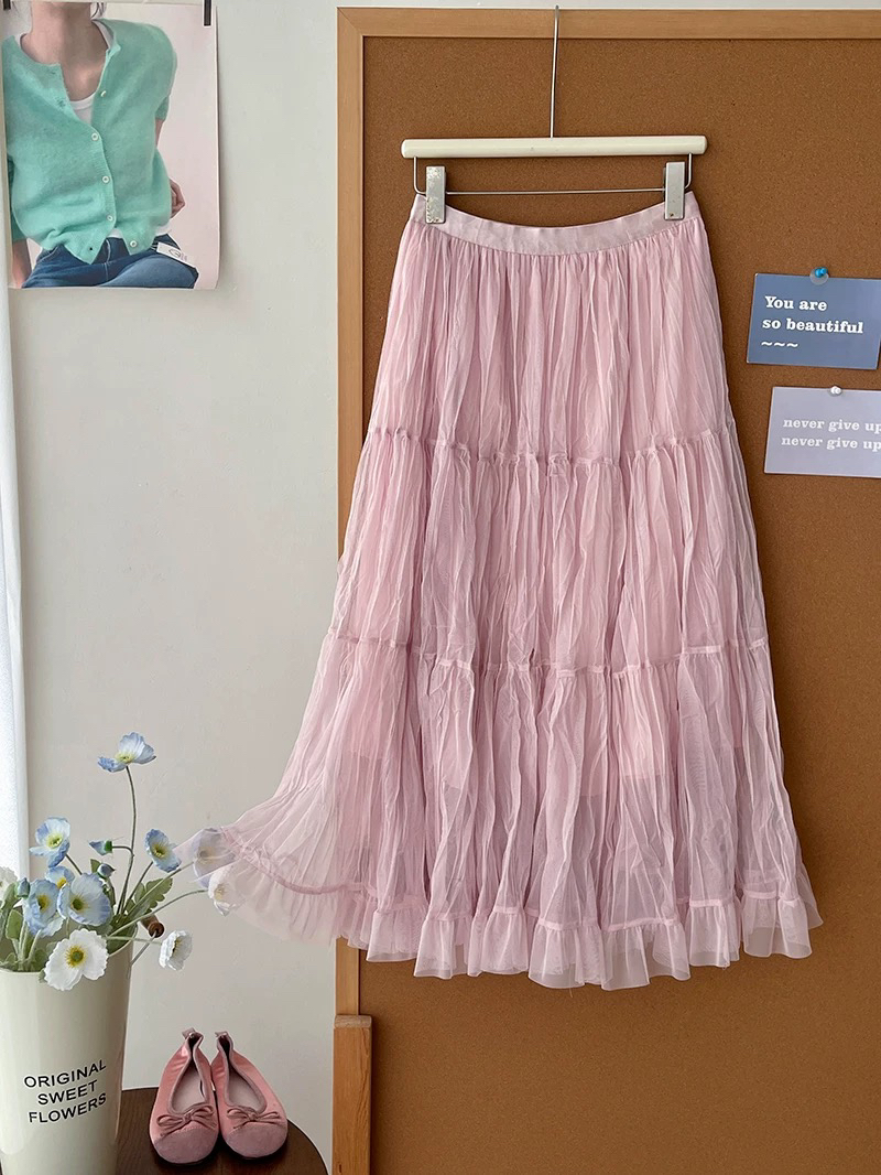 法式甜美网纱拼接百褶蛋糕半身裙女春夏遮胯松弛感超仙大摆a字裙