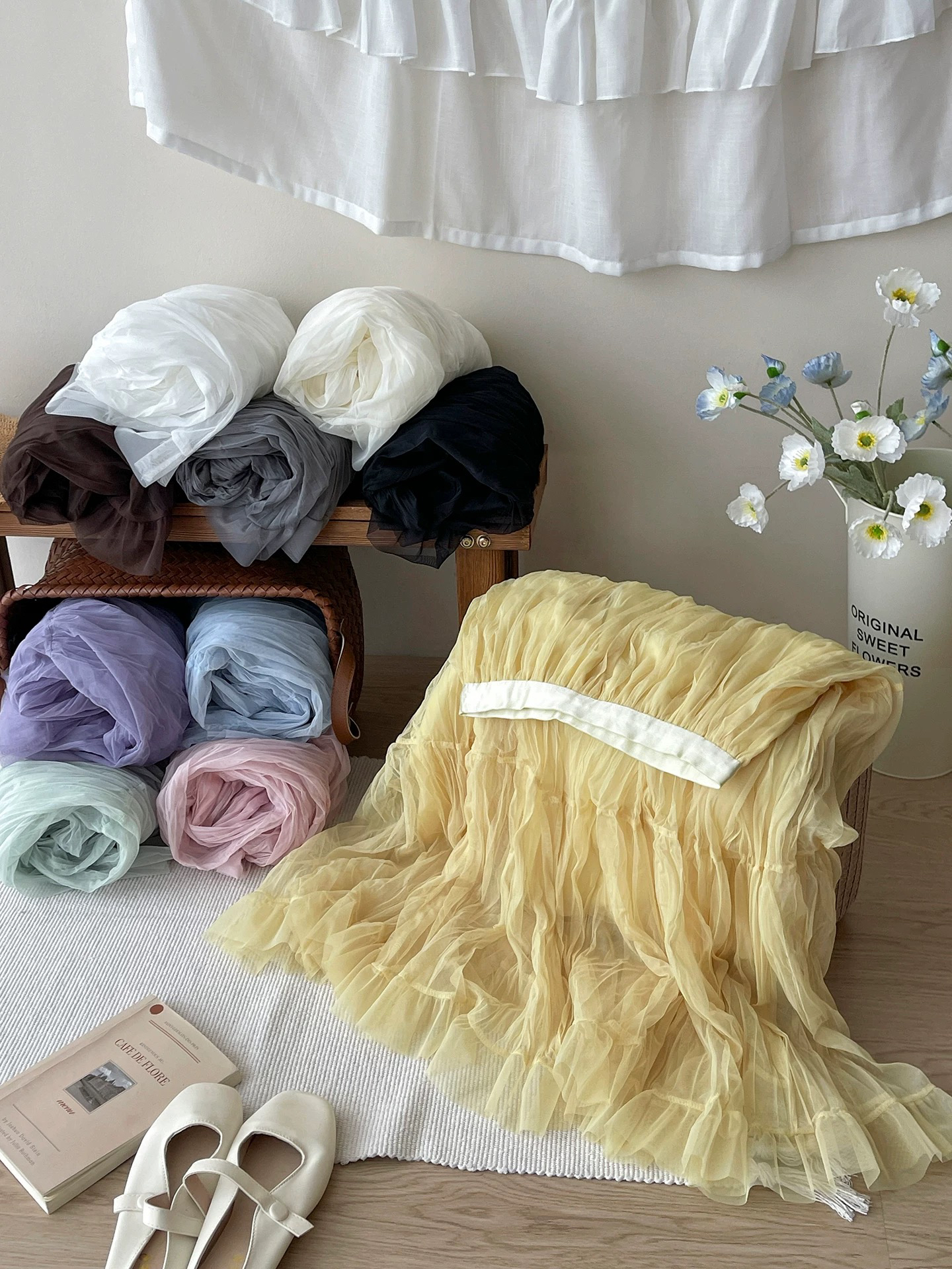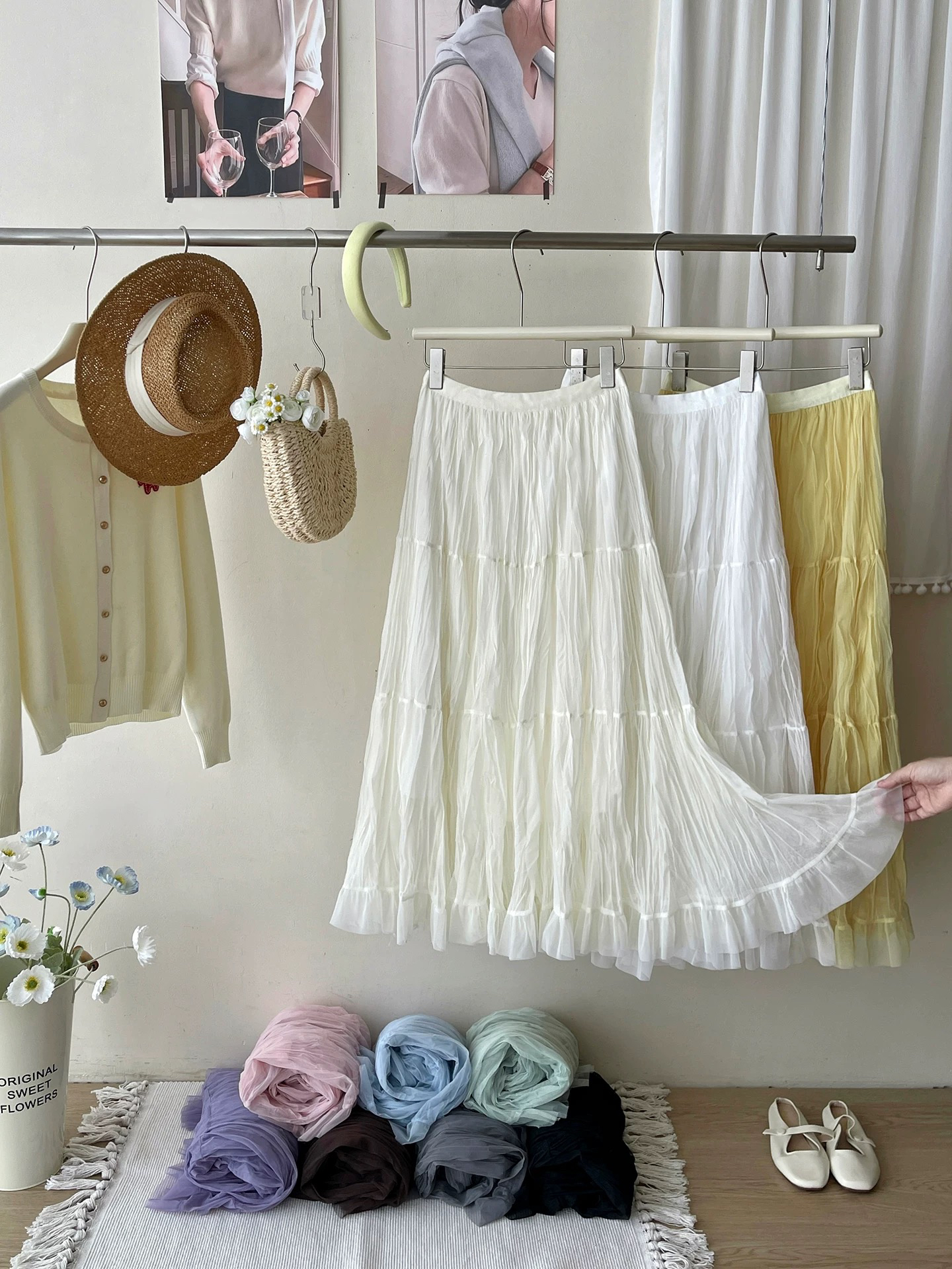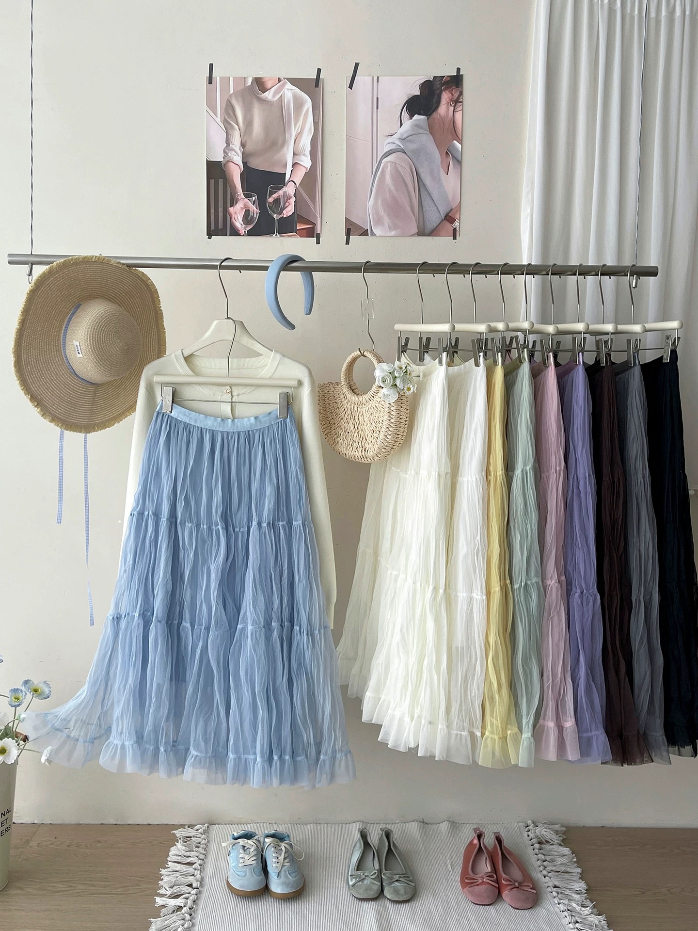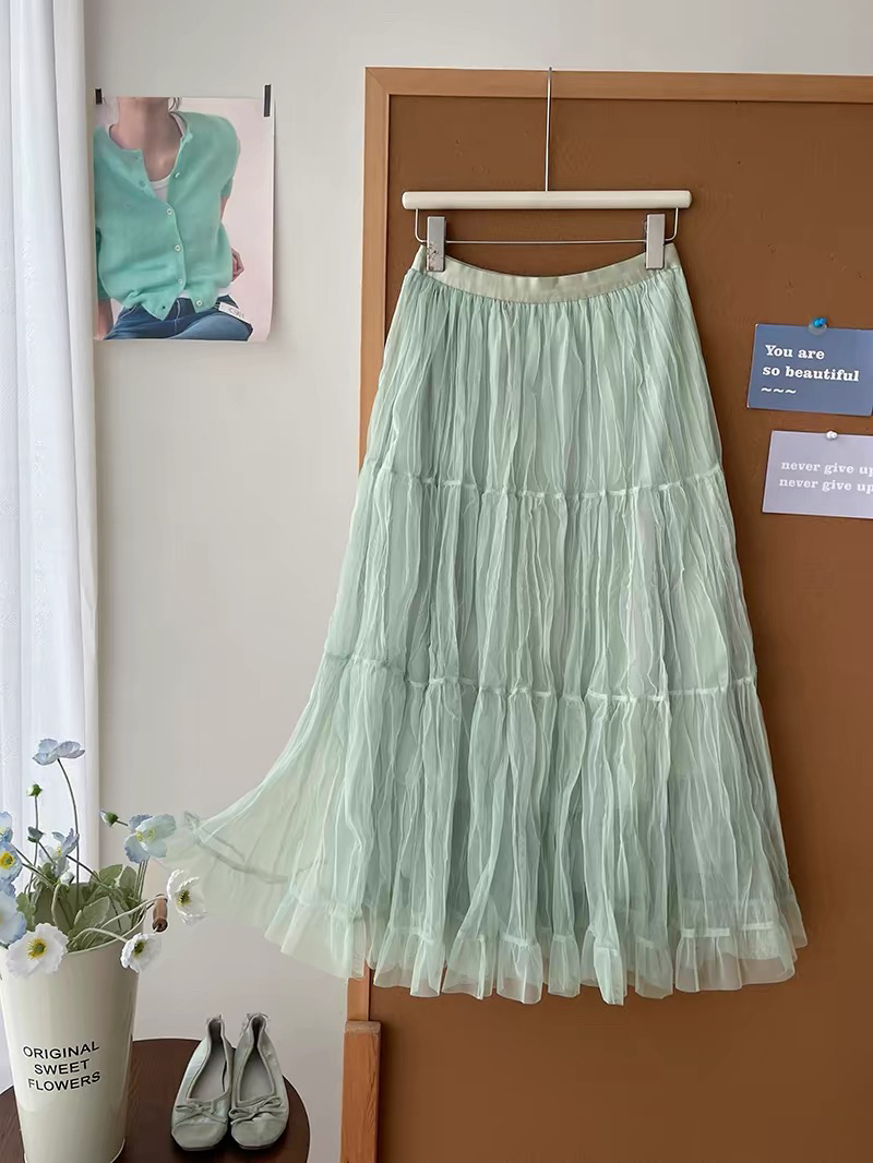 法式甜美网纱拼接百褶蛋糕半身裙女春夏遮胯松弛感超仙大摆a字裙