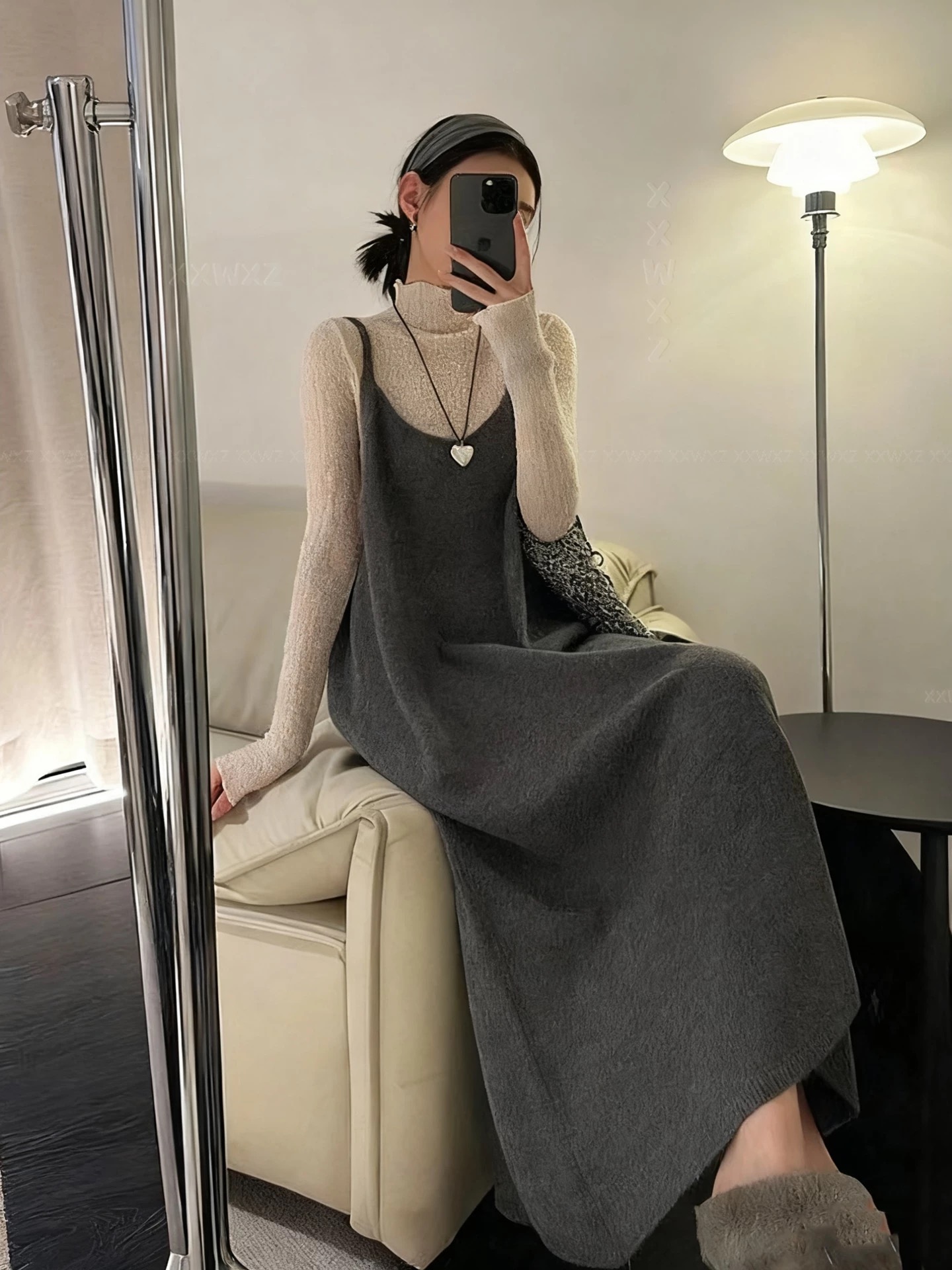 韩国蕾丝打底衫上衣新款时尚百搭慵懒休闲宽松外穿吊带针织衫长裙