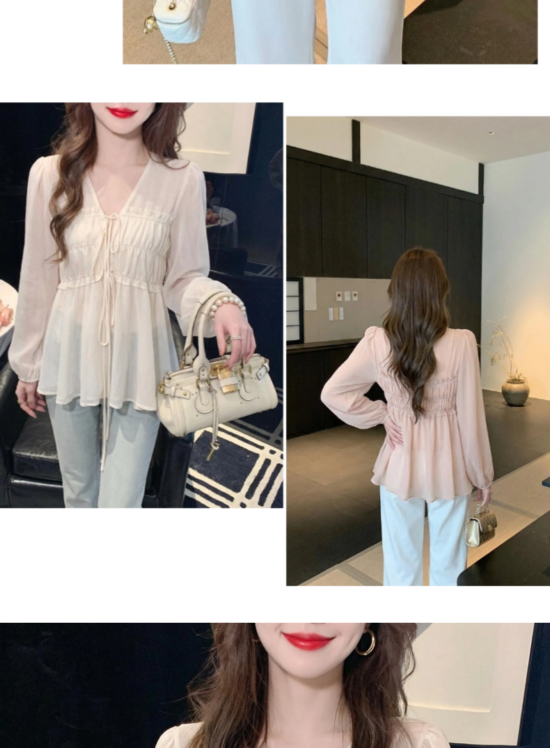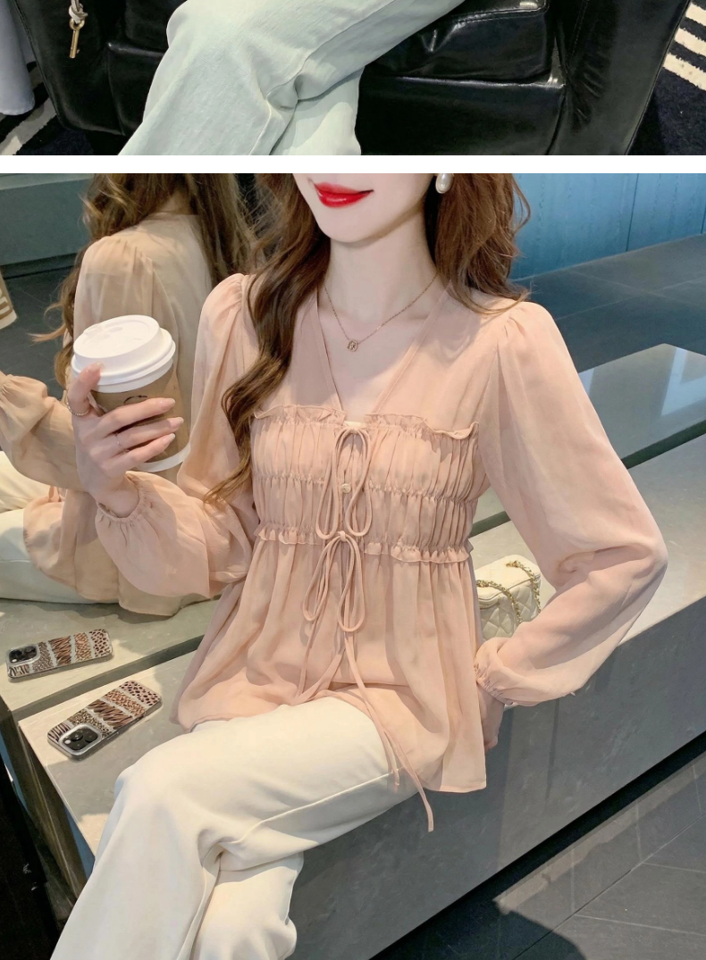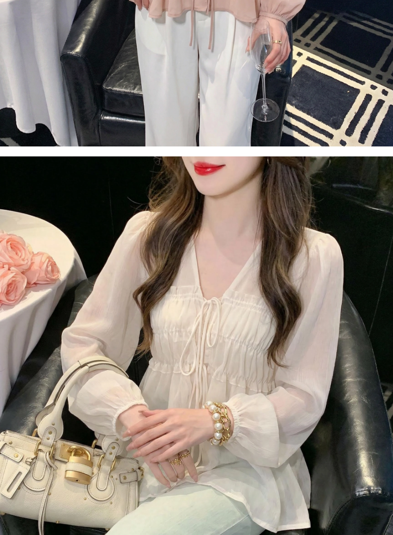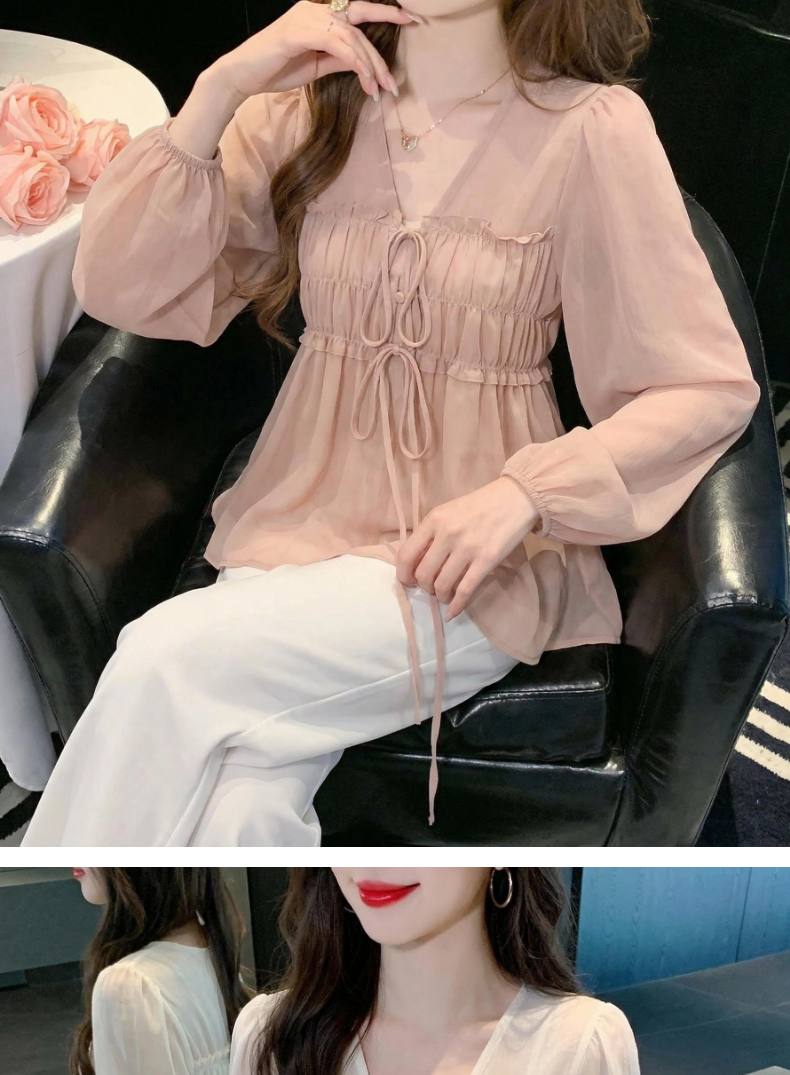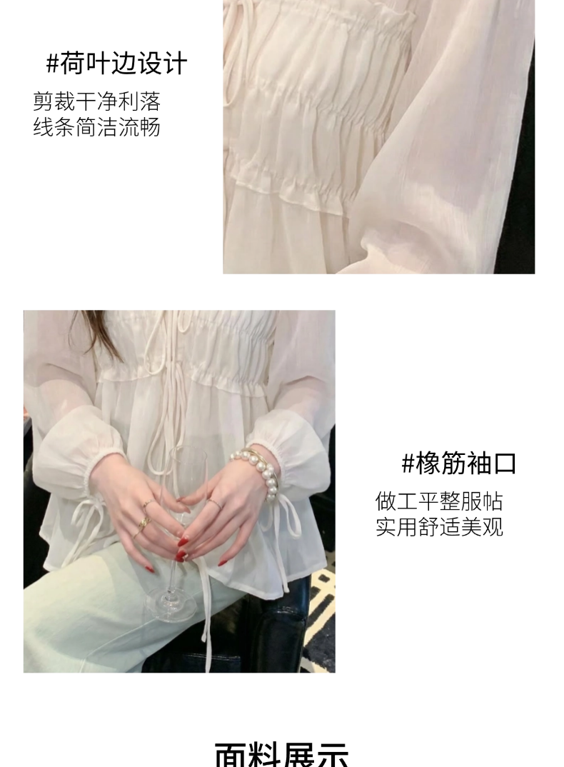 2026夏季新款实拍纯欲风抽褶系带V领衬衫女收腰泡泡袖娃娃衫上衣