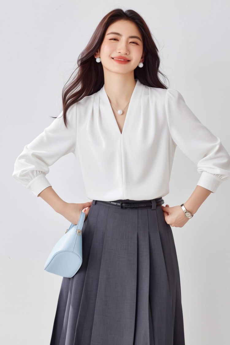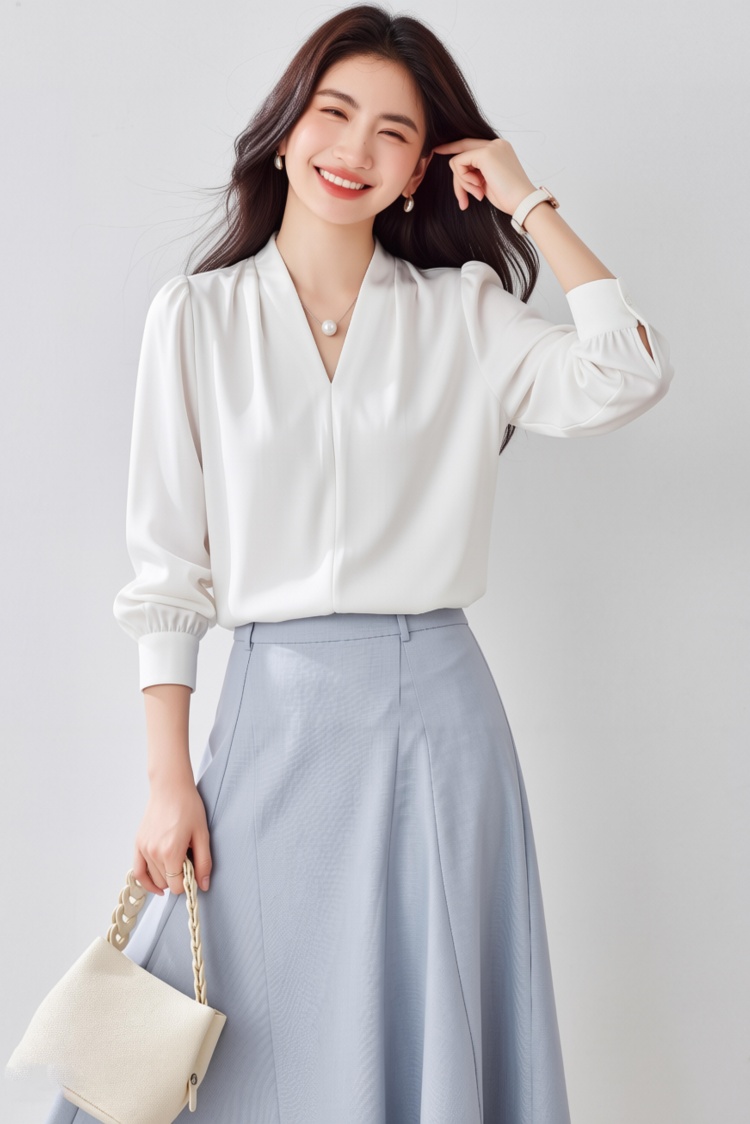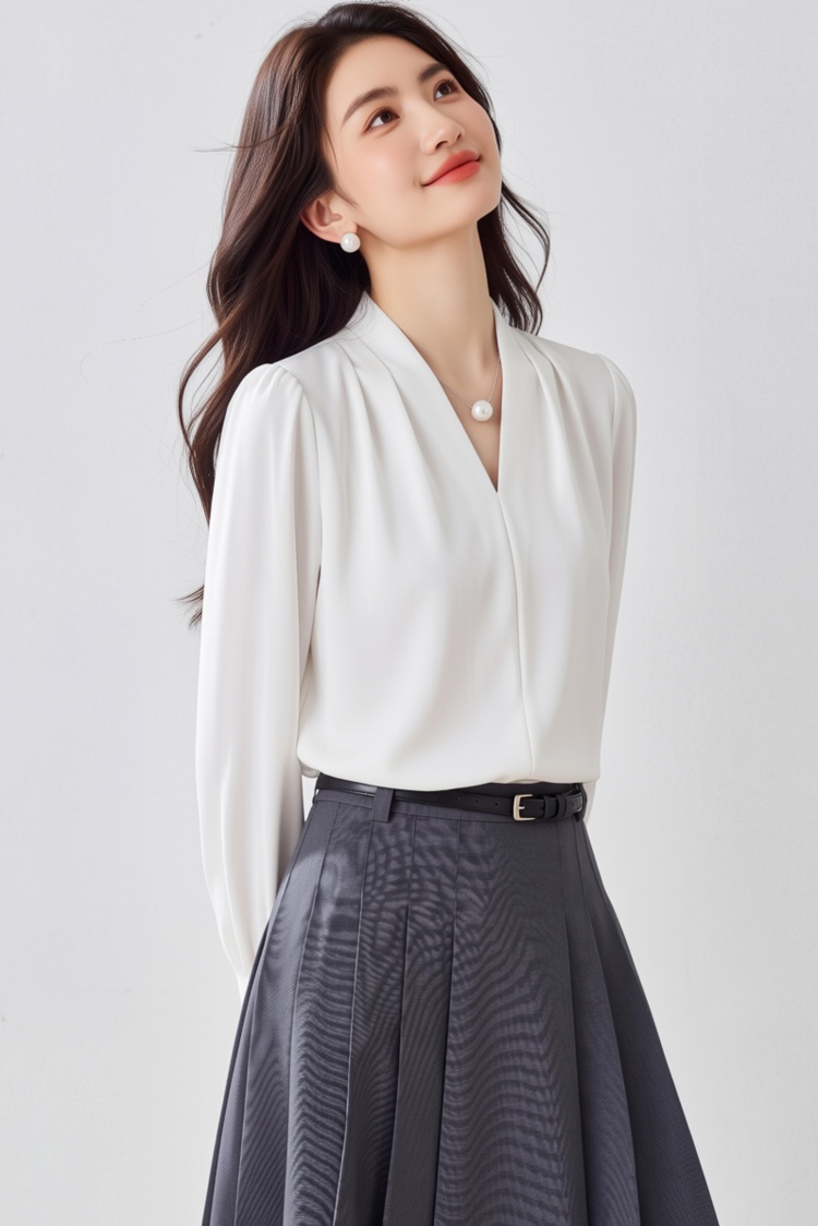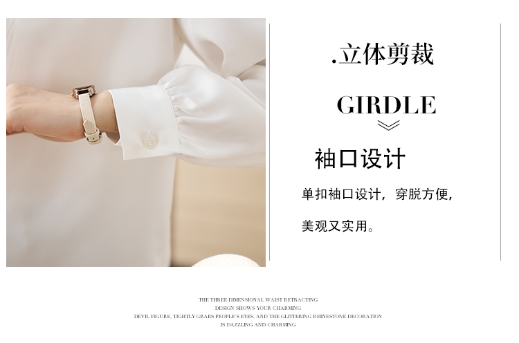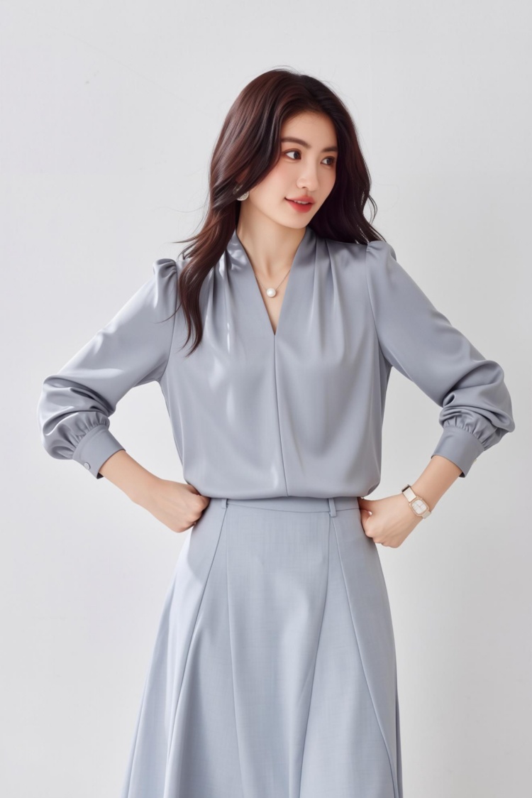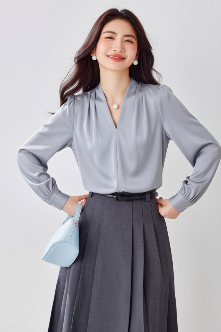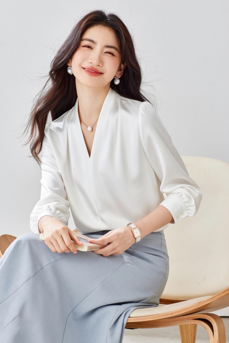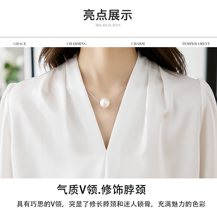 实拍3色 高级感简约衬衫女春季气质V领轻熟风通勤缎面雪纺衫上衣