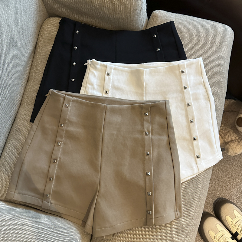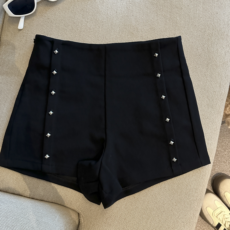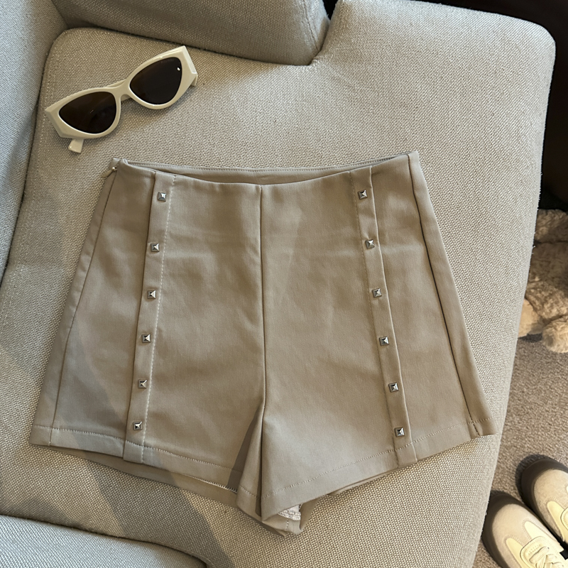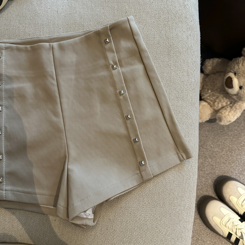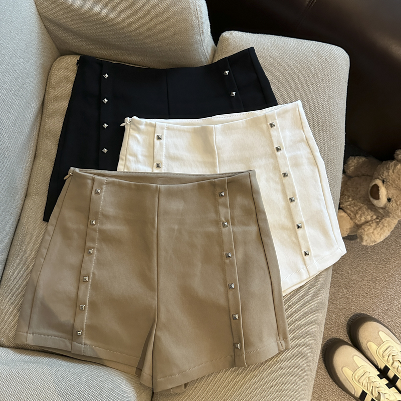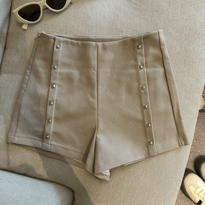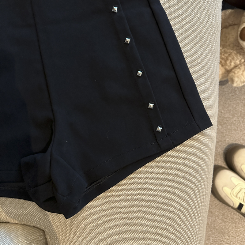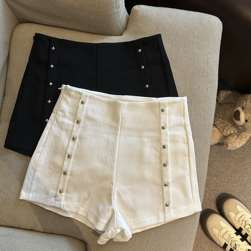 实拍 韩版时尚辣妹高腰铆钉弹力短裤女2026春夏高腰性感A字裤热裤