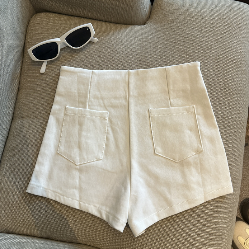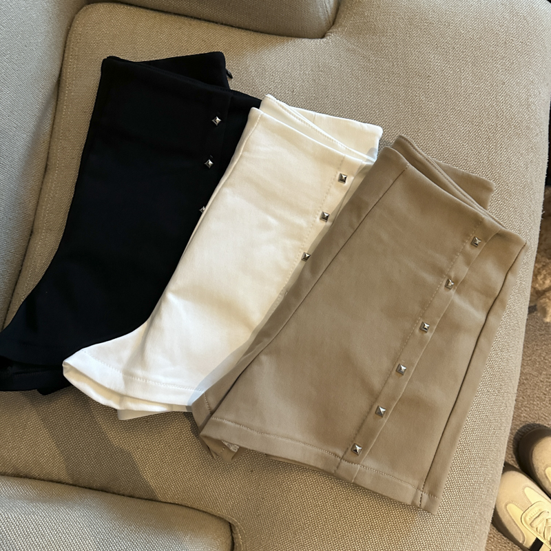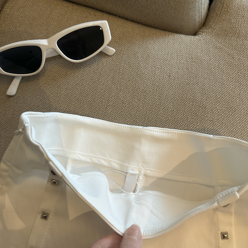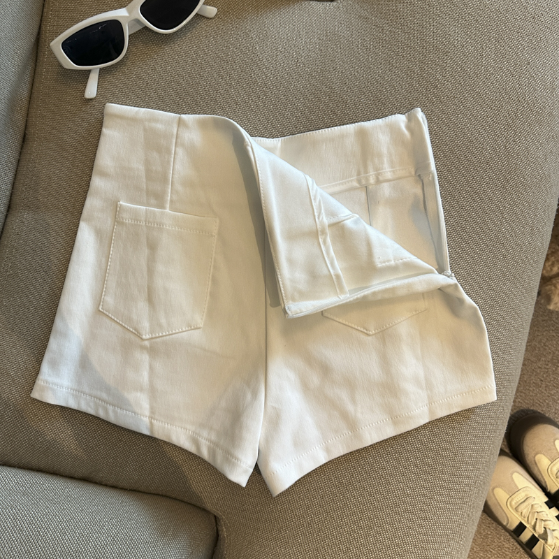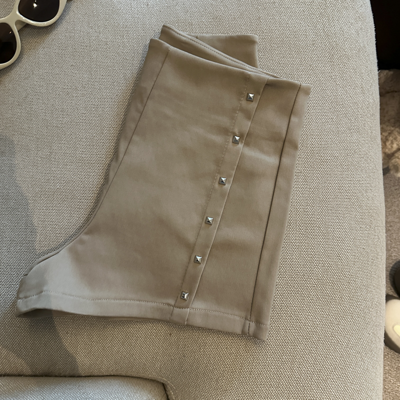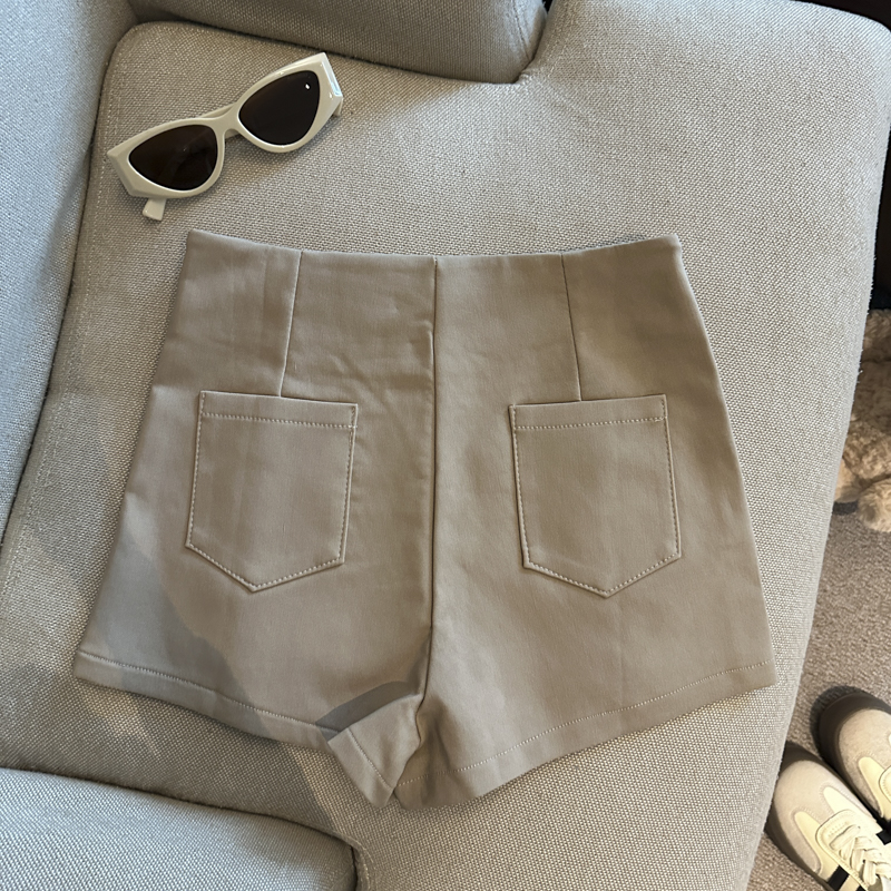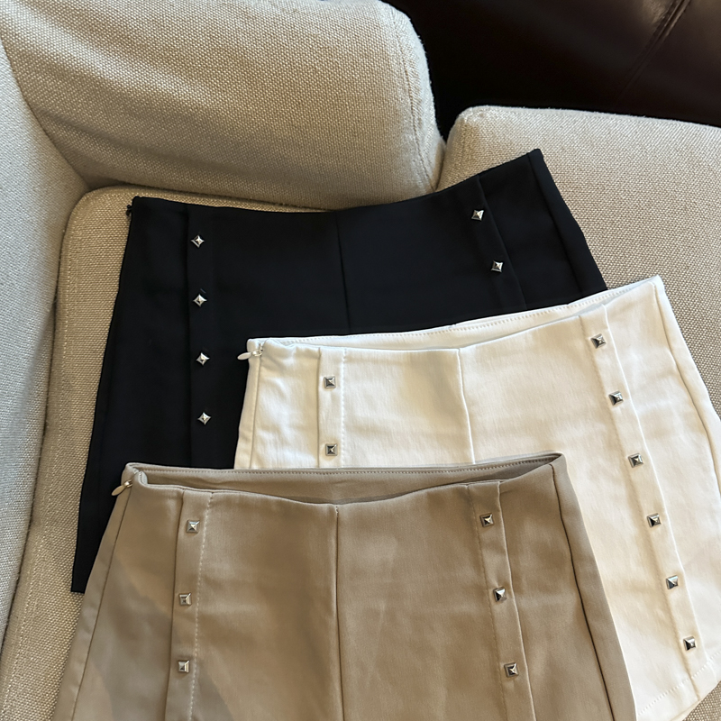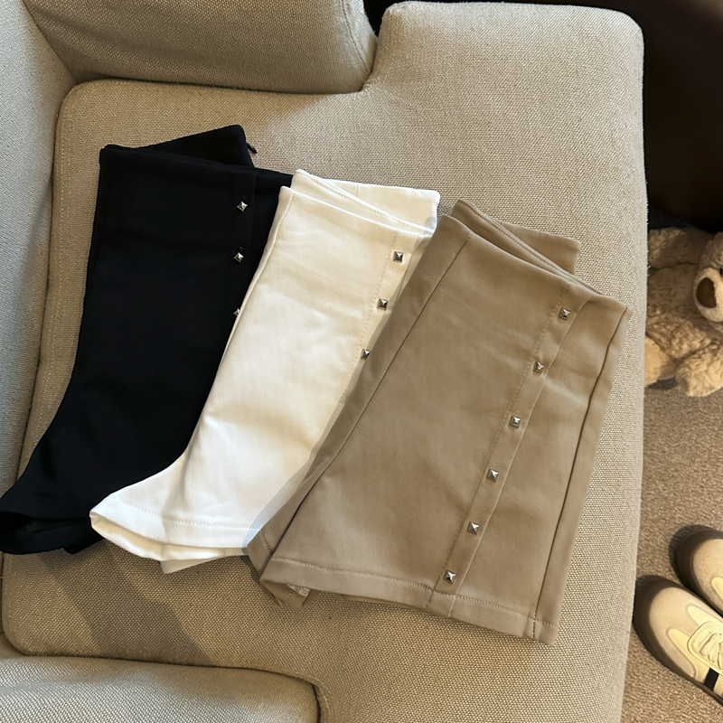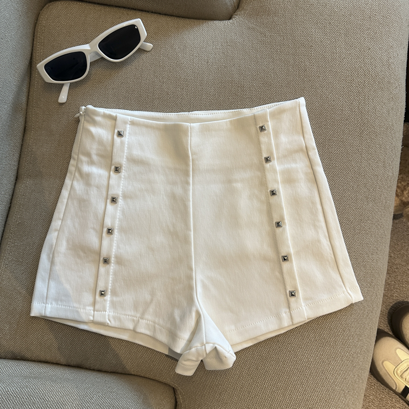 实拍 韩版时尚辣妹高腰铆钉弹力短裤女2026春夏高腰性感A字裤热裤
