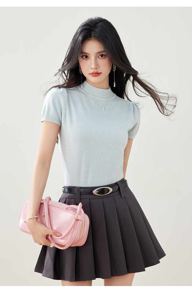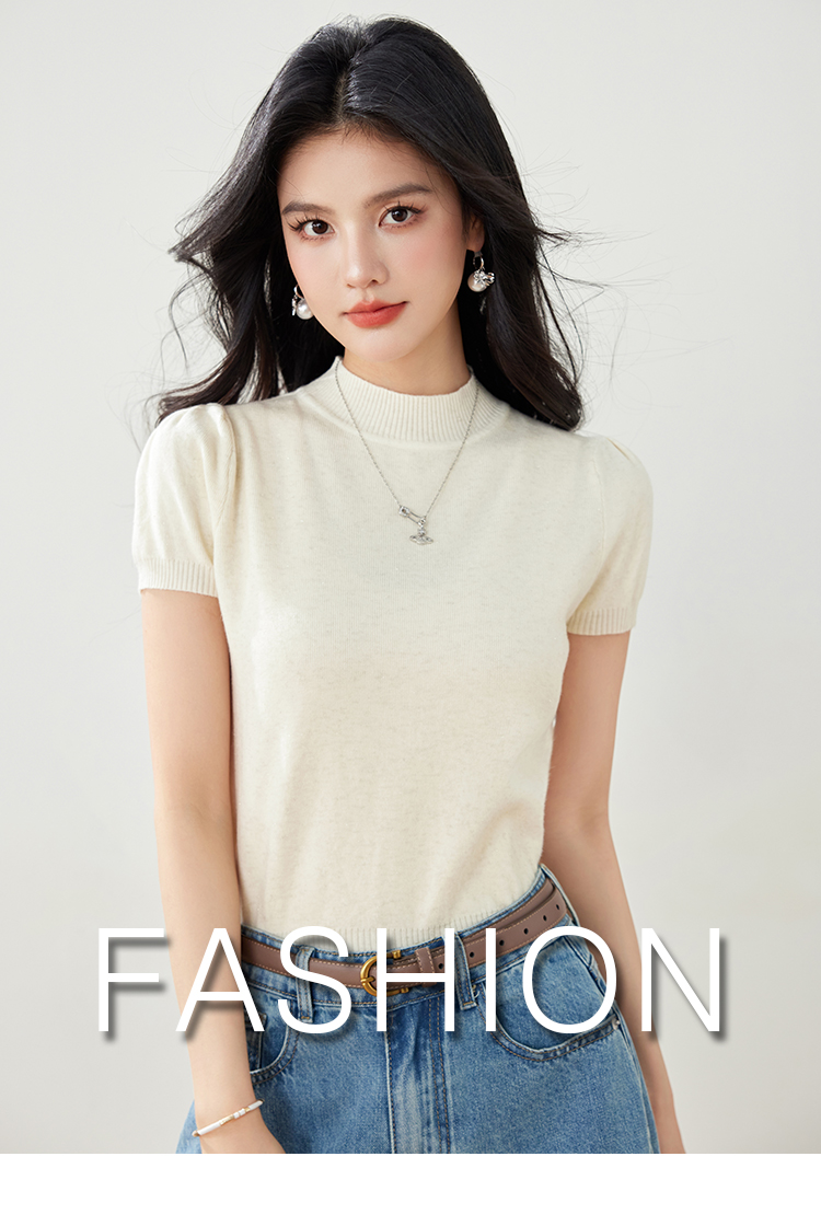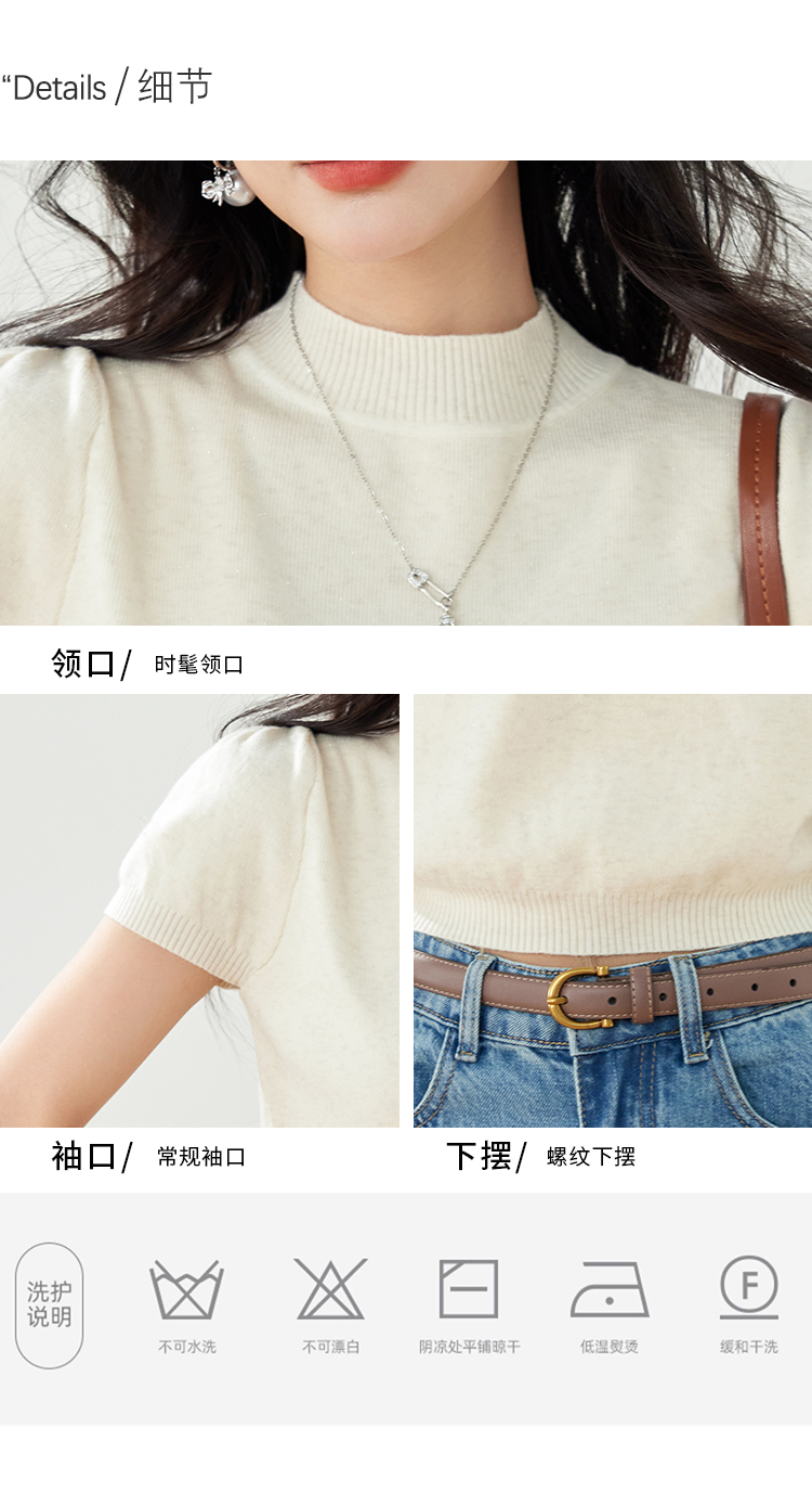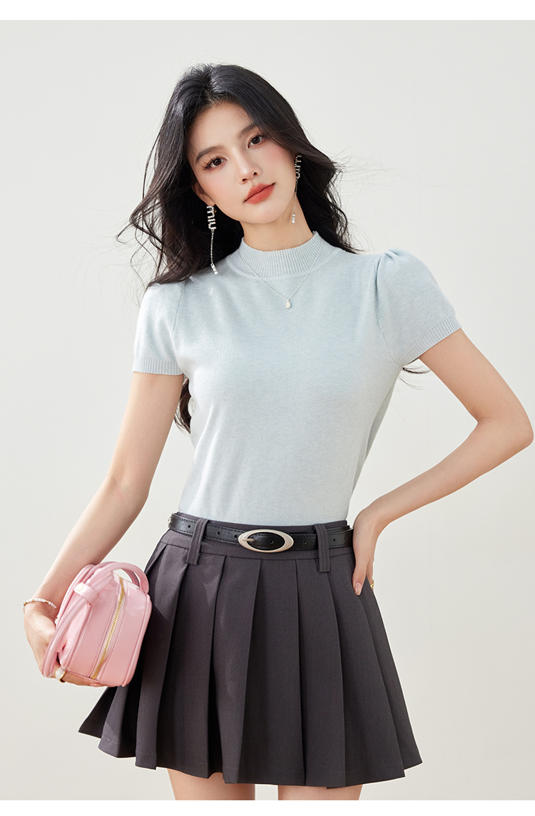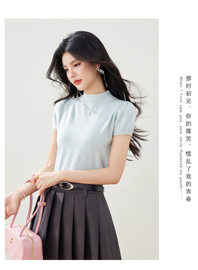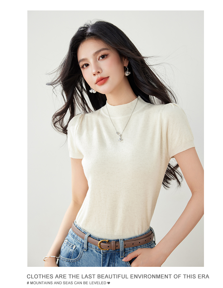 实拍早秋新款短袖针织衫女纯色韩版百搭短款修身小款小个子女