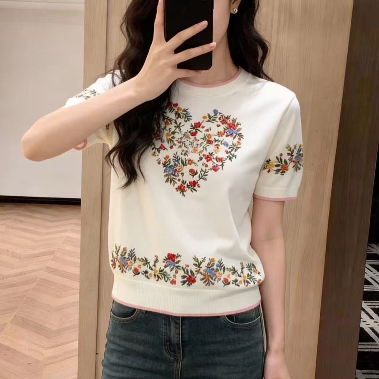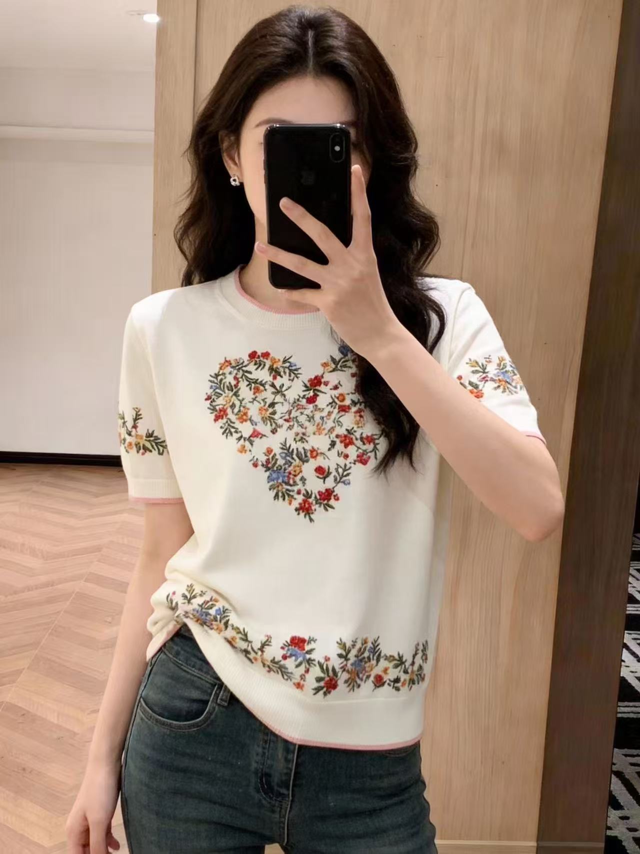 2026春女装新款绝美巨好看休闲花朵印花宽松型短袖圆领碎花