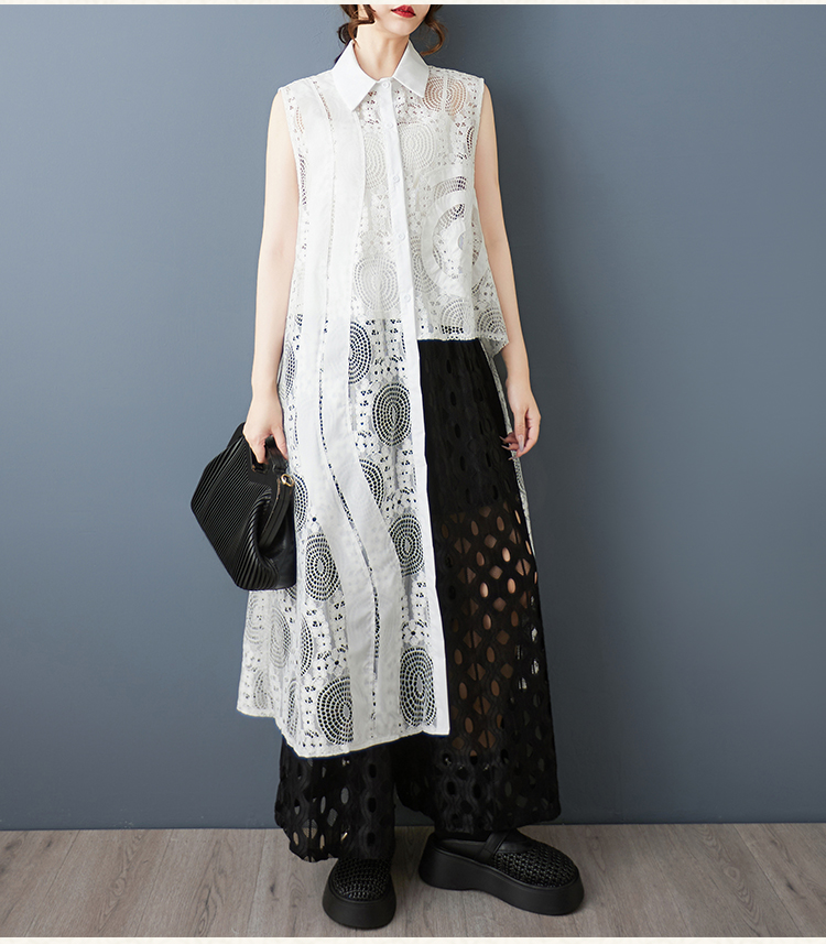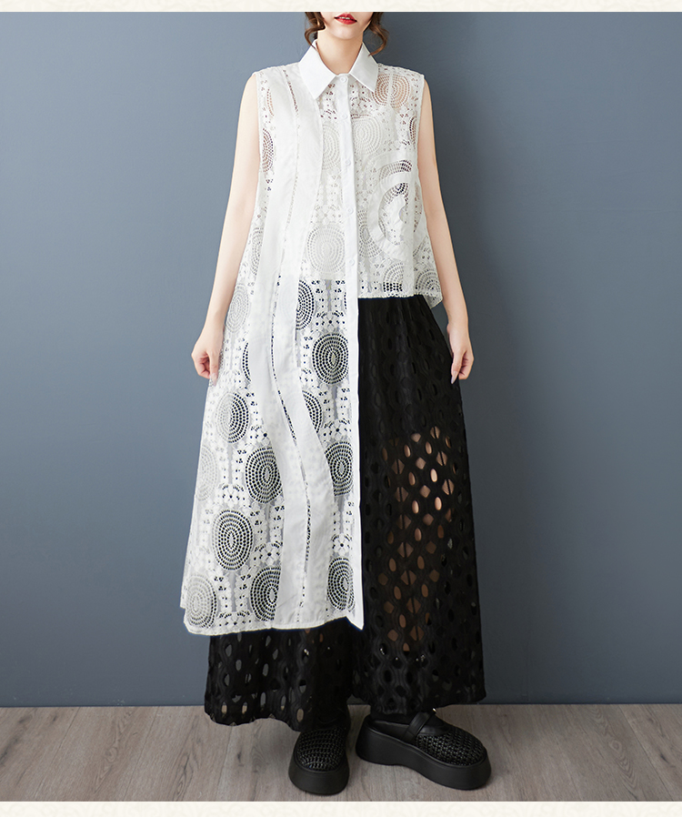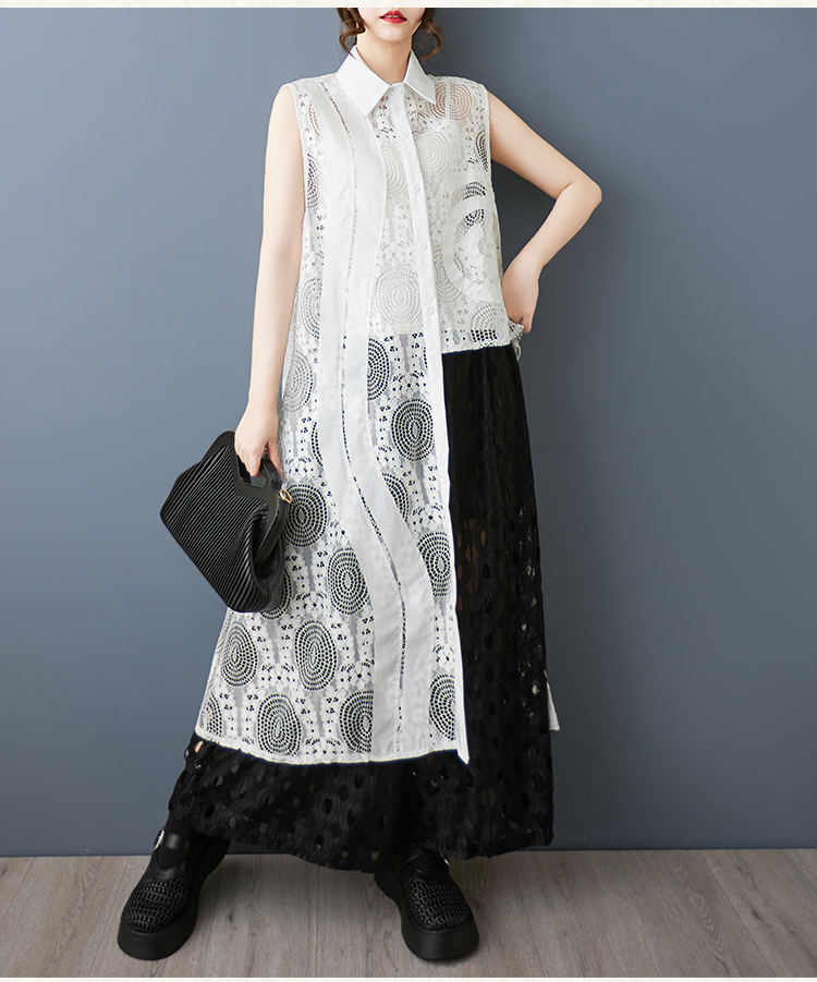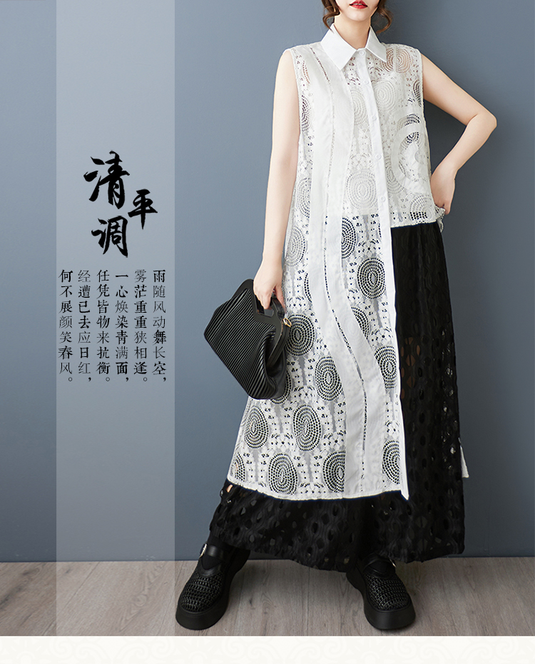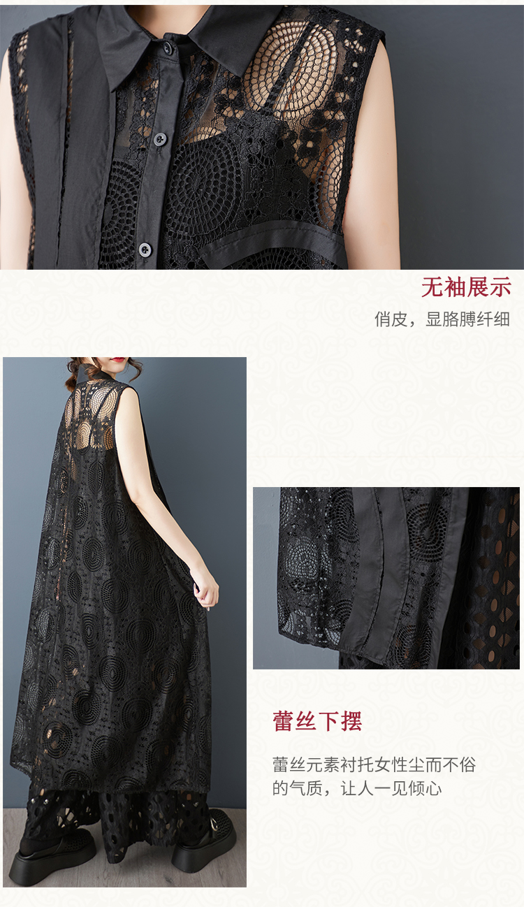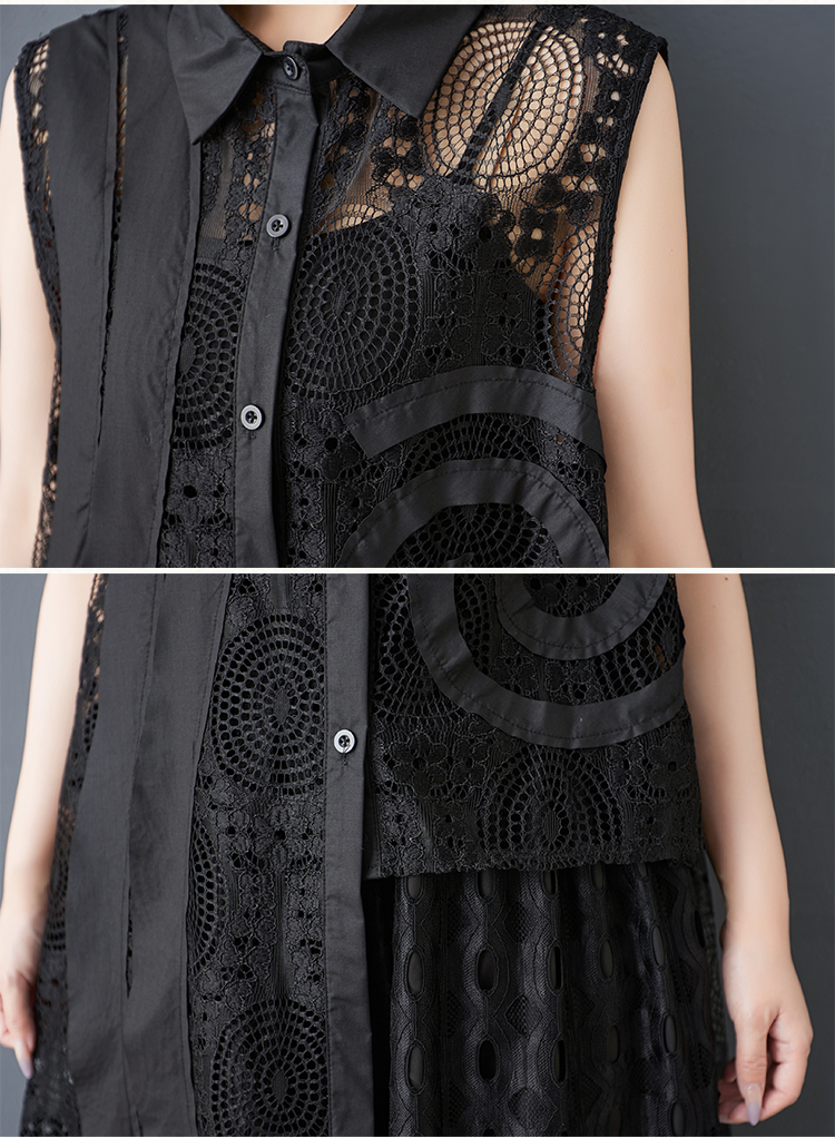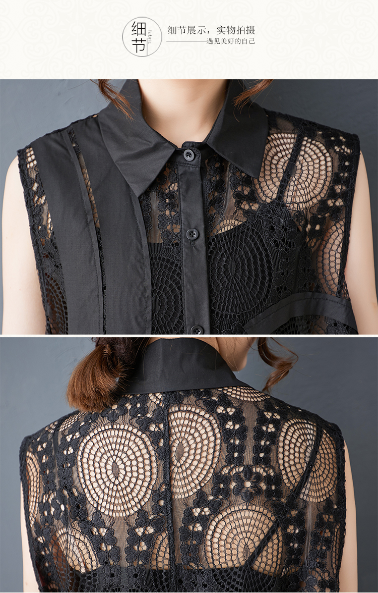 实拍夏新款宽松大码网纱拼接休闲简约甜美无袖衬衫连衣裙