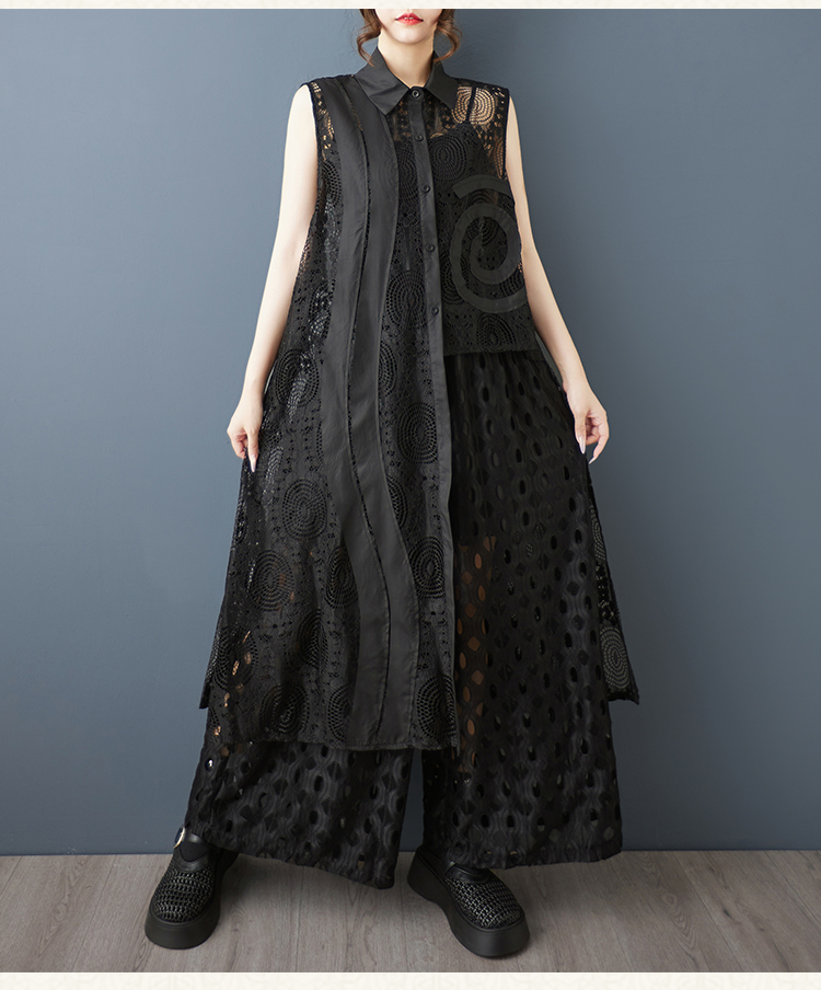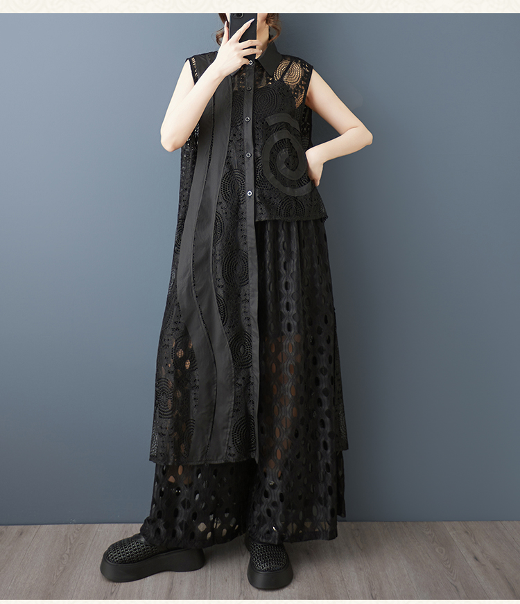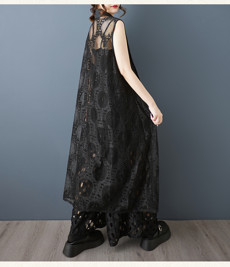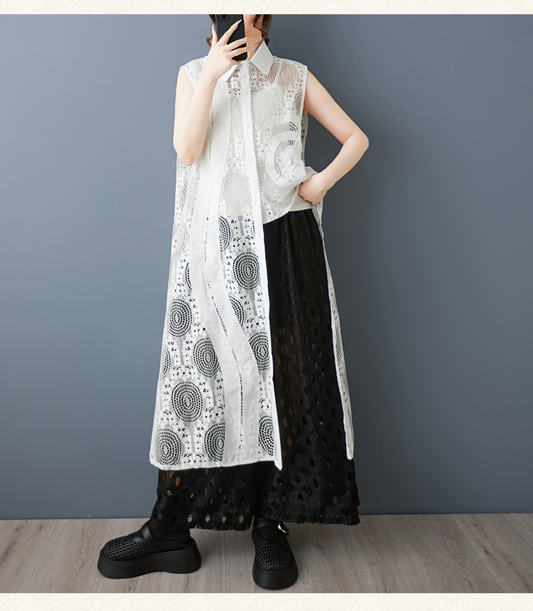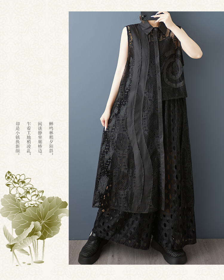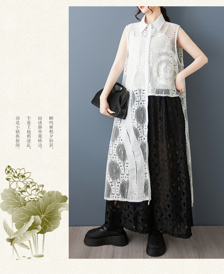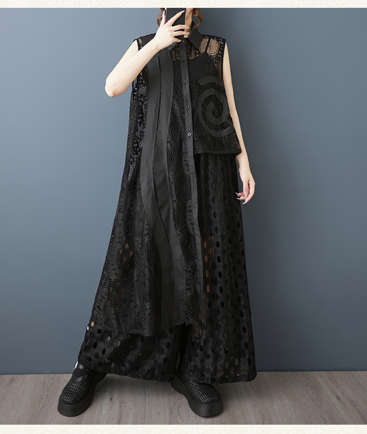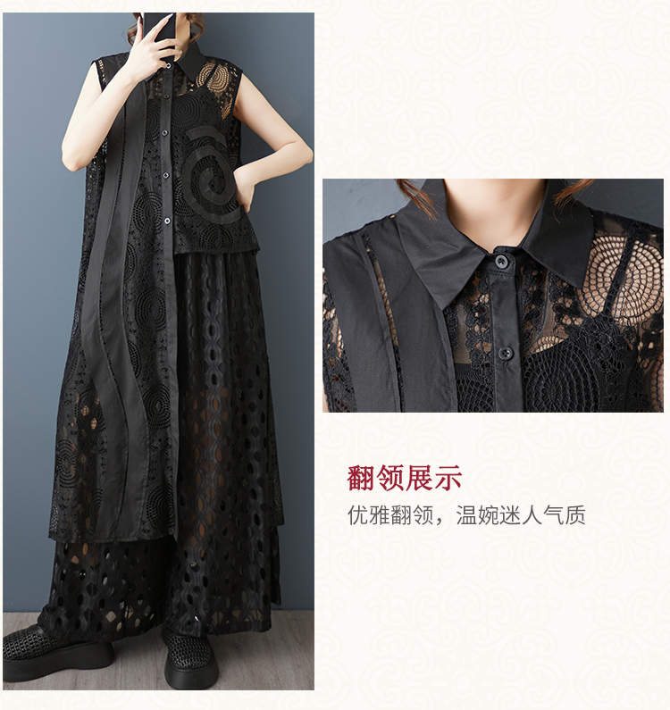 实拍夏新款宽松大码网纱拼接休闲简约甜美无袖衬衫连衣裙