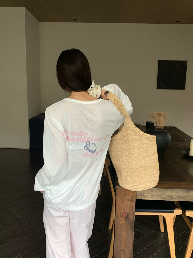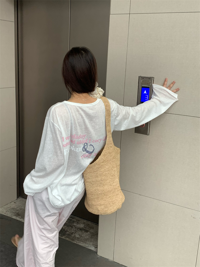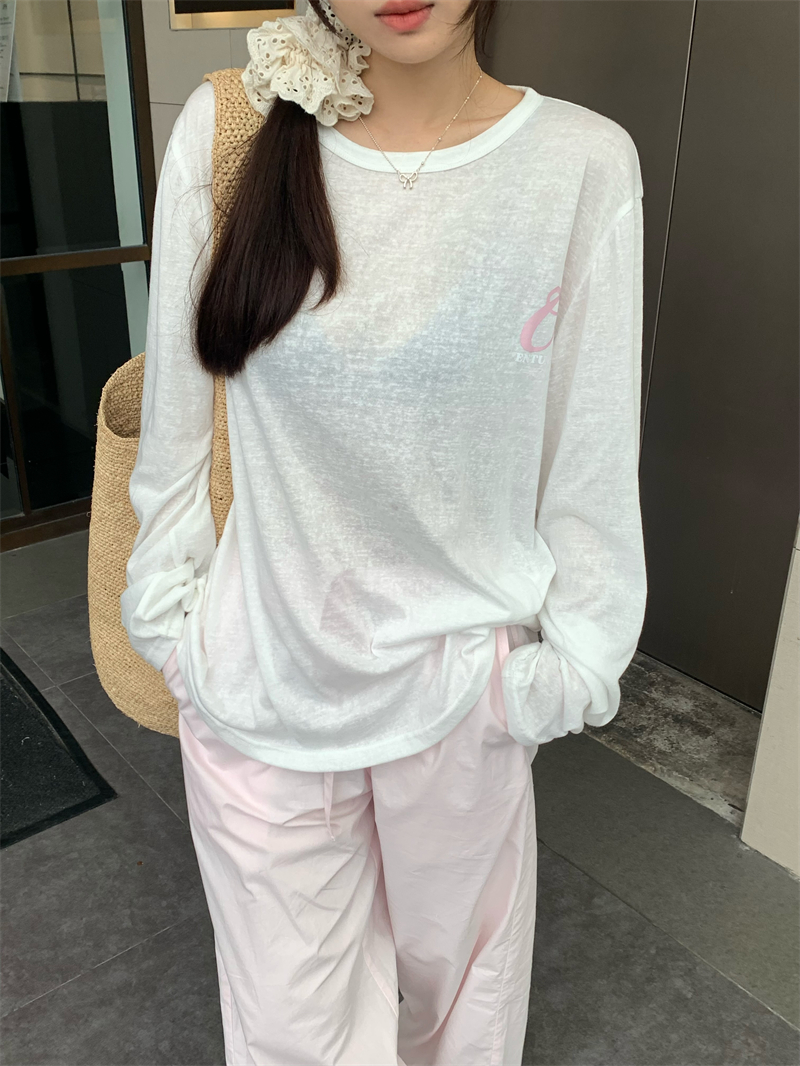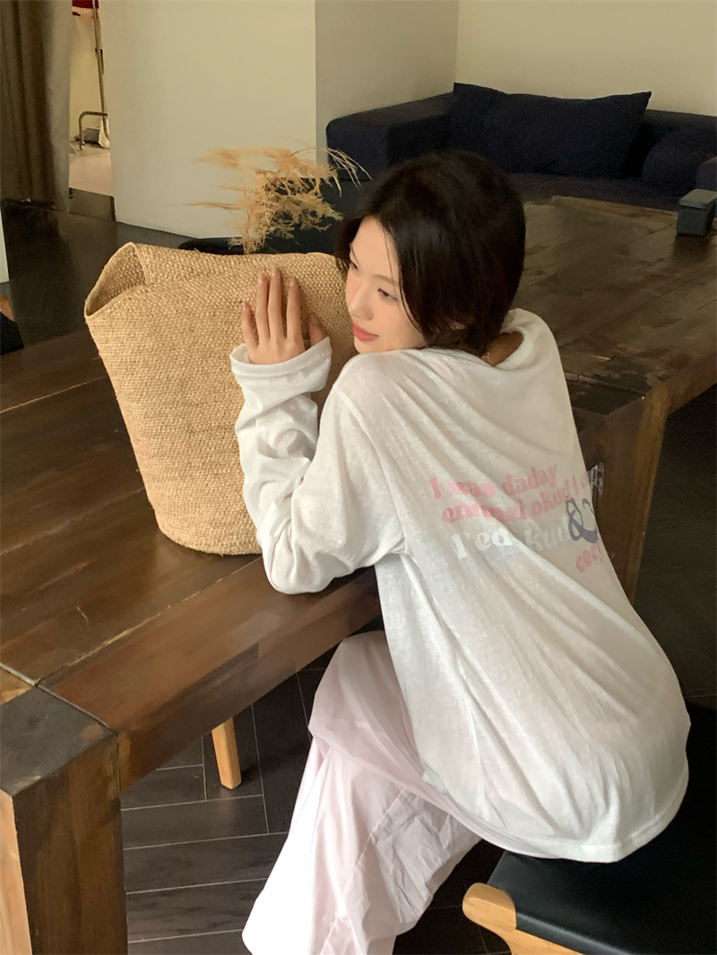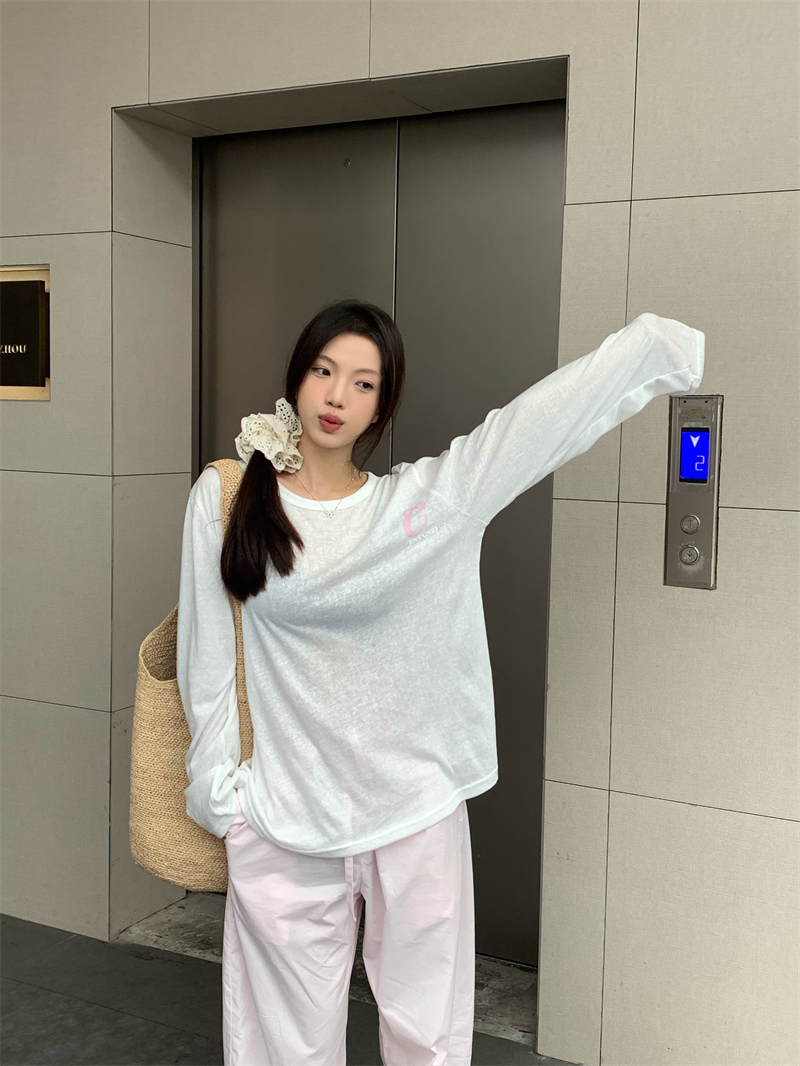 实拍实价~夏季美式复古慵懒前后字母印花长袖防晒上衣T恤