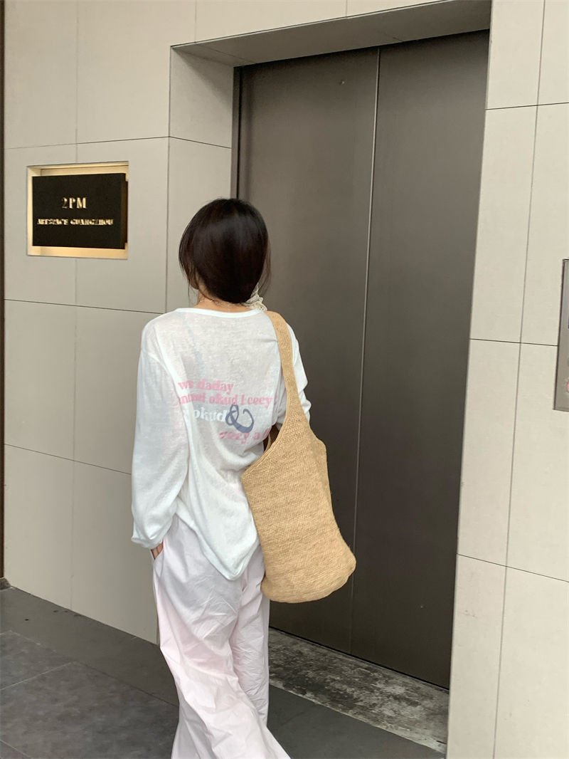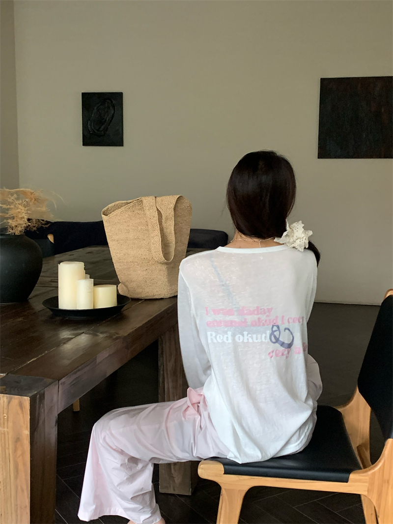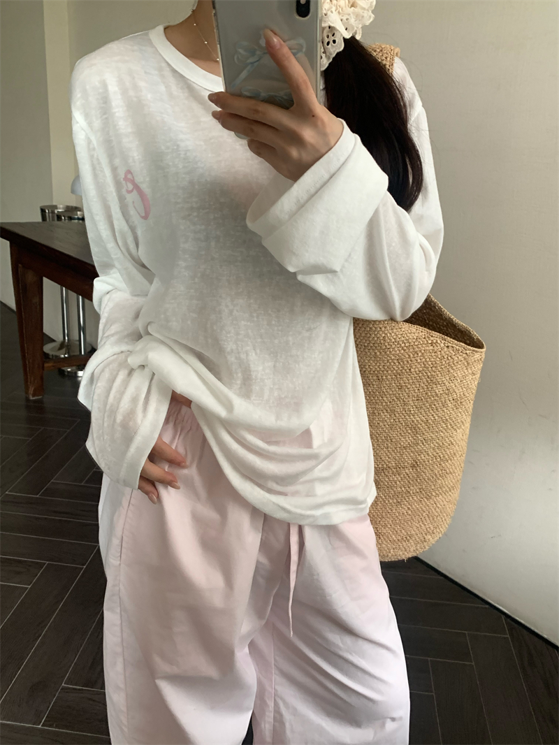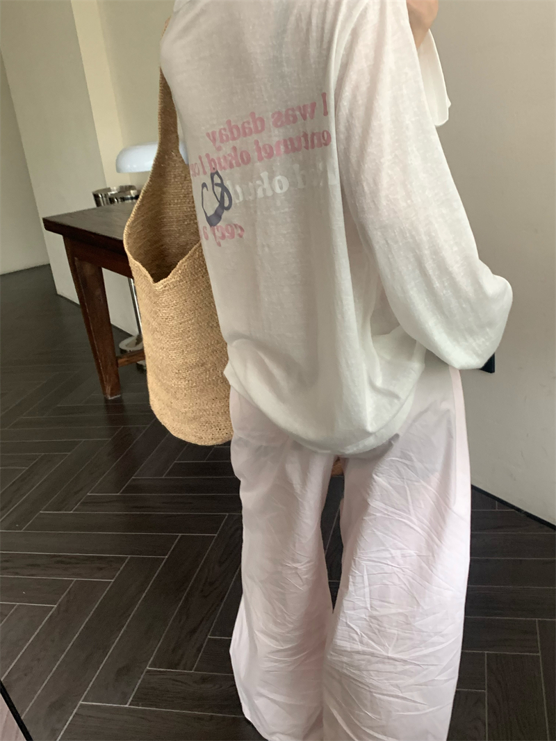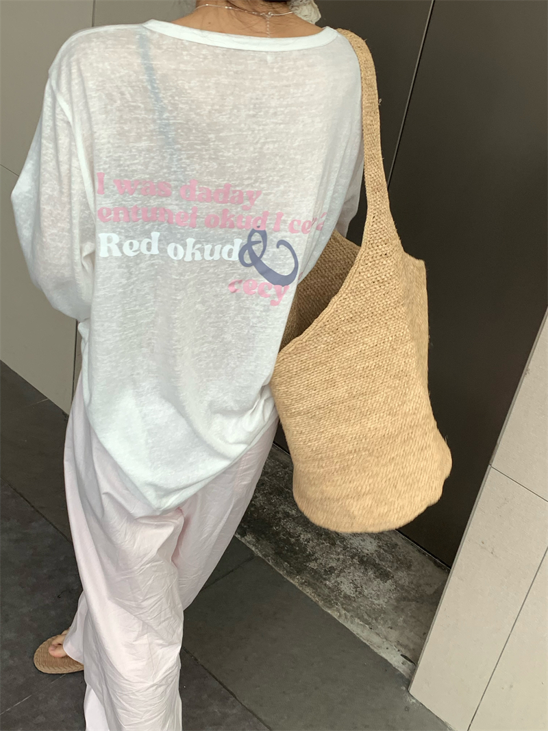 实拍实价~夏季美式复古慵懒前后字母印花长袖防晒上衣T恤
