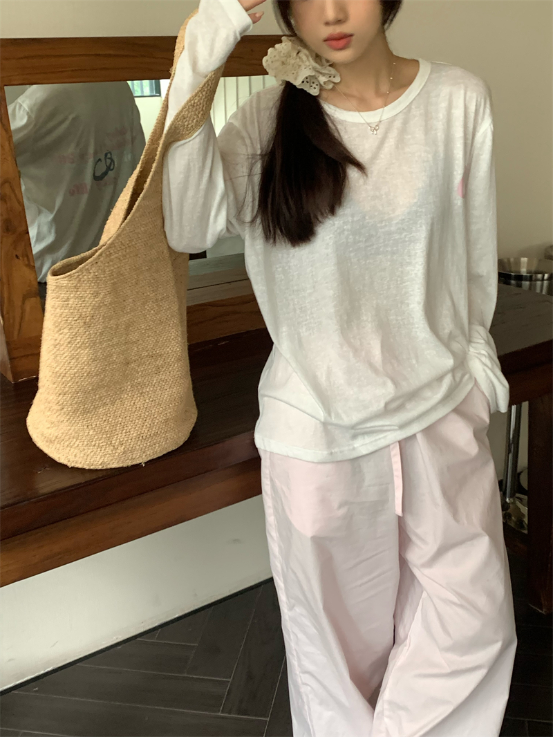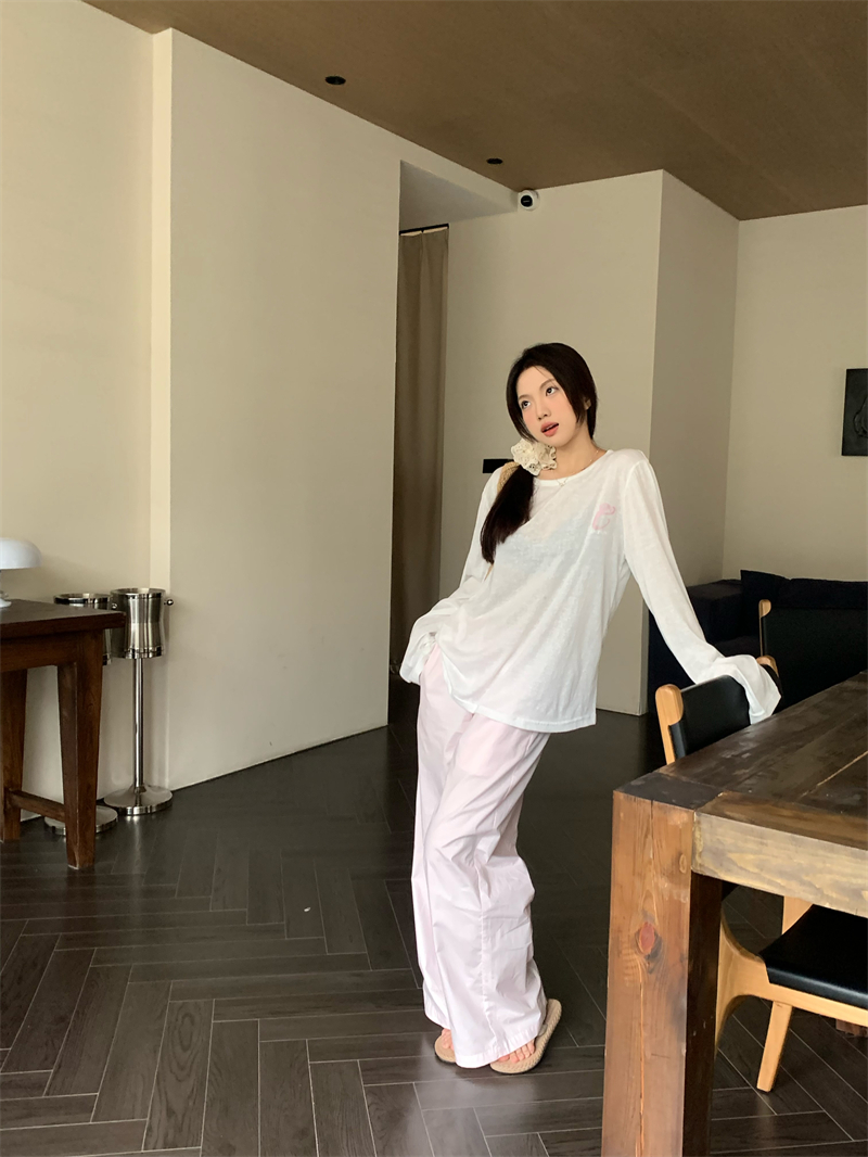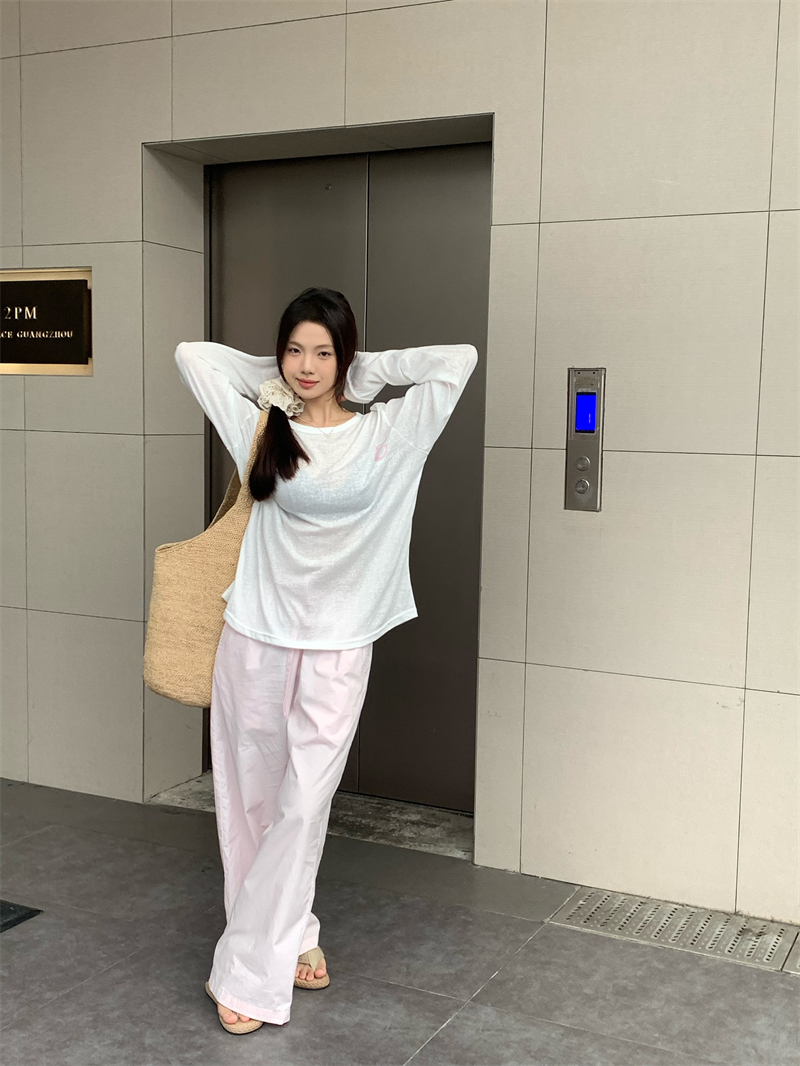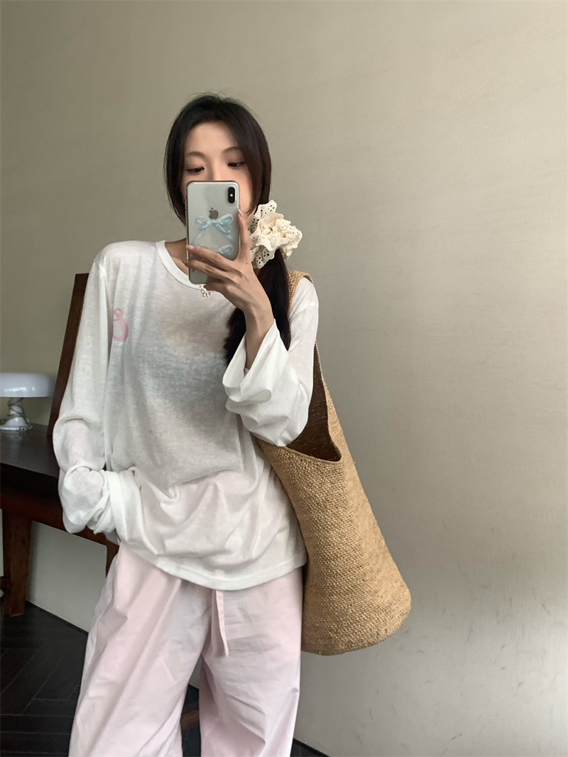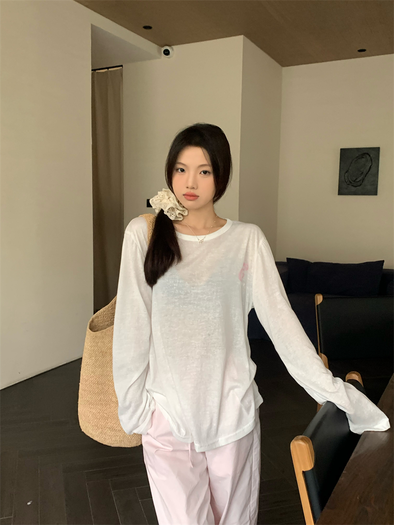 实拍实价~夏季美式复古慵懒前后字母印花长袖防晒上衣T恤