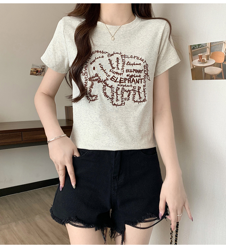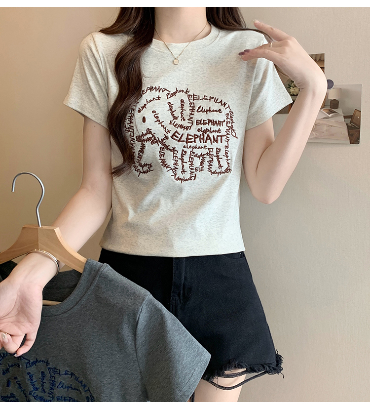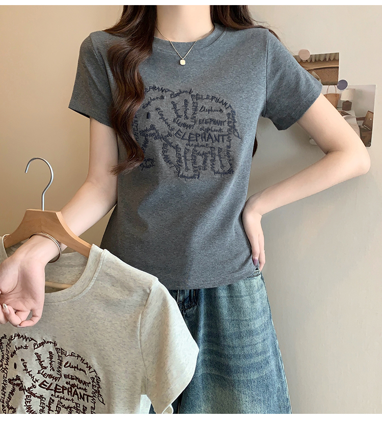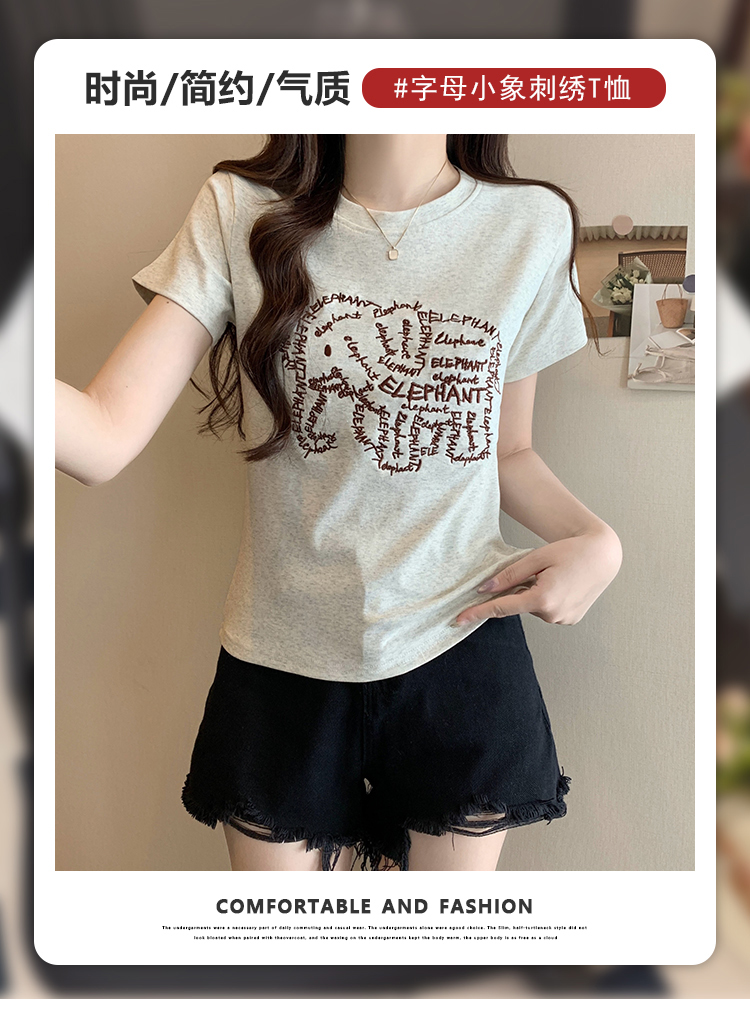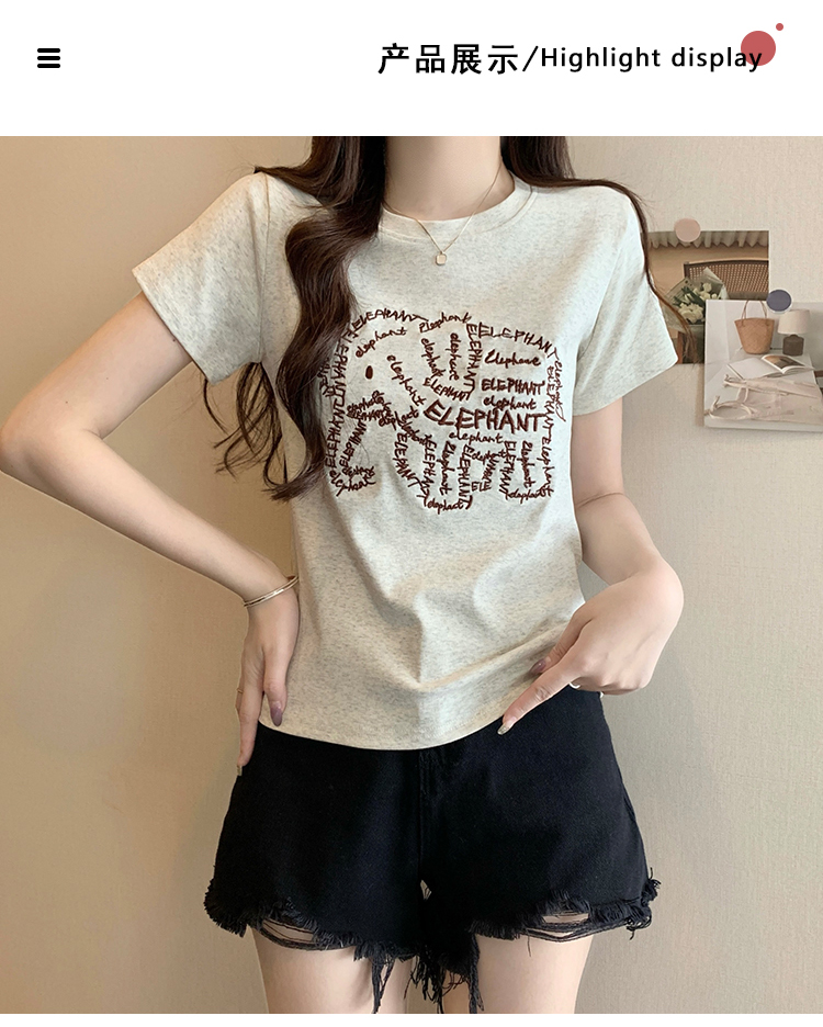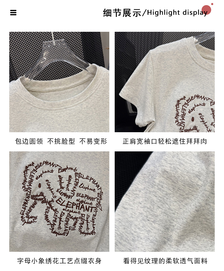 实拍设计感小象绣花短袖t恤女夏季2026新款韩版宽松休闲半袖上衣