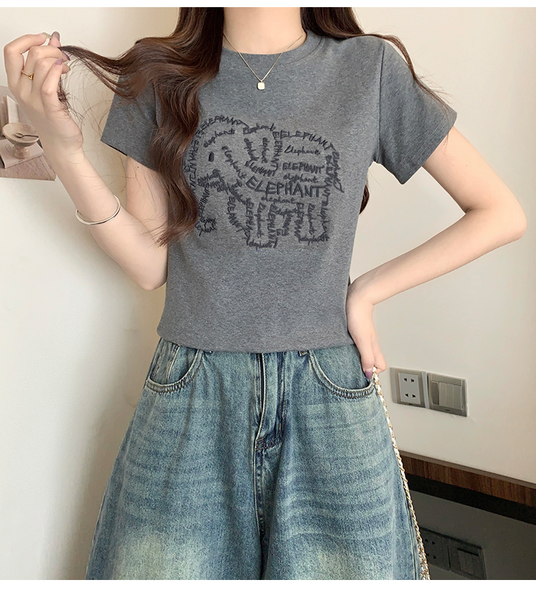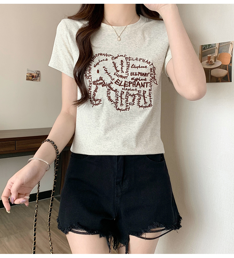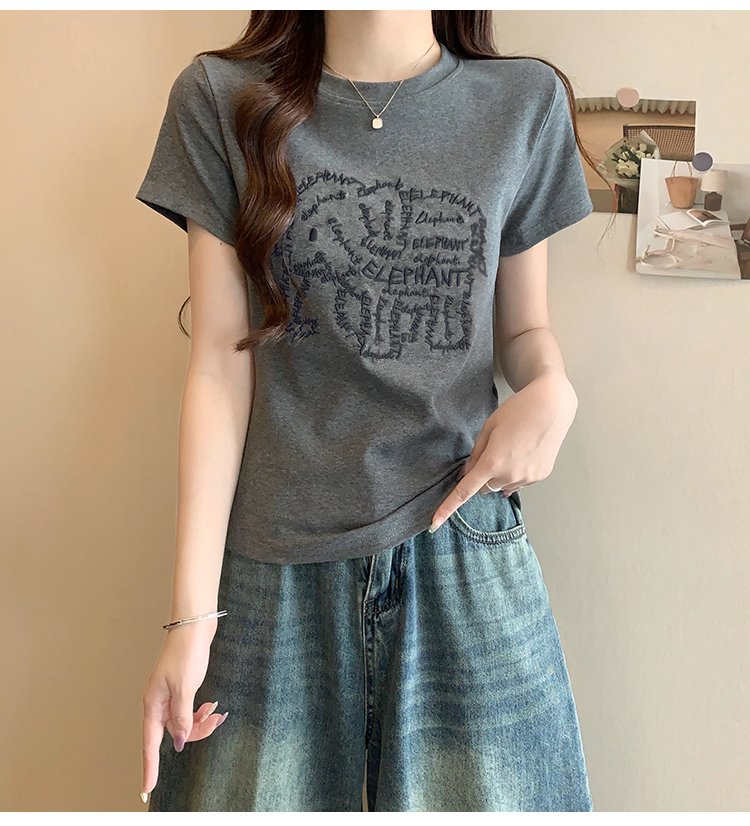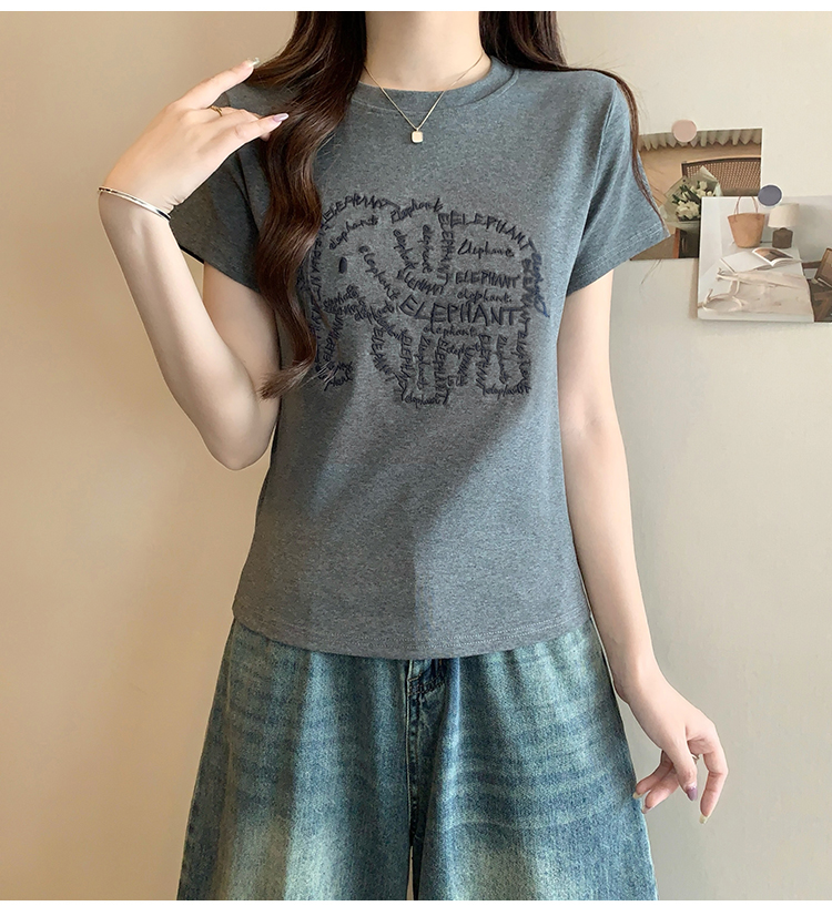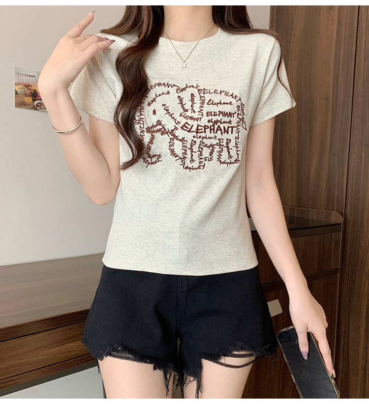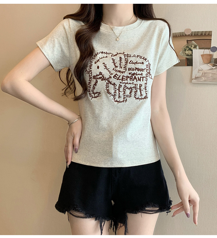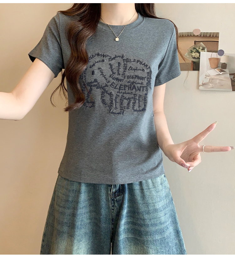 实拍设计感小象绣花短袖t恤女夏季2026新款韩版宽松休闲半袖上衣