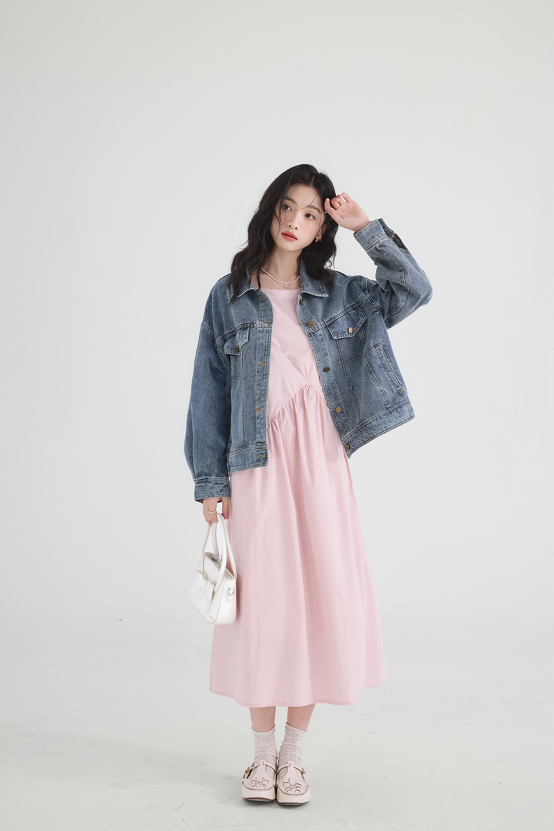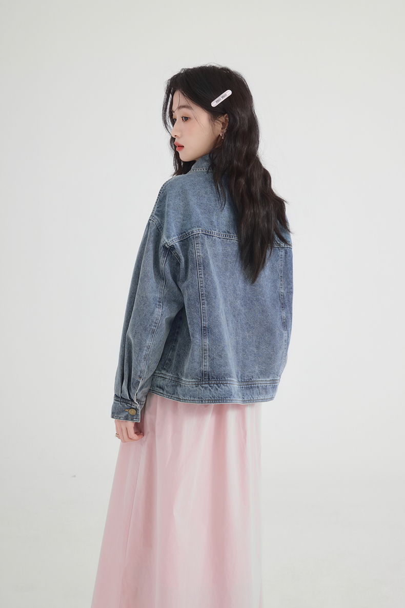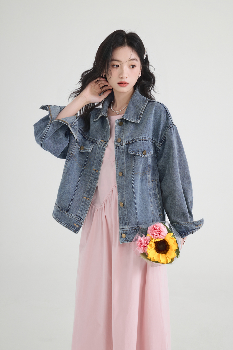 实拍摩登复古牛仔外套女2026年春季新款小个子短款宽松夹克上衣