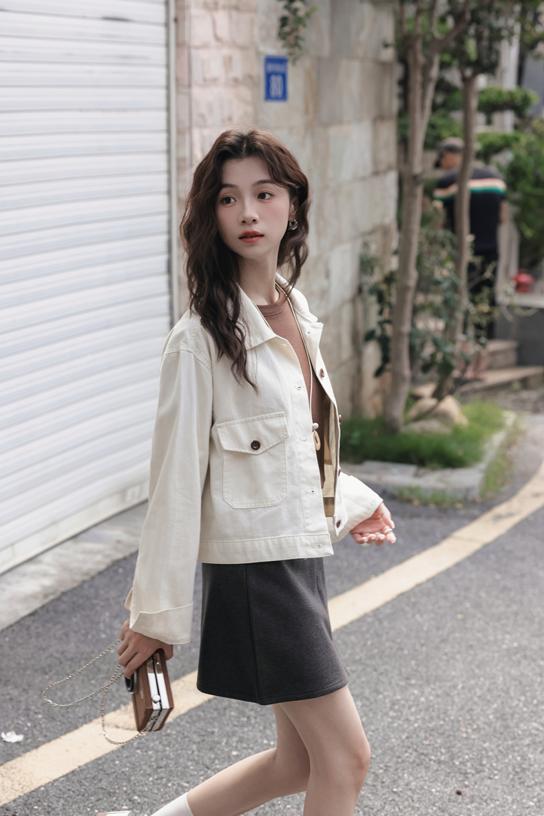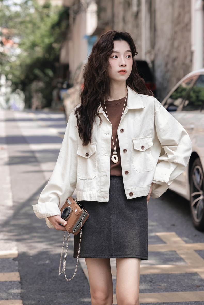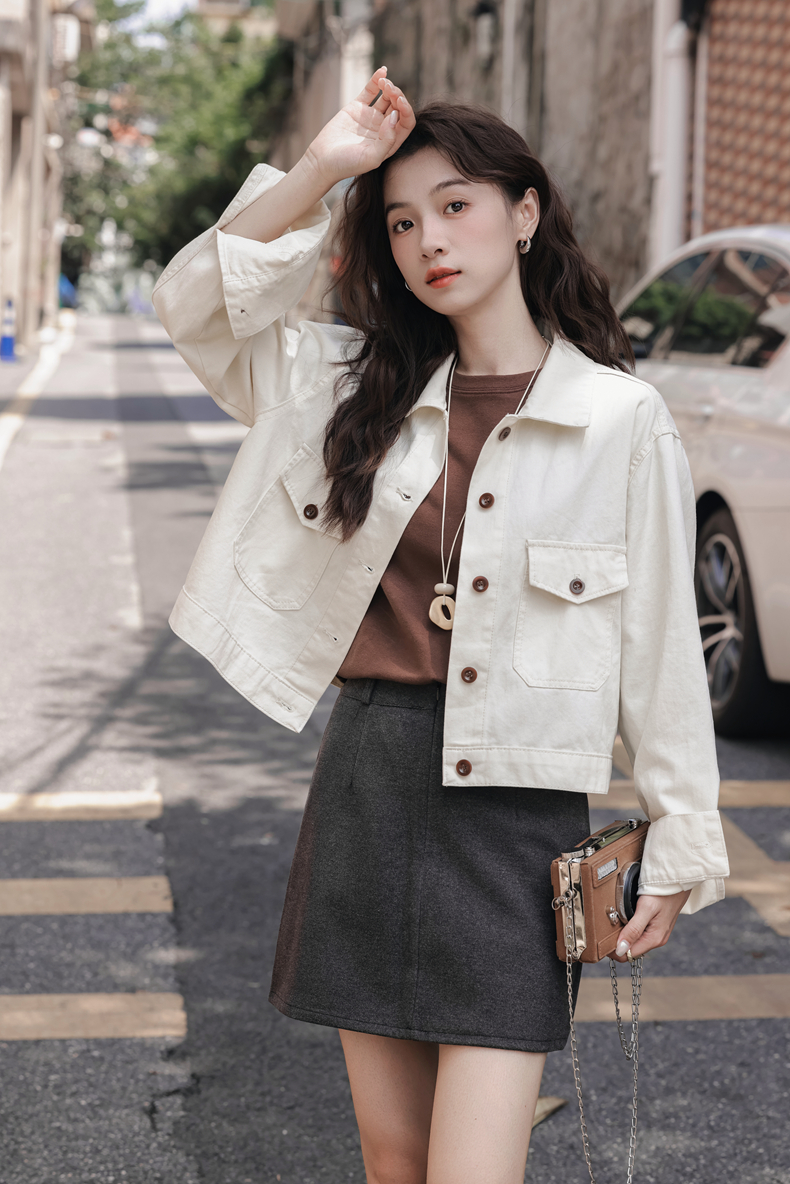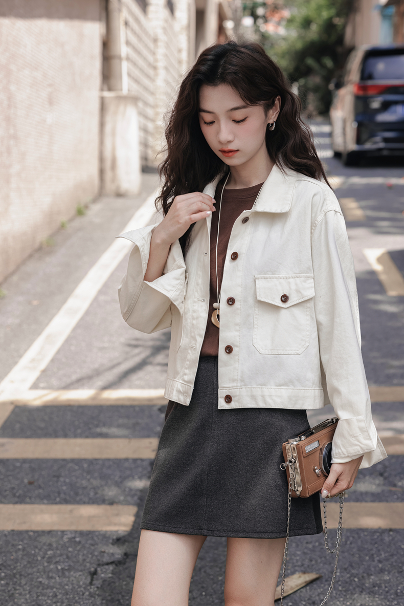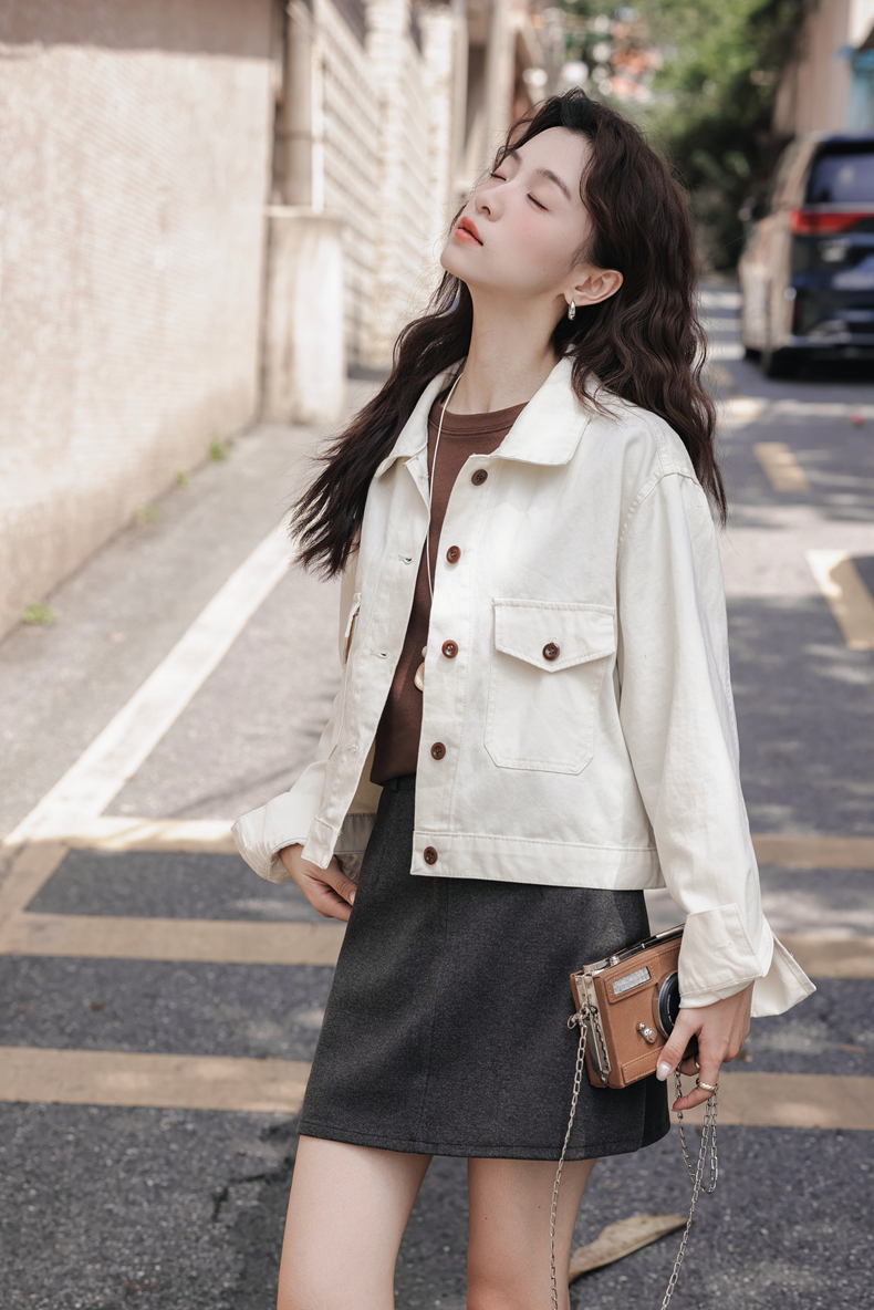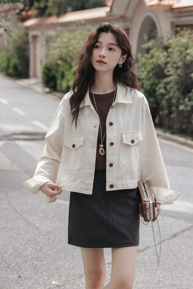 2026春季新款韩版宽松短款翻领工装牛仔外套女百搭显瘦小个子上衣