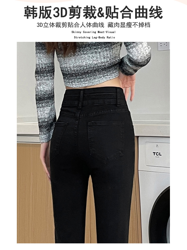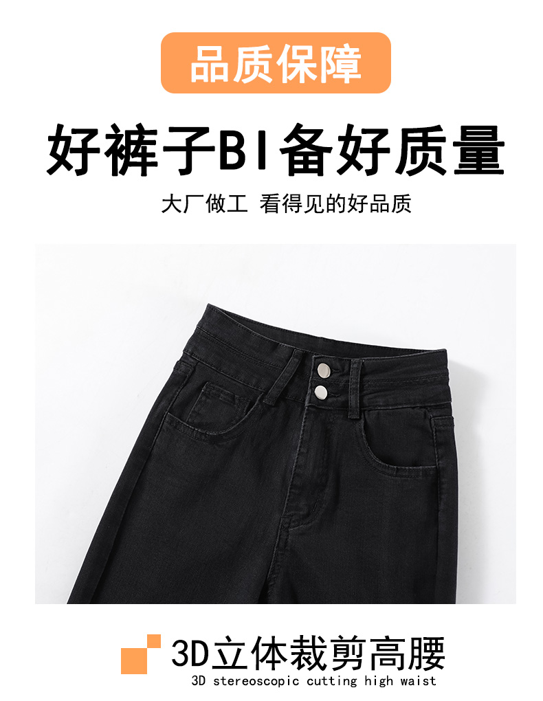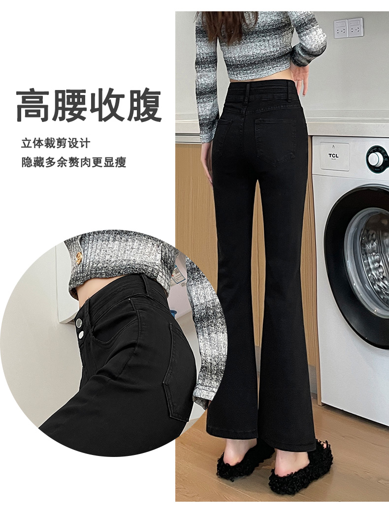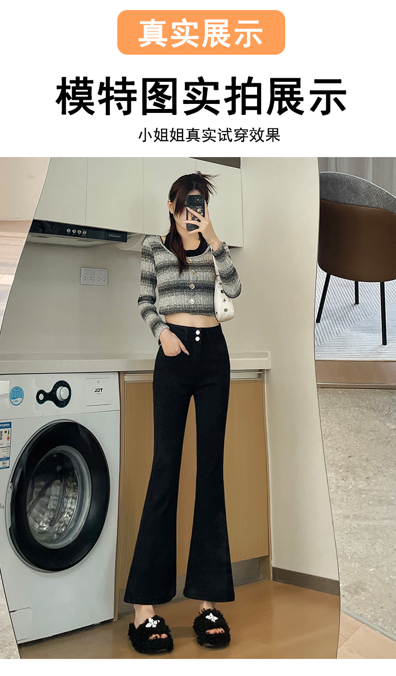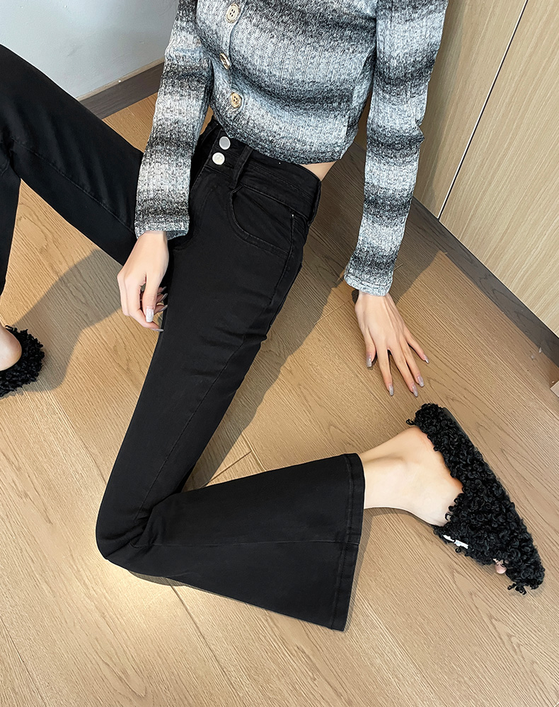 双排扣水泥灰微喇牛仔裤女修身显瘦春秋秋装复古怀旧收腹提臀马蹄