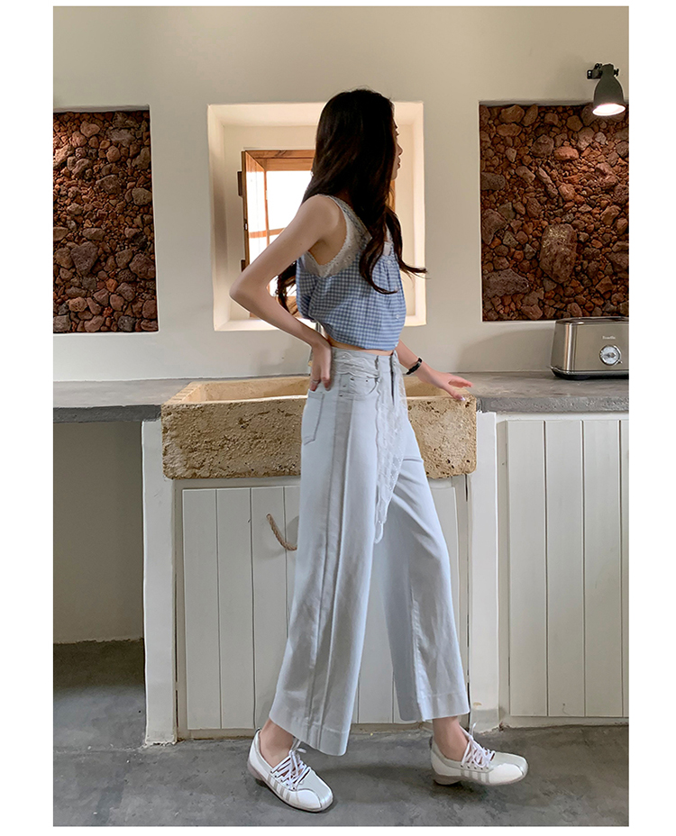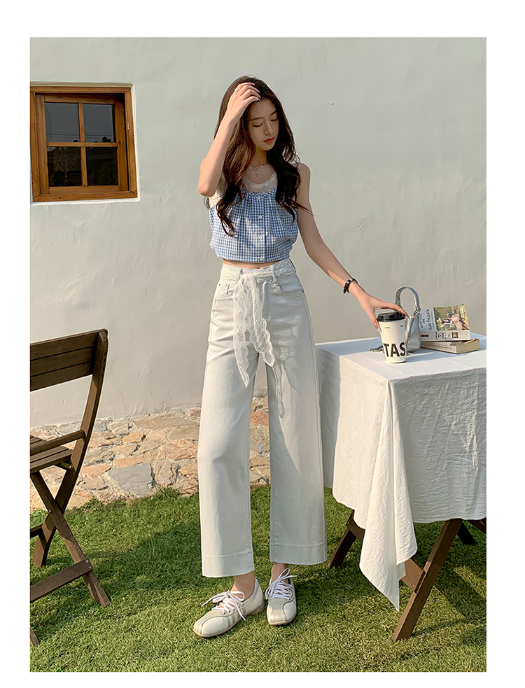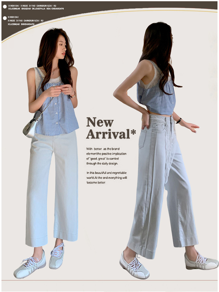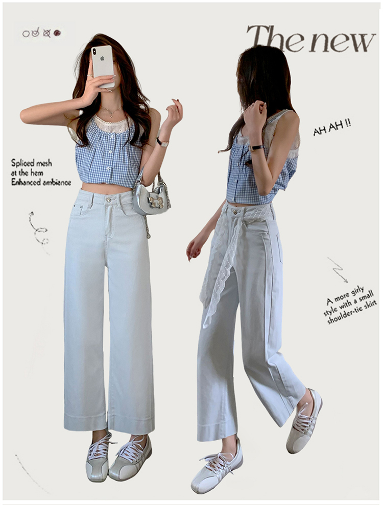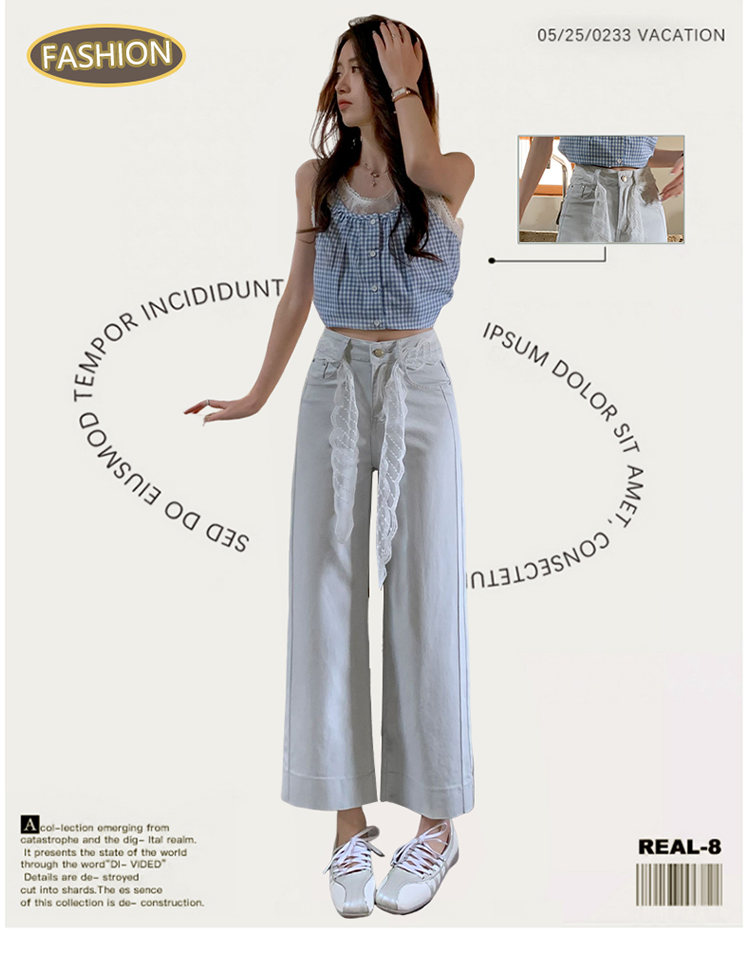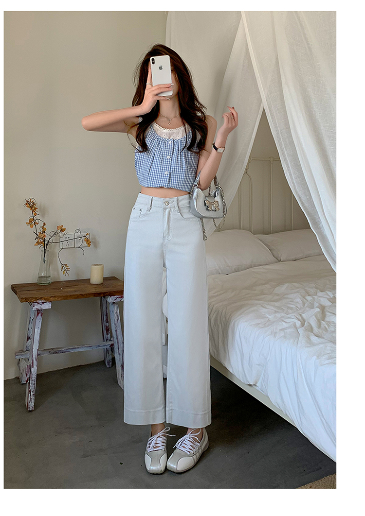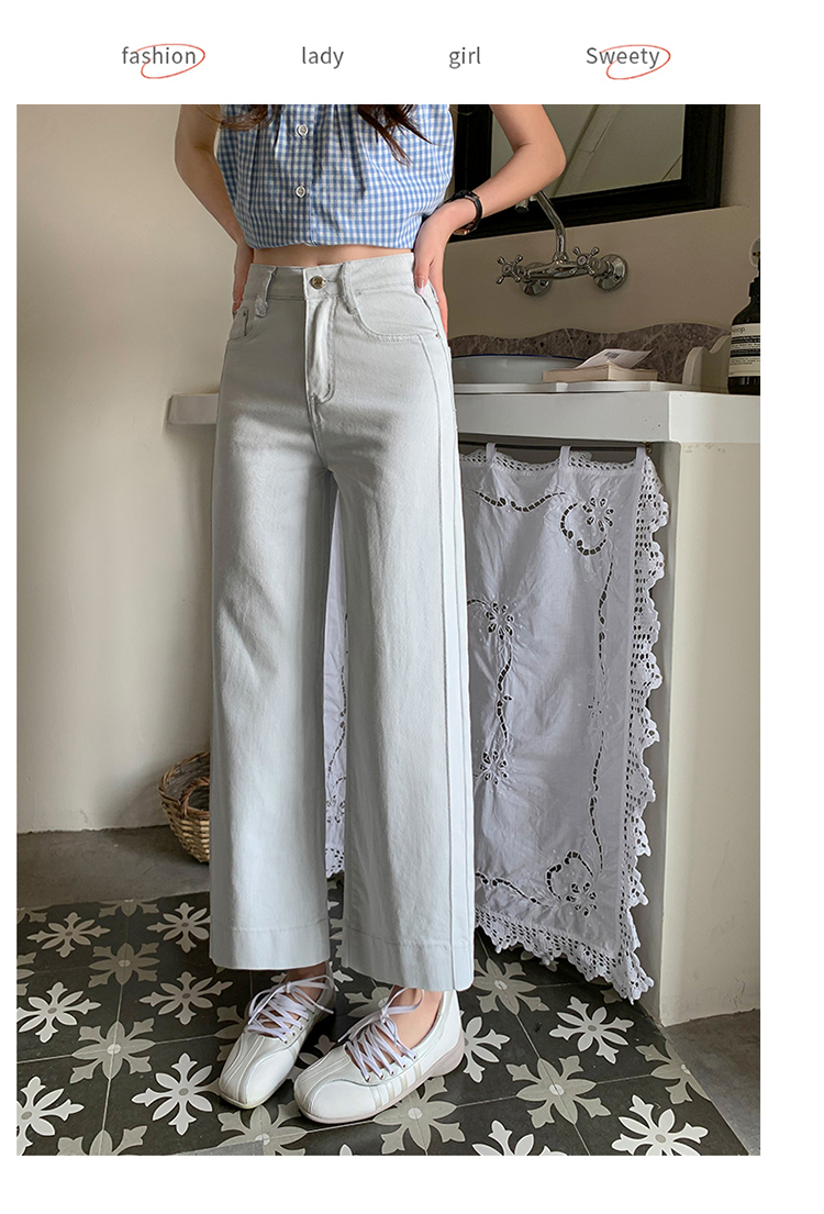 高腰直筒牛仔裤女显瘦宽松2026春夏新款九分小个子白色法棍烟管裤