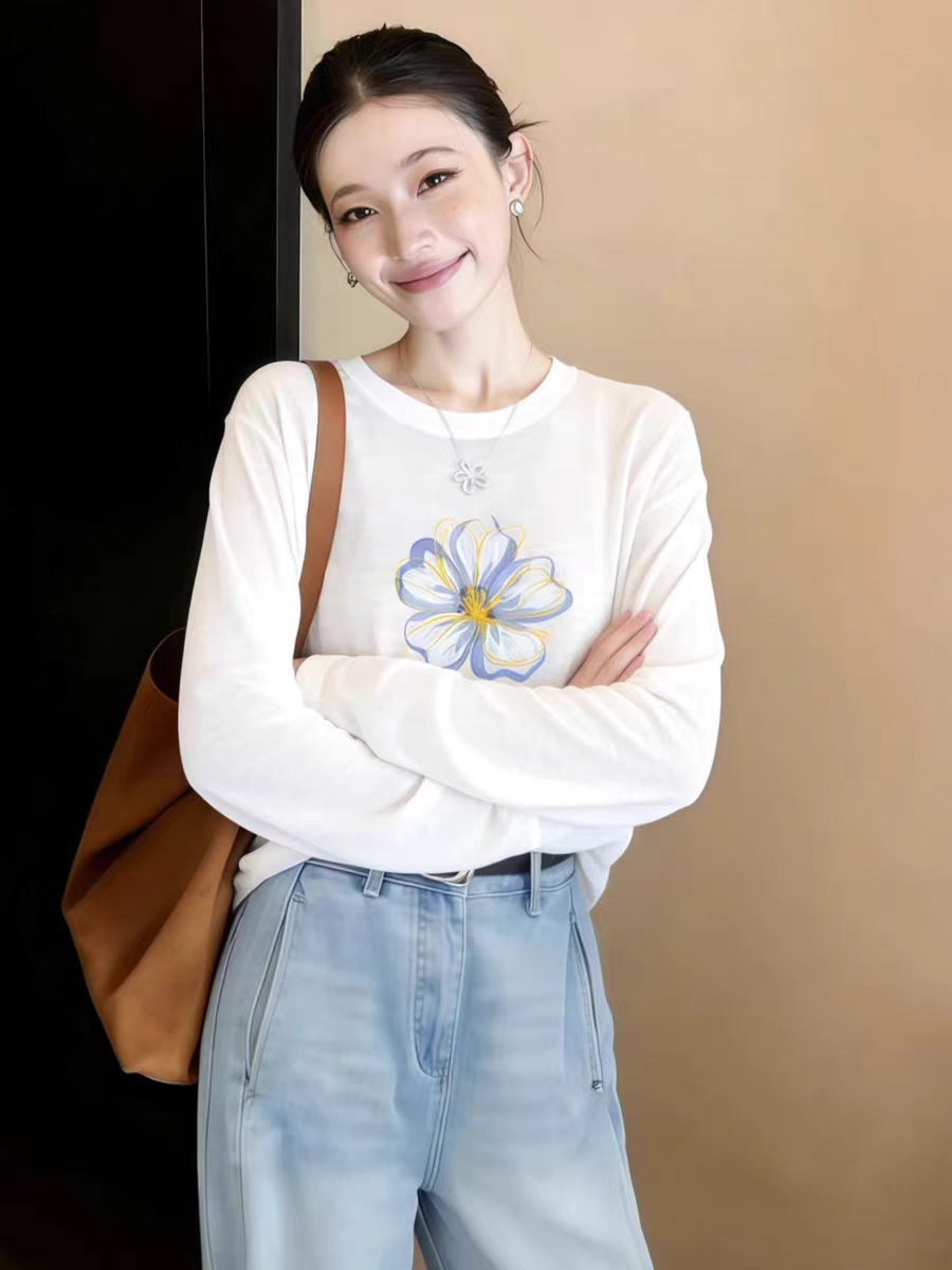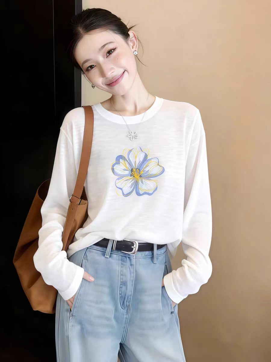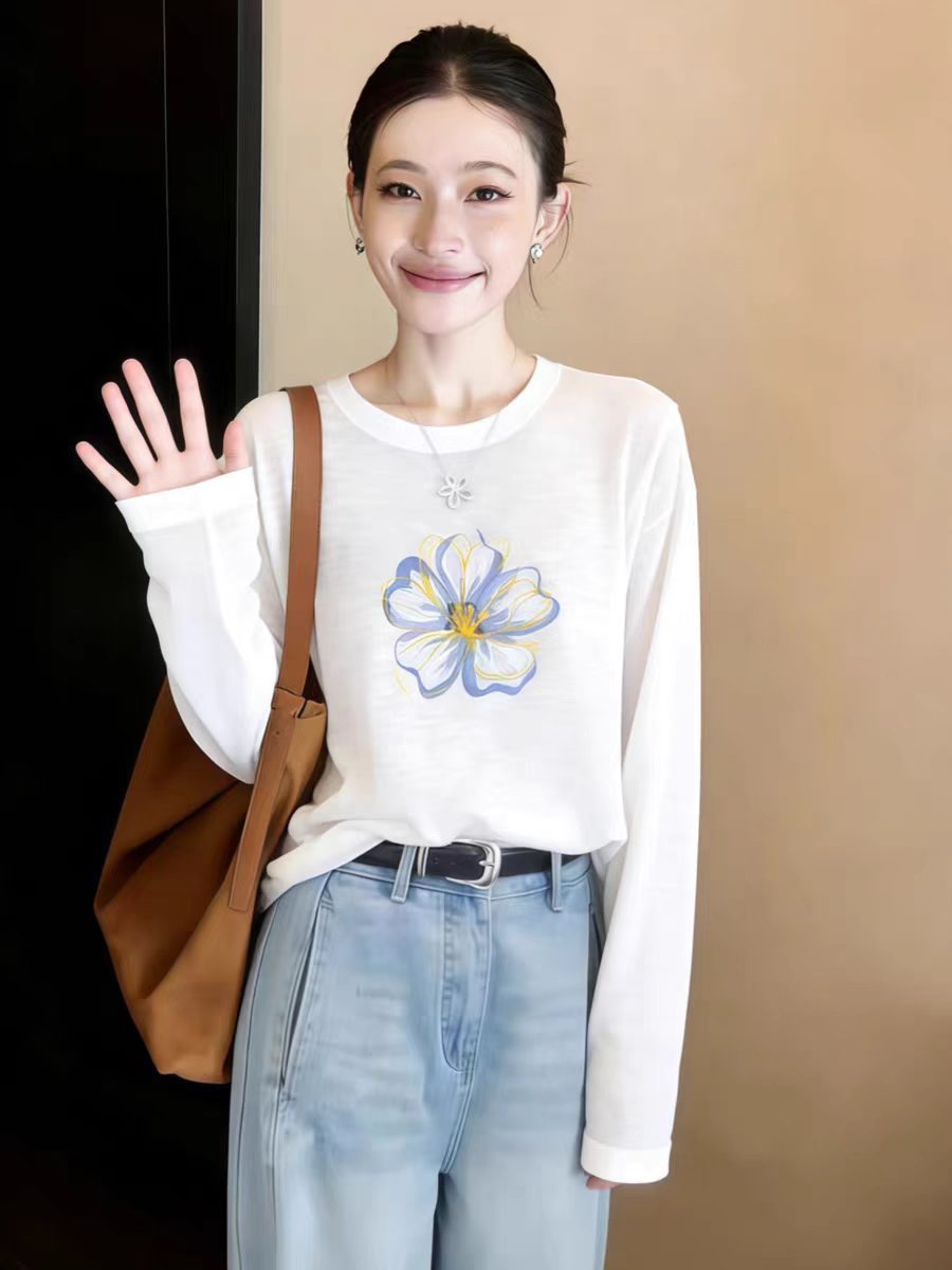 白色长袖t恤女2026新款爆款早春季独特漂亮巨好看防晒罩衫上衣服