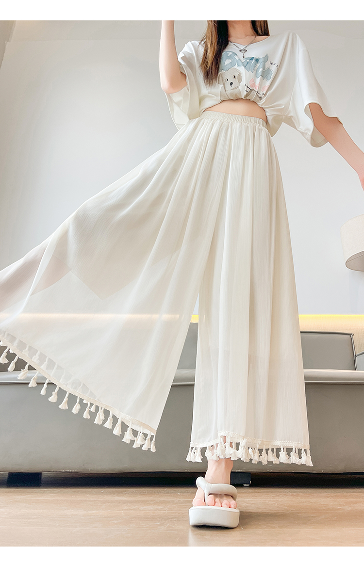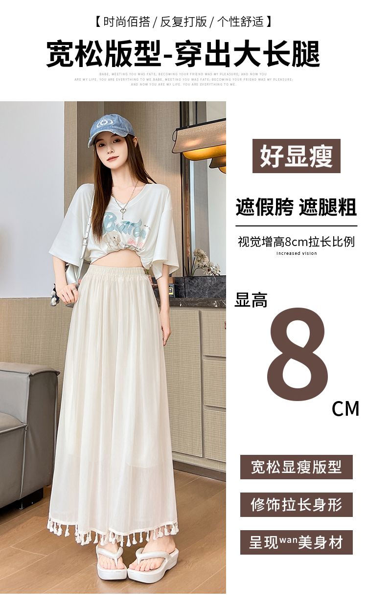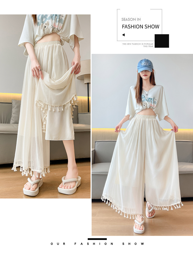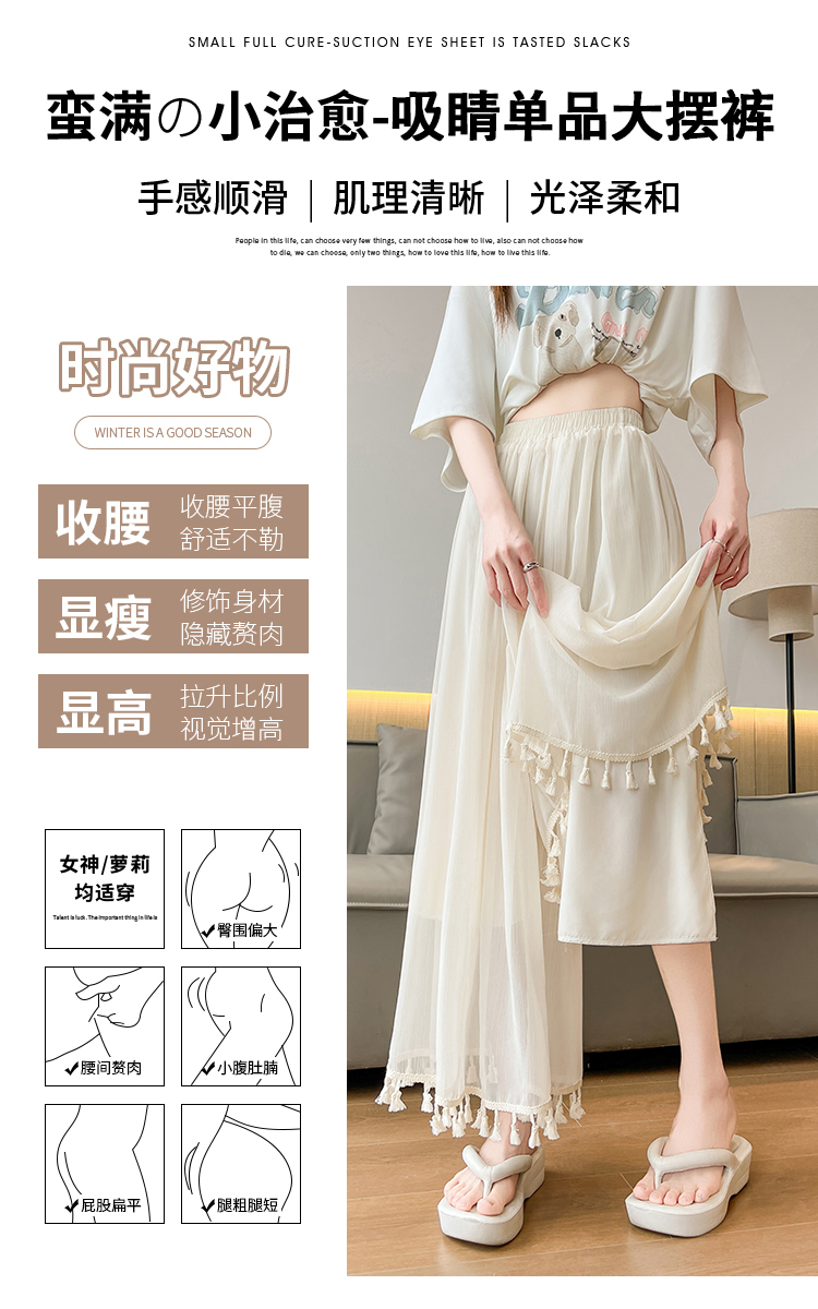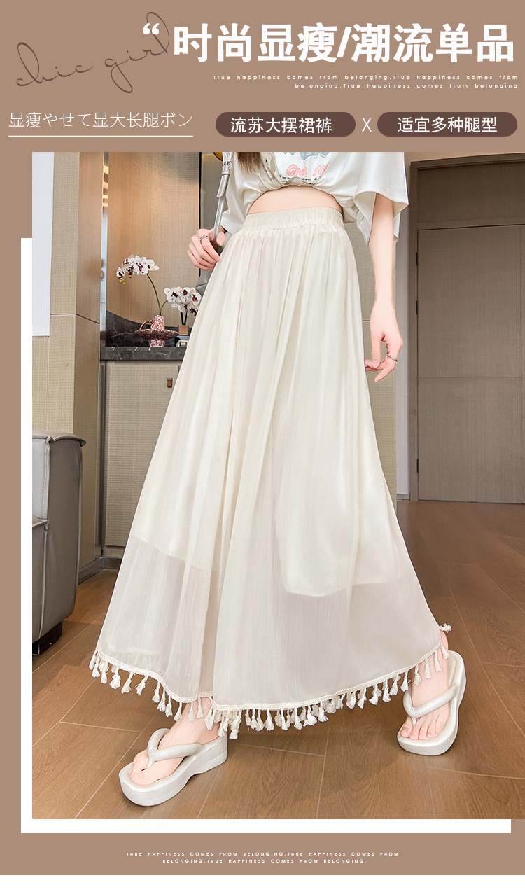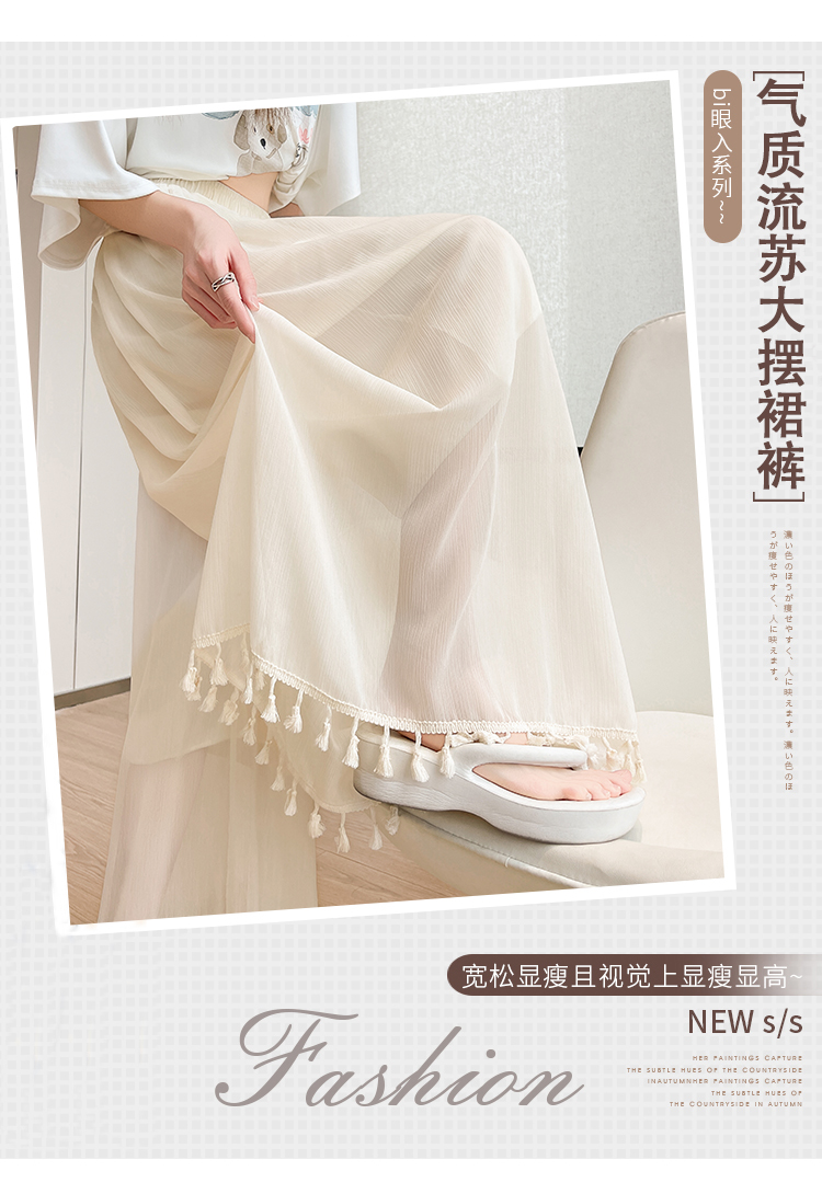 实拍旗袍内搭衬裤女夏季温柔风流苏网纱阔腿裤裙a字垂感大摆裙裤