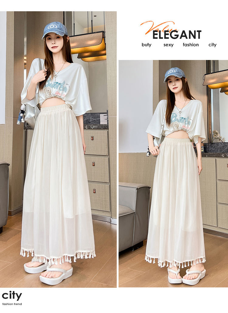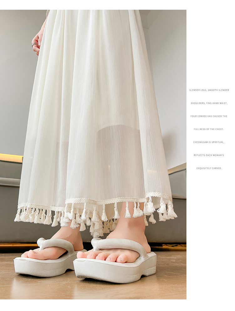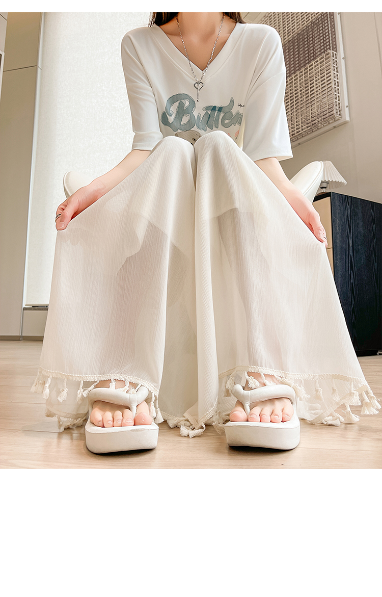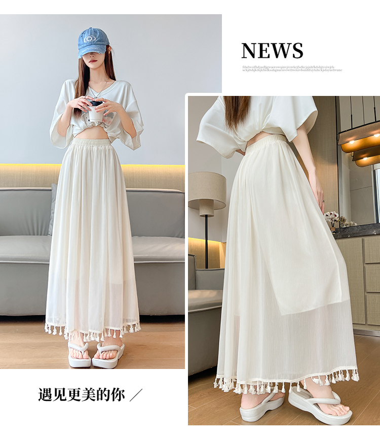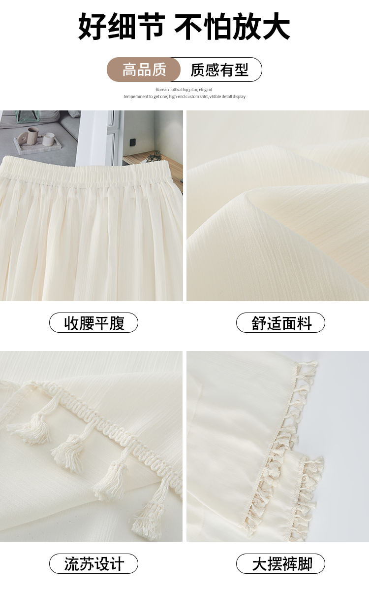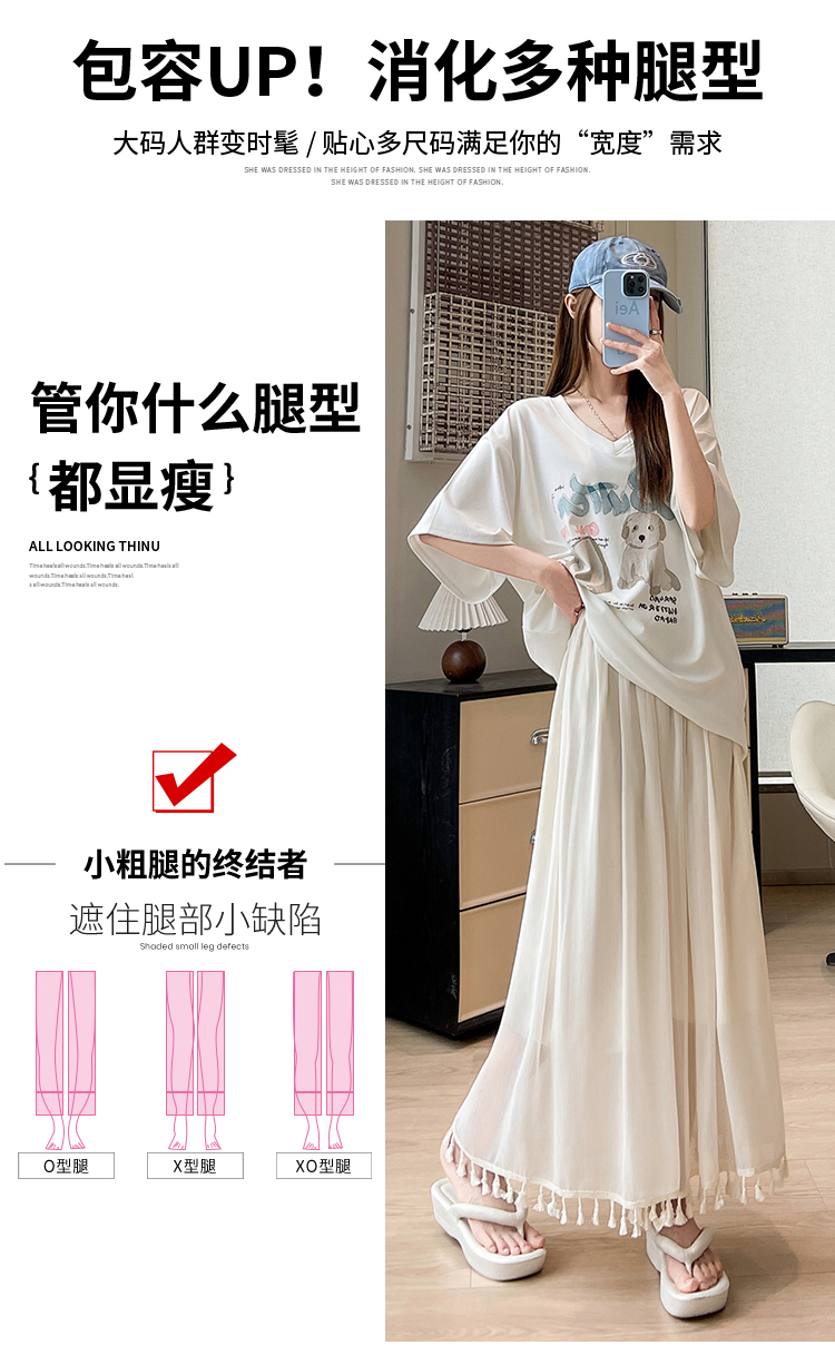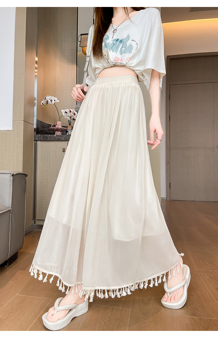 实拍旗袍内搭衬裤女夏季温柔风流苏网纱阔腿裤裙a字垂感大摆裙裤