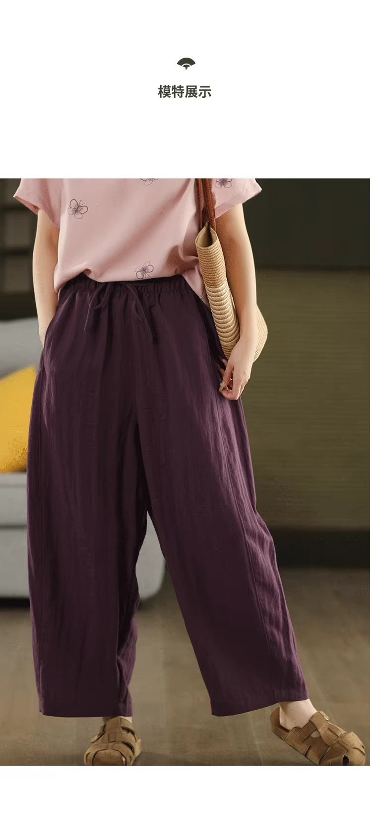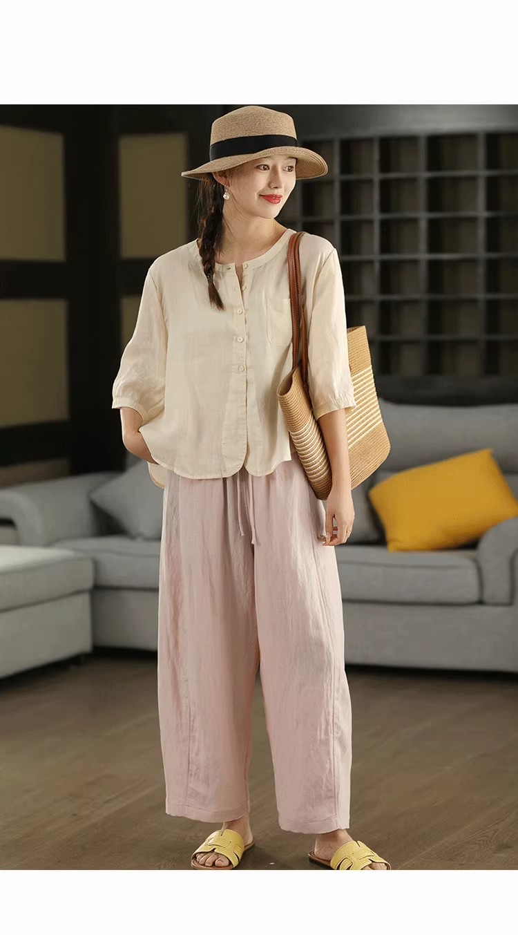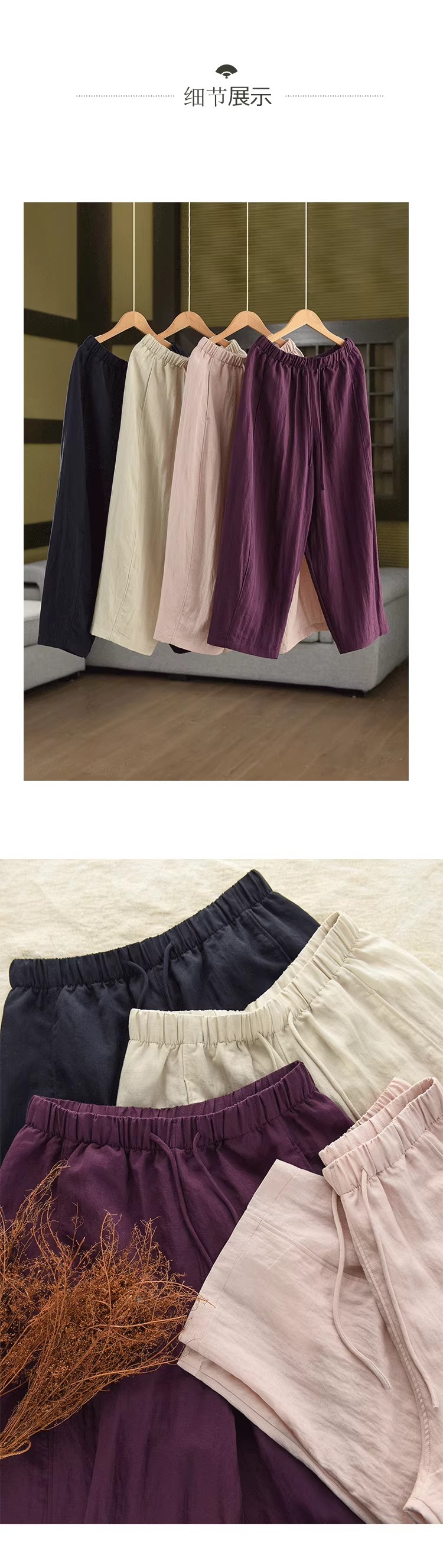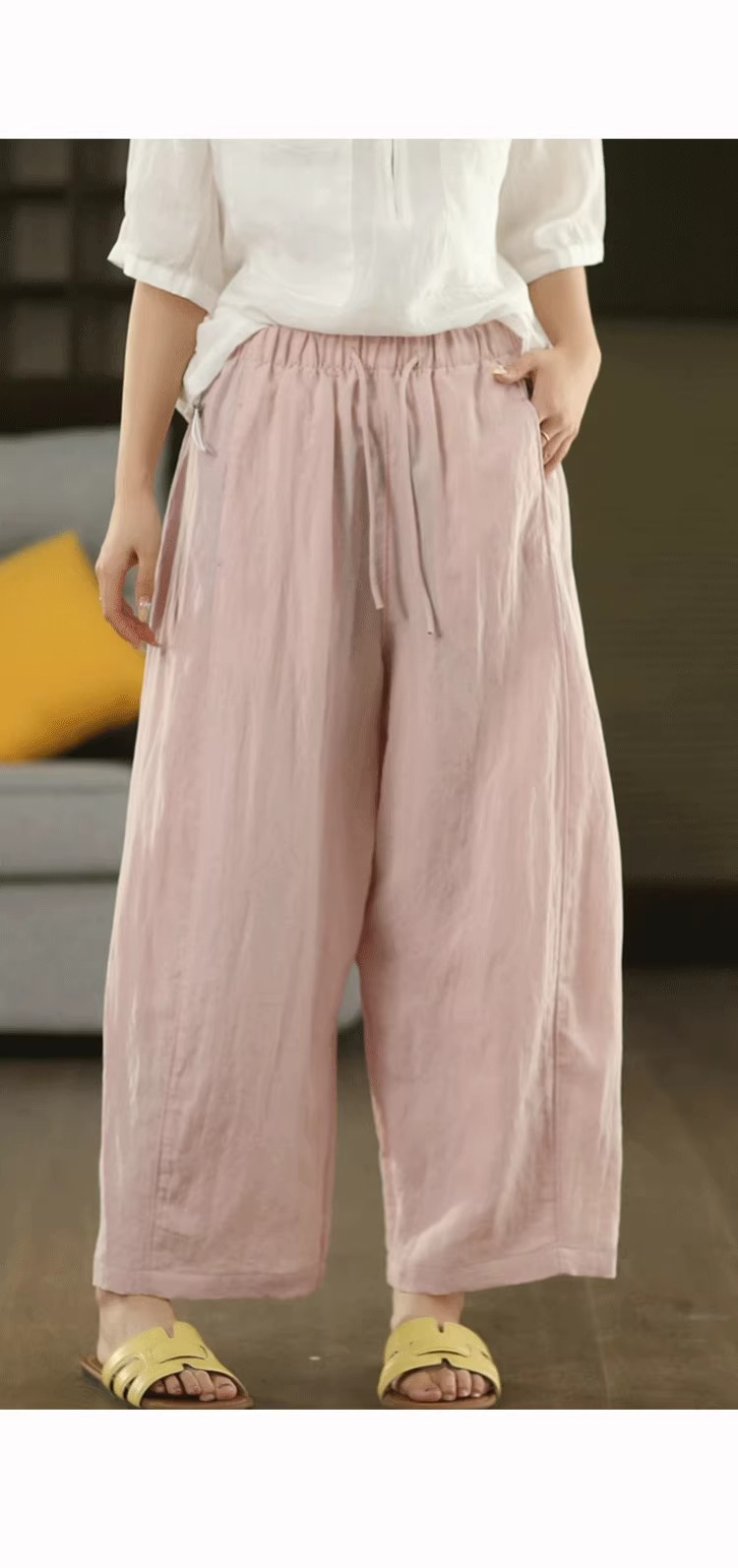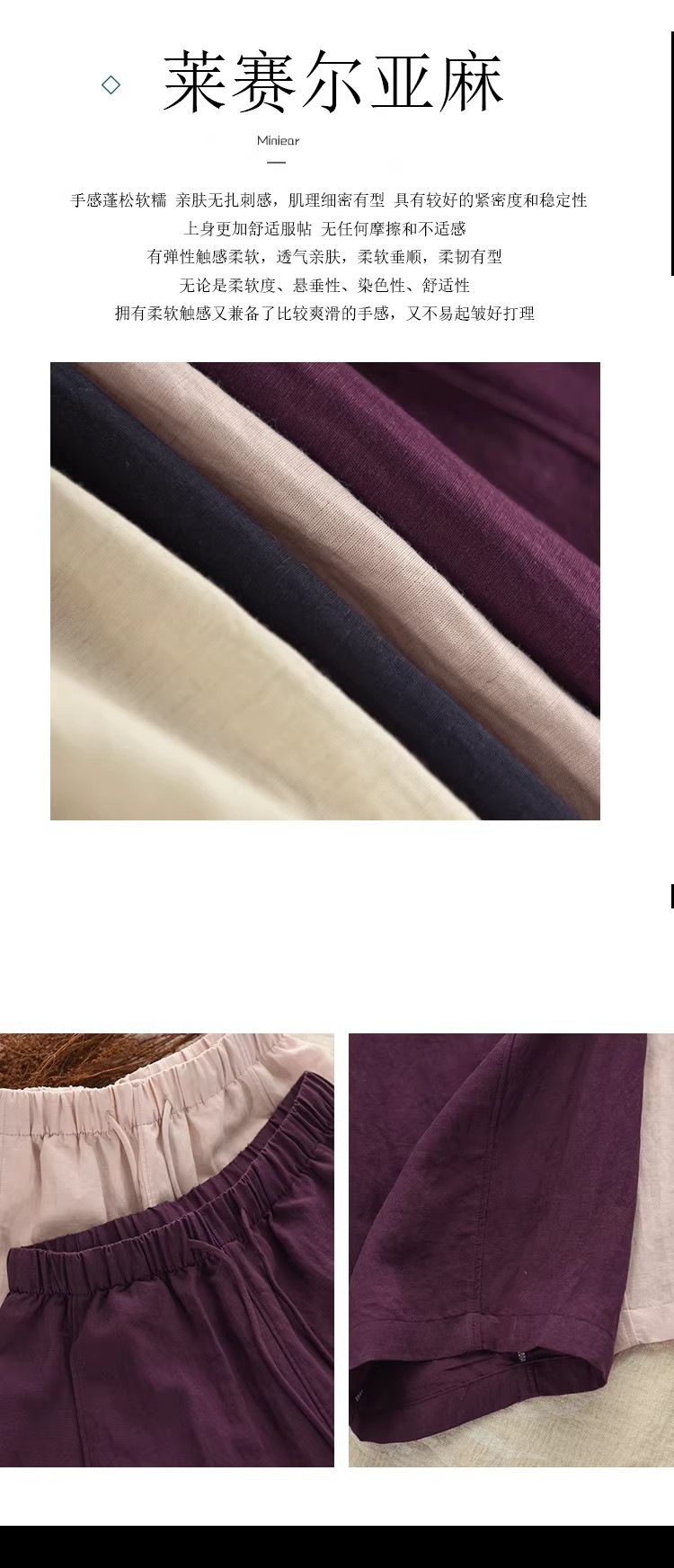 复古莱赛尔亚麻显瘦哈伦裤松紧腰休闲裤百搭宽松文艺长裤