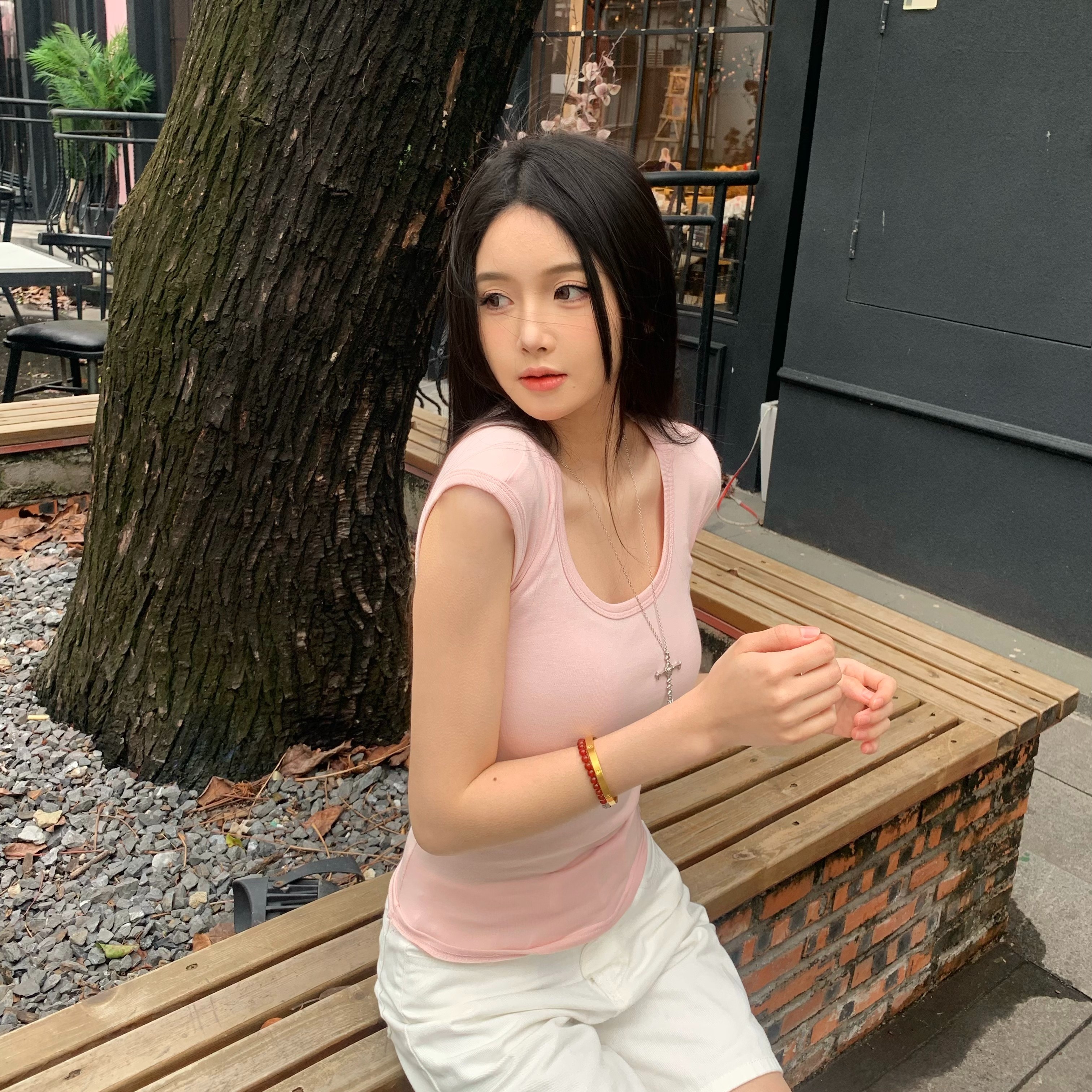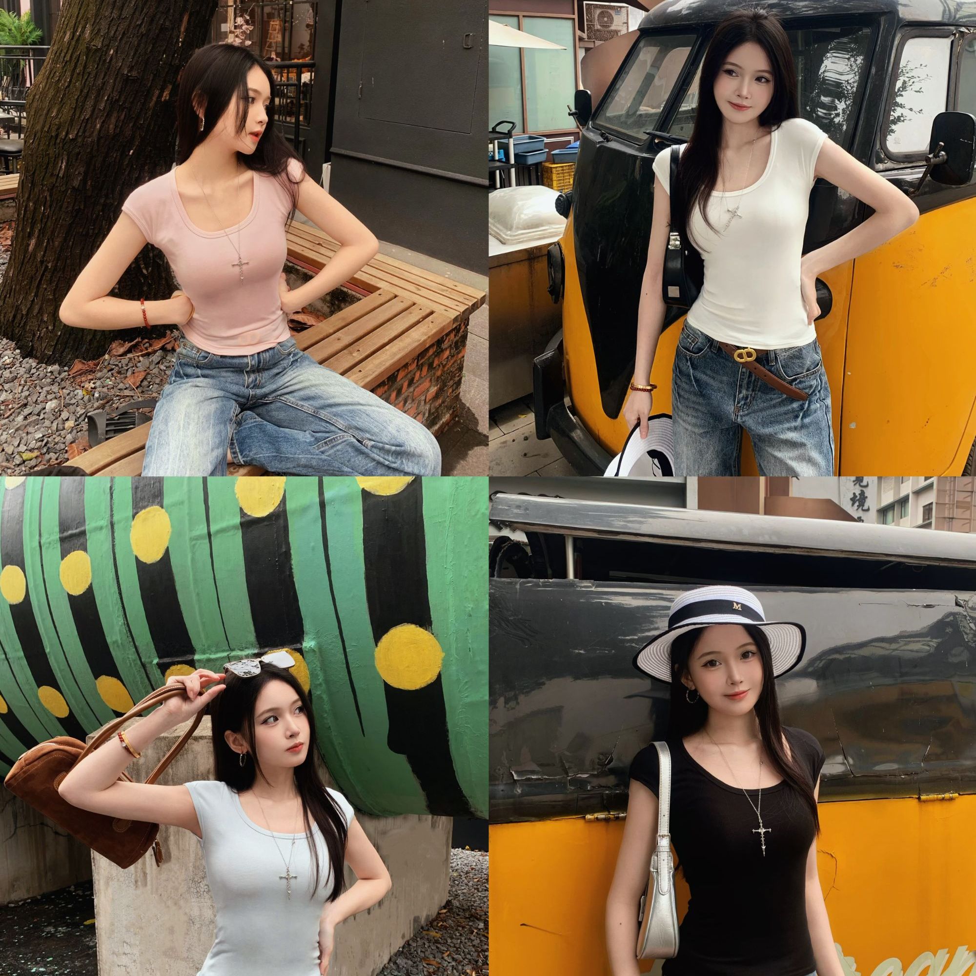 好身材穿出来五色U领美式t恤版型王者tee设计修身显瘦百搭T恤