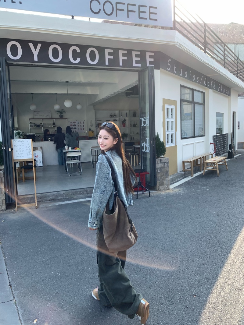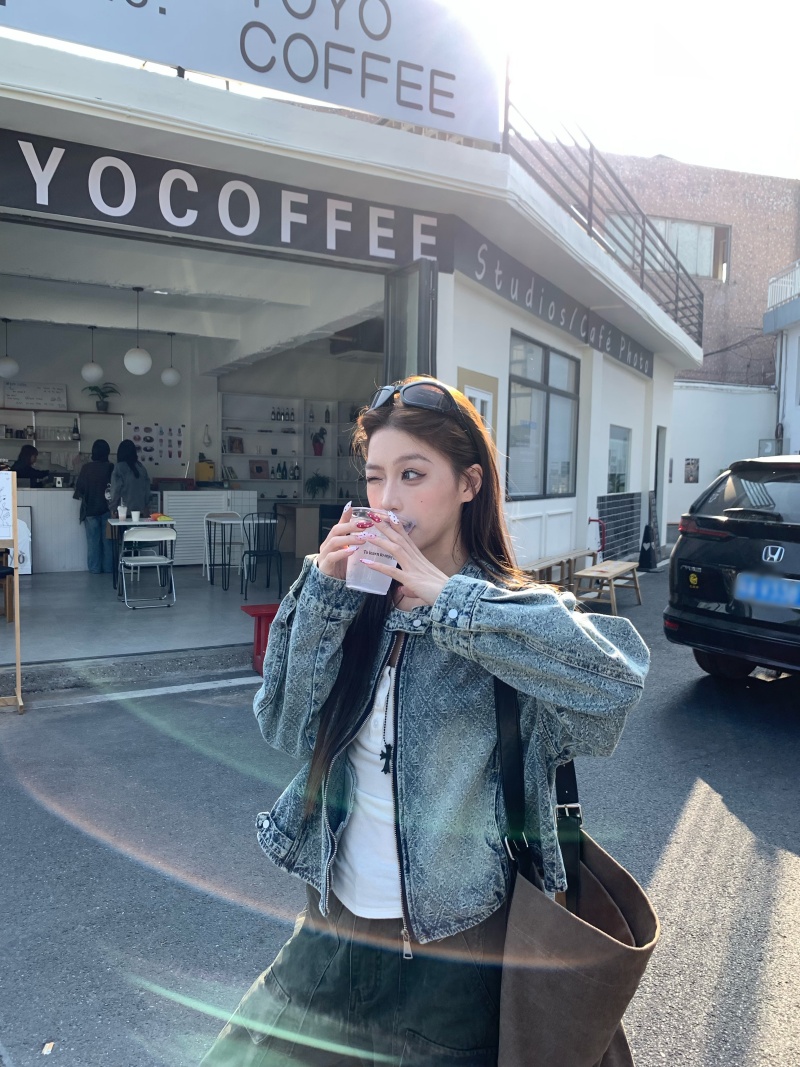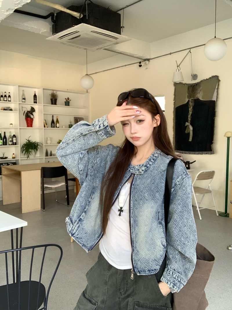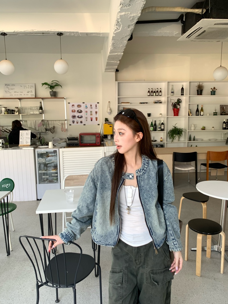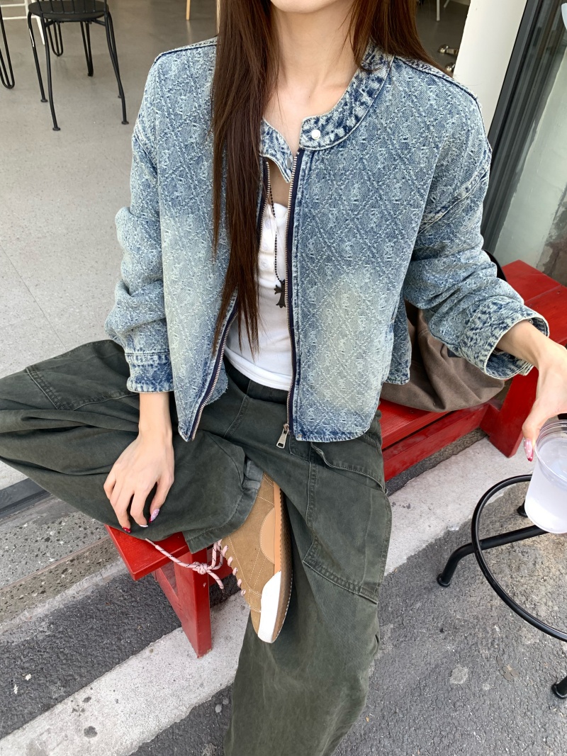 实拍实价 2026春季新款美式复古设计感提花牛仔外套长袖短款夹克