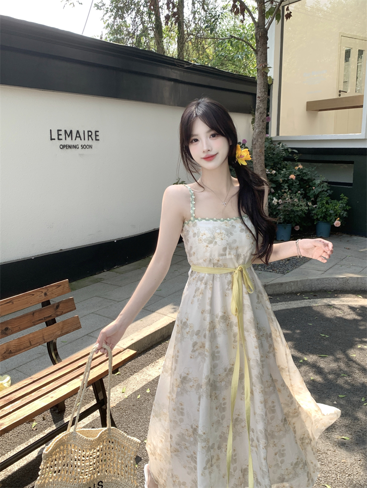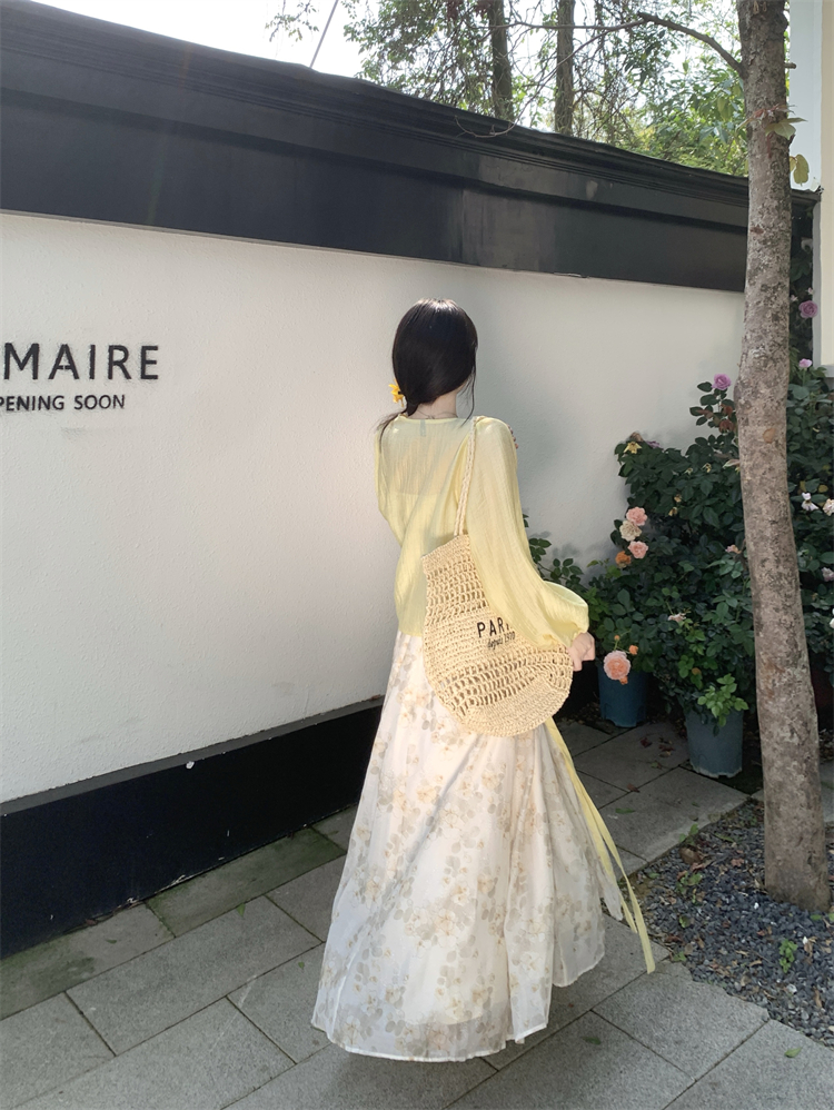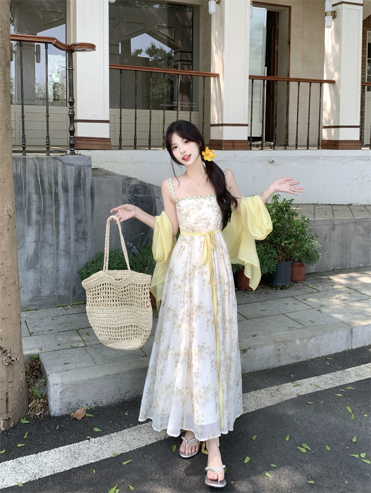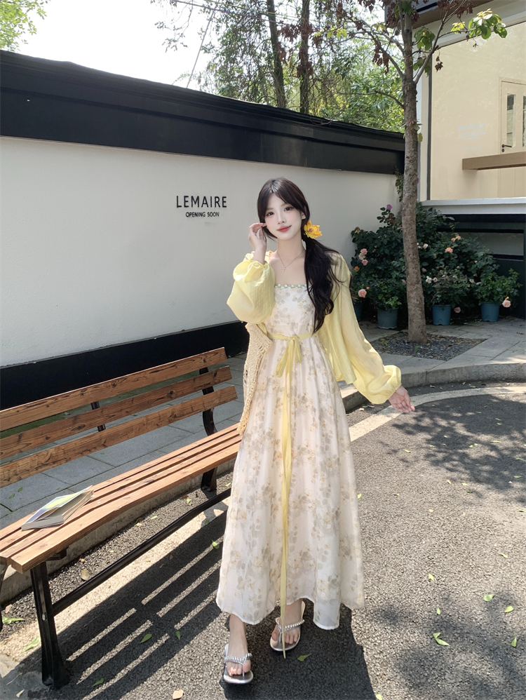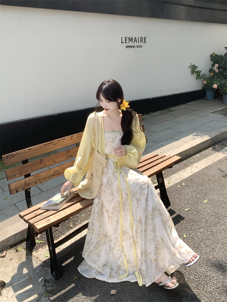 实拍大码女装超火套装女温柔风减龄显瘦开衫碎花吊带连衣裙两件套
