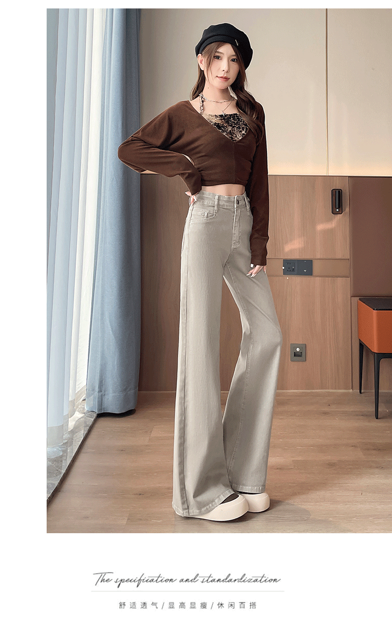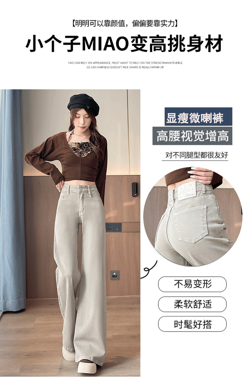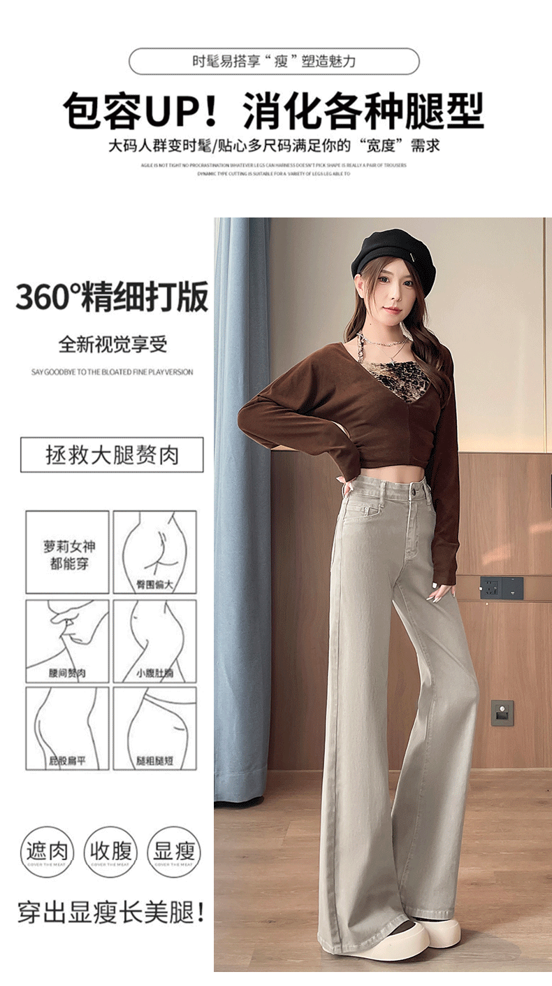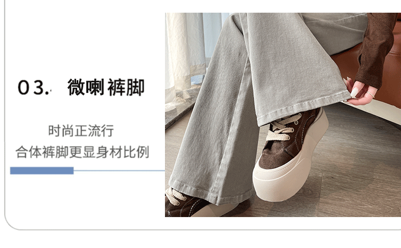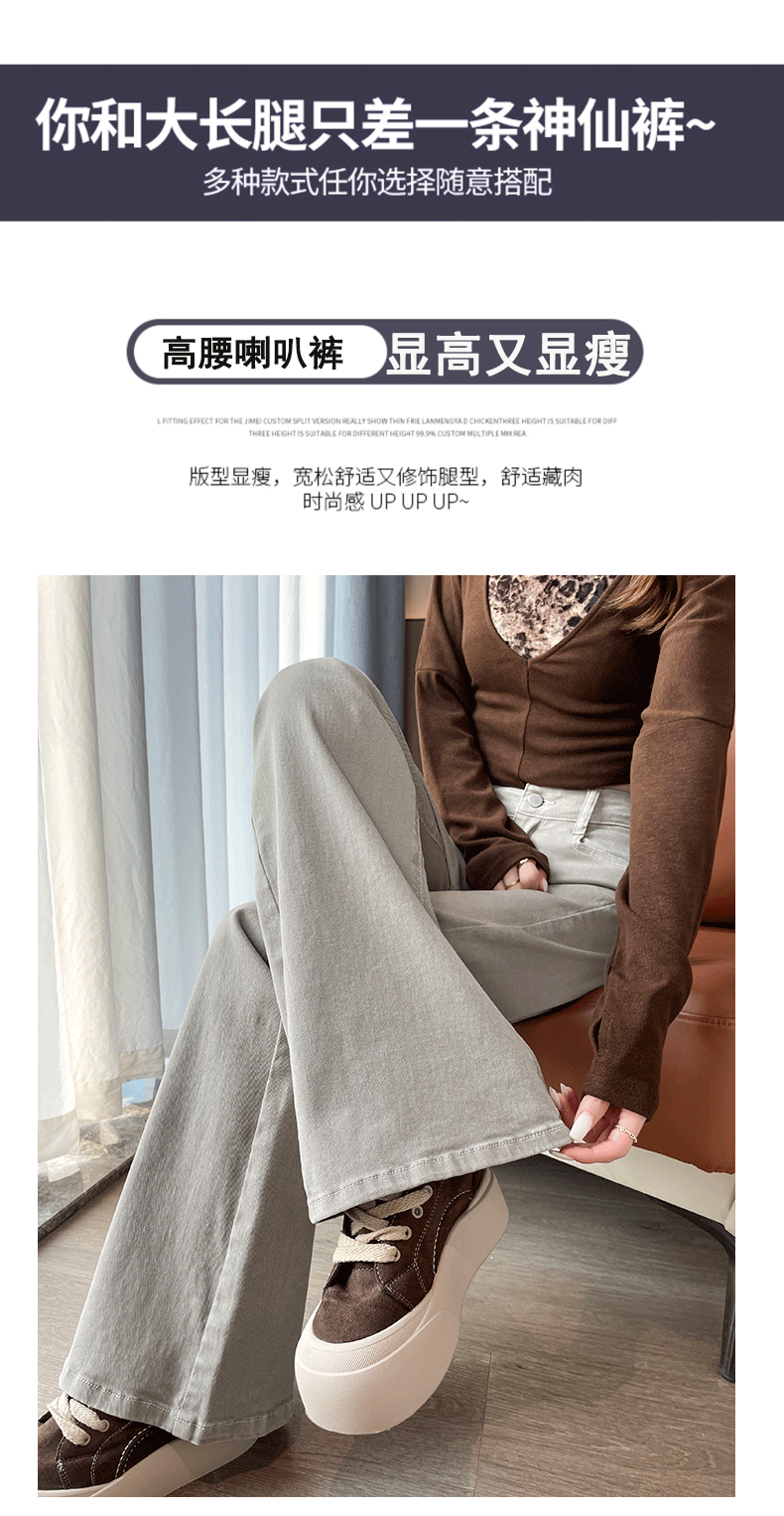 灰白色阔腿牛仔裤女春秋2026年新款时尚微喇裤子女显瘦高腰喇叭裤