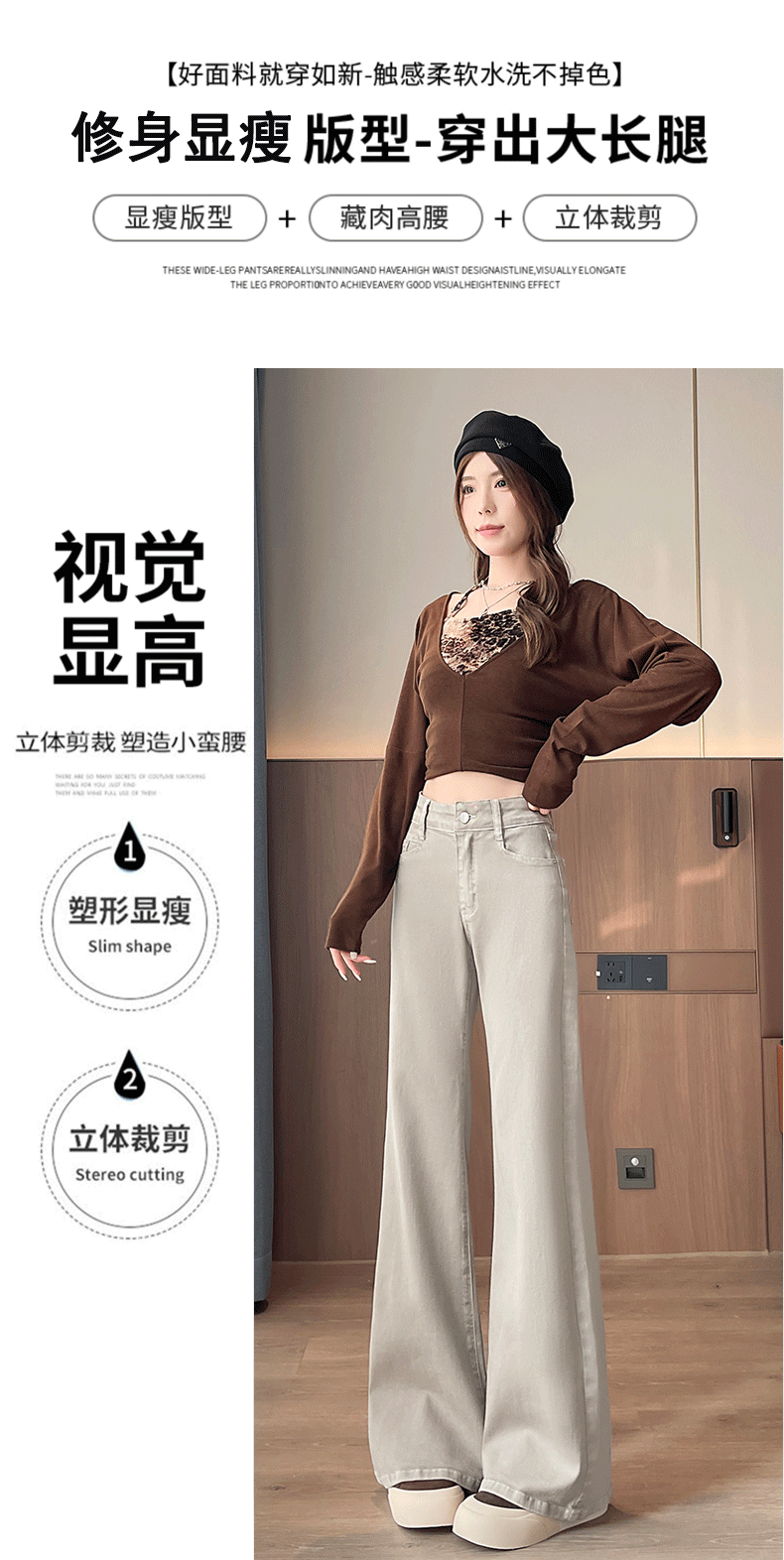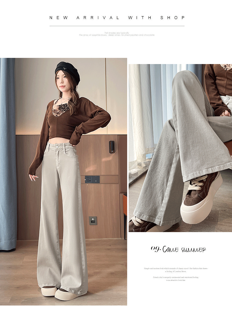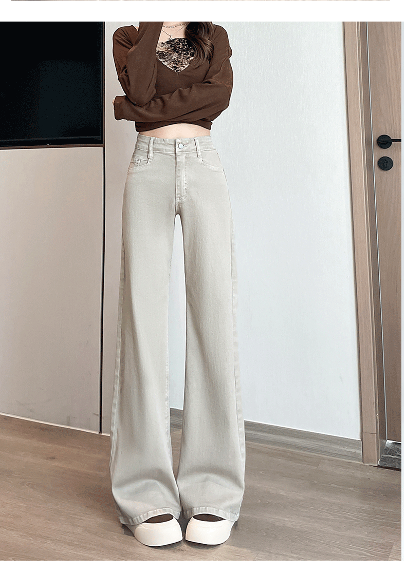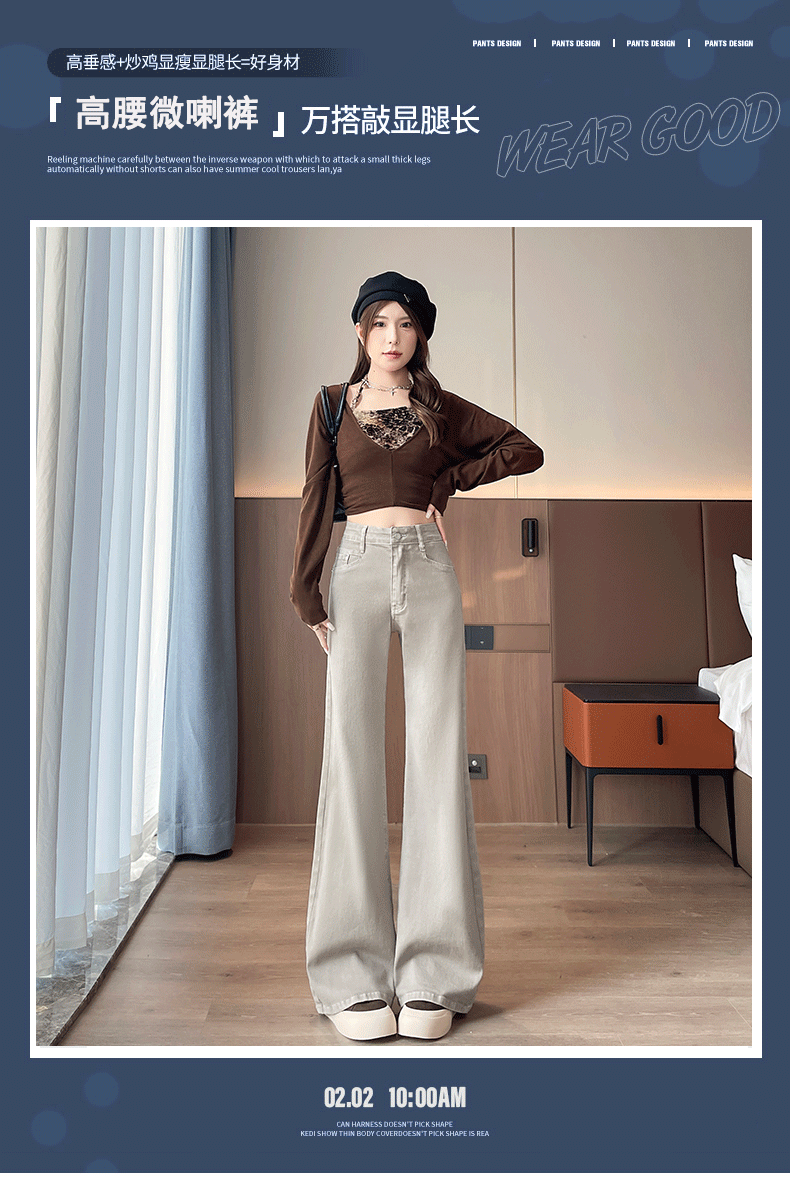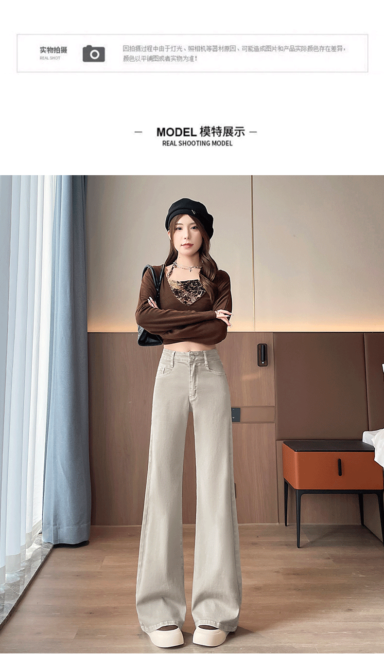 灰白色阔腿牛仔裤女春秋2026年新款时尚微喇裤子女显瘦高腰喇叭裤