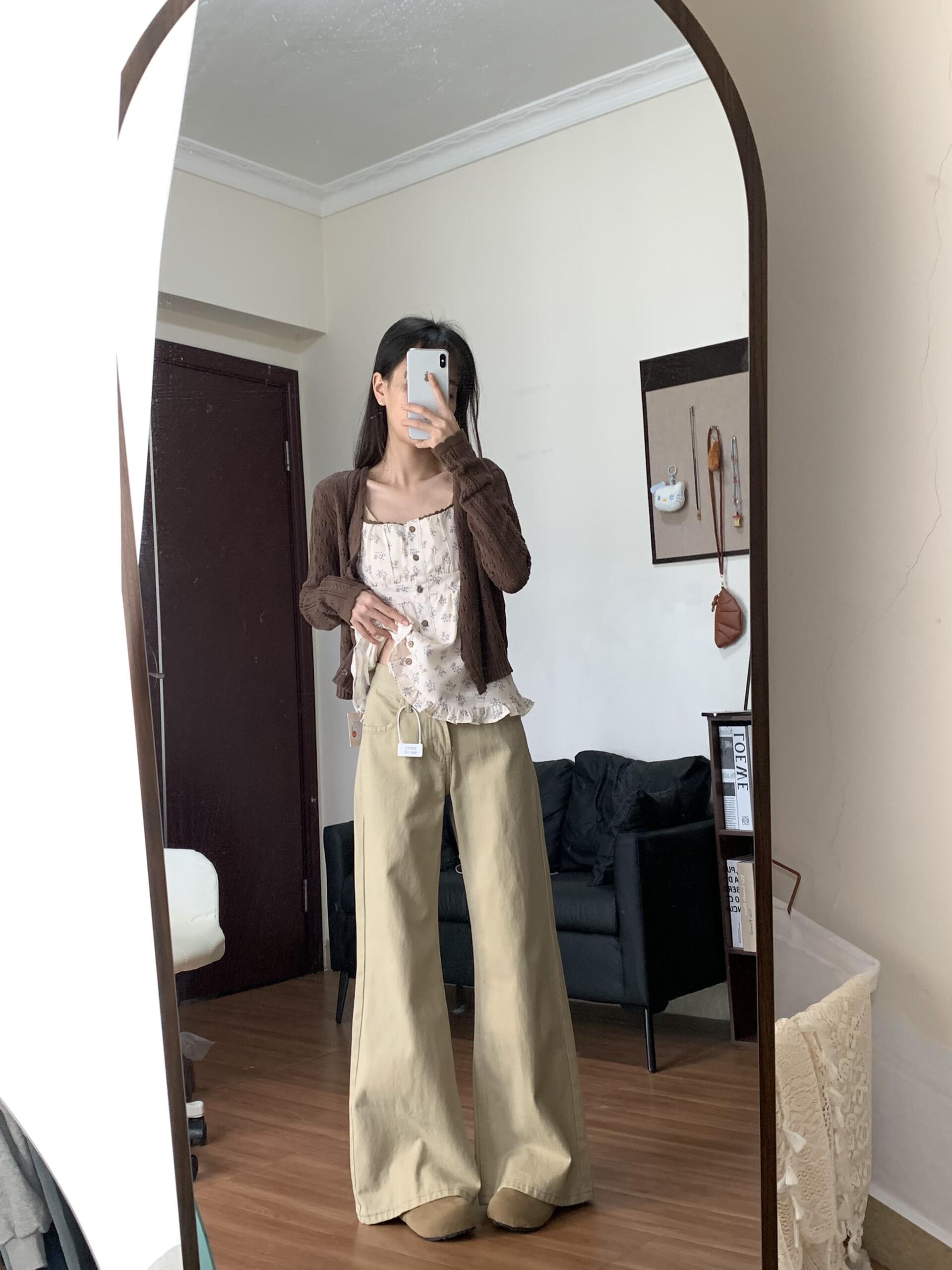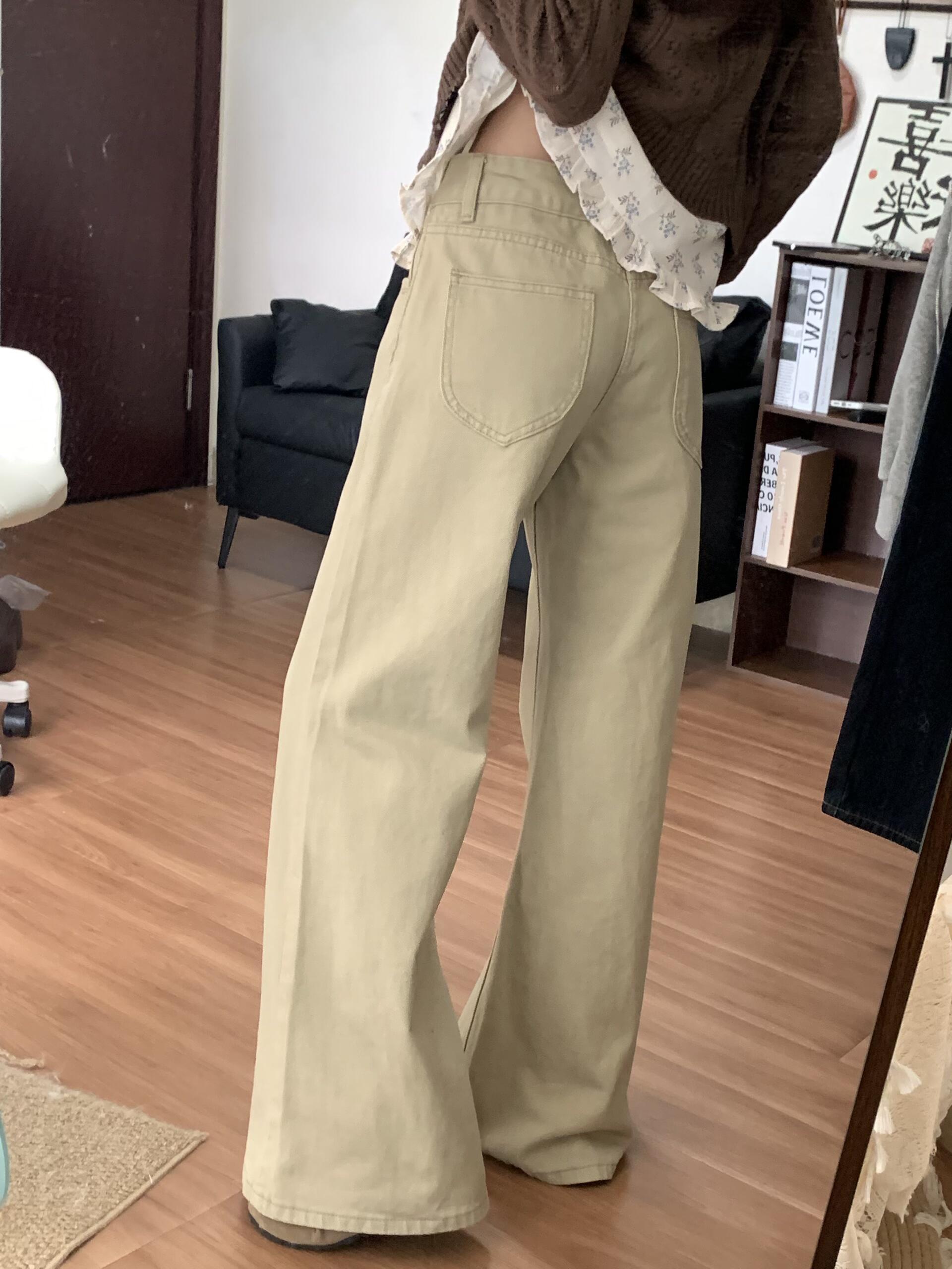 卡其色低腰微喇牛仔裤女春季韩版新款宽松直筒显瘦垂感阔腿拖地裤