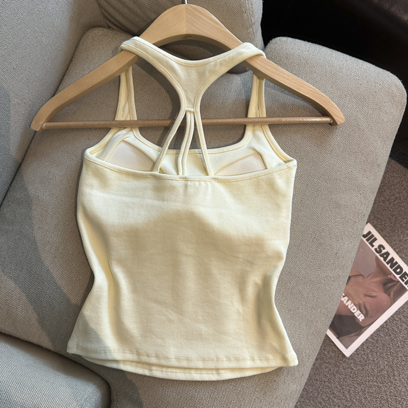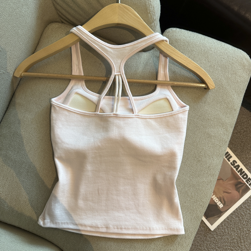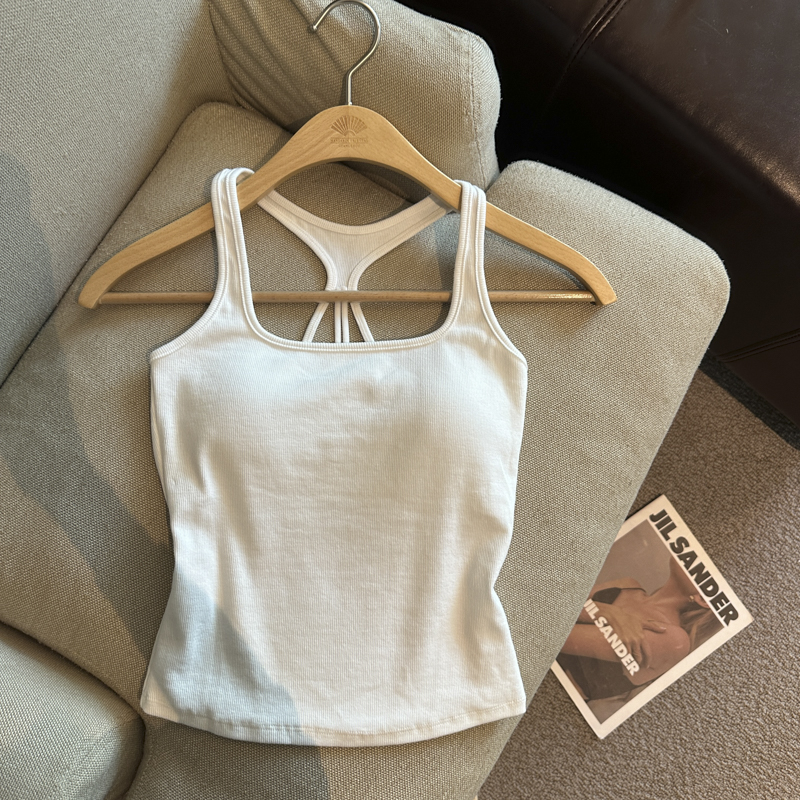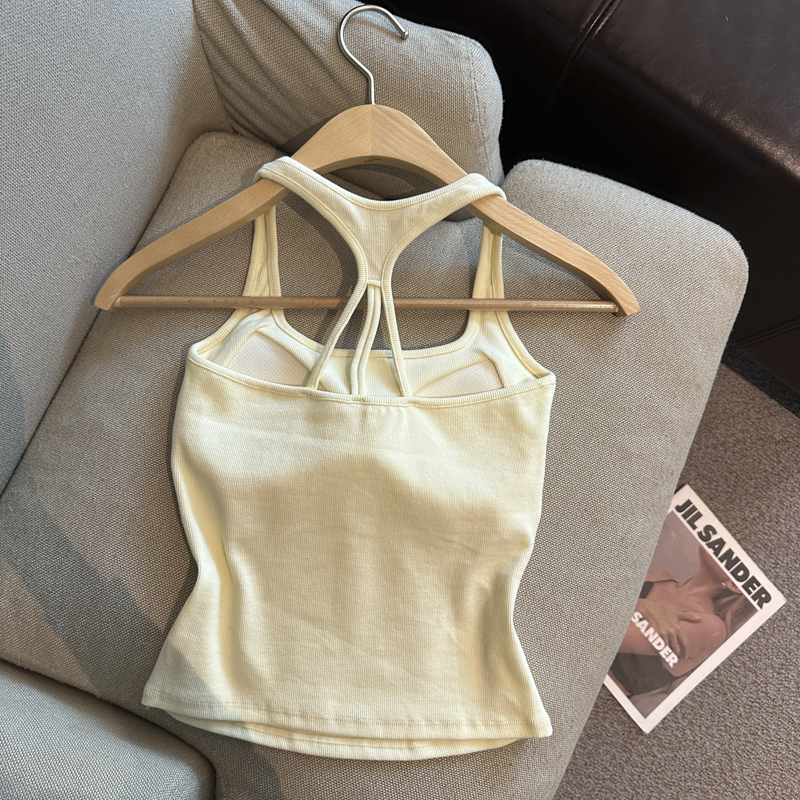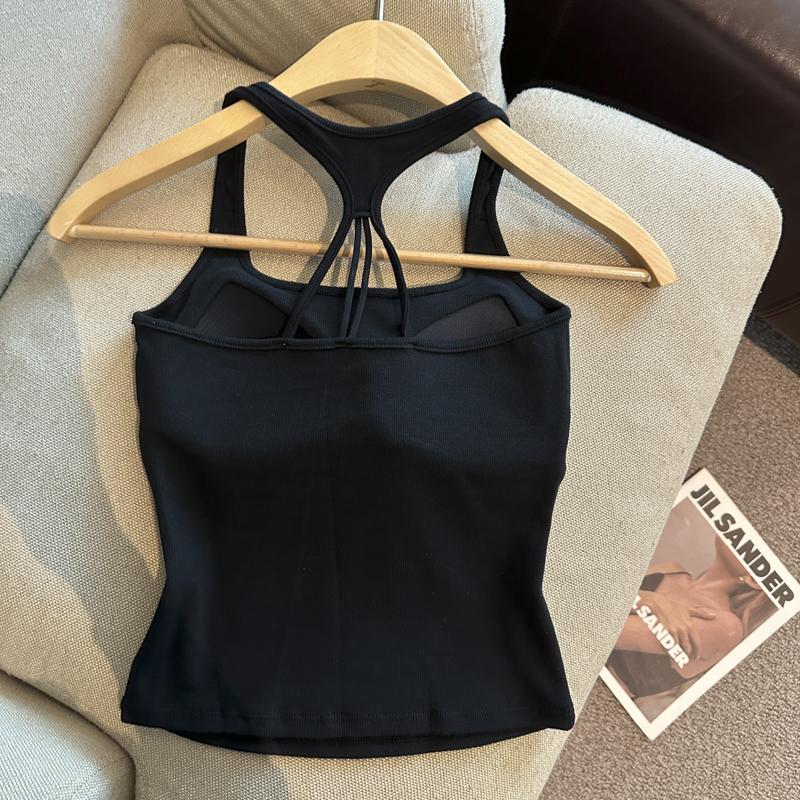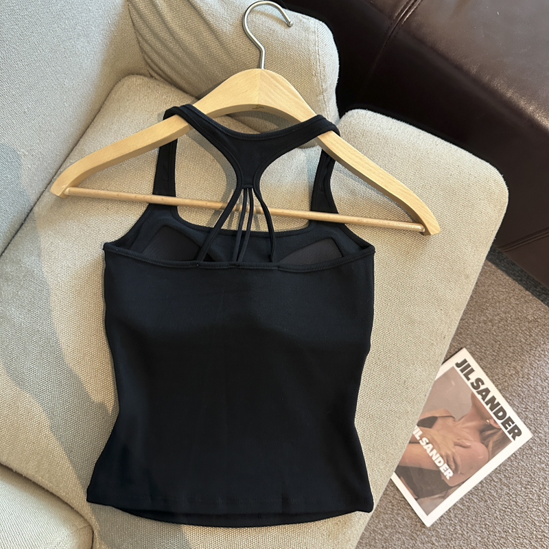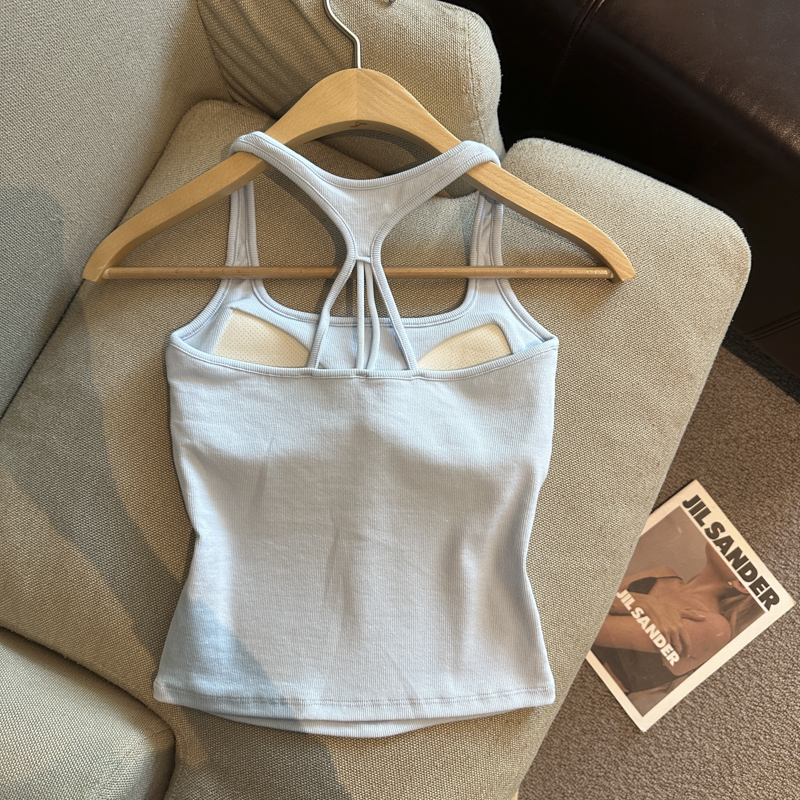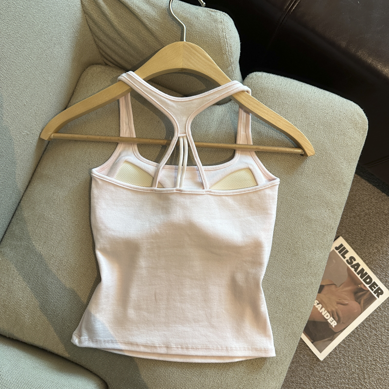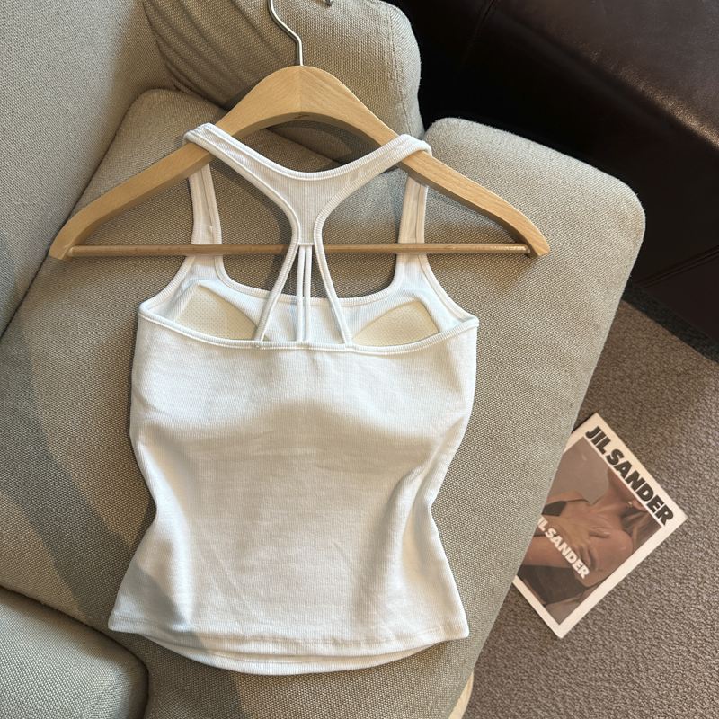 实拍 纯欲性感美背吊带背心女夏季内搭带胸垫甜辣妹短款镂空上衣