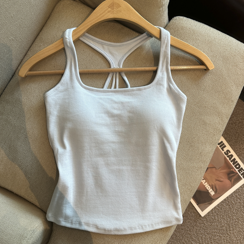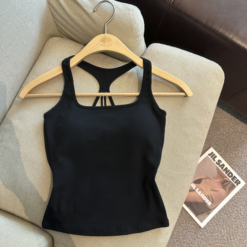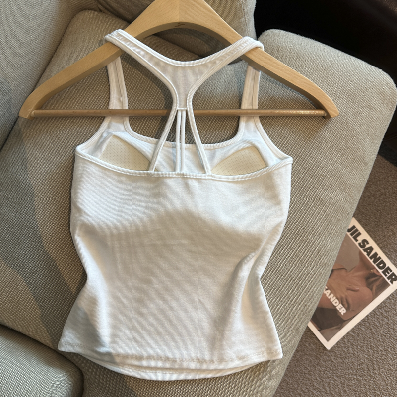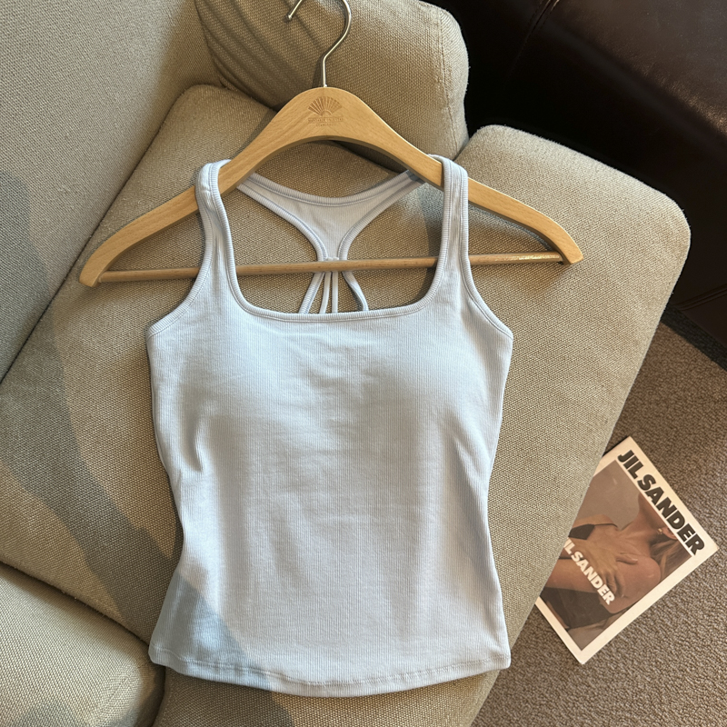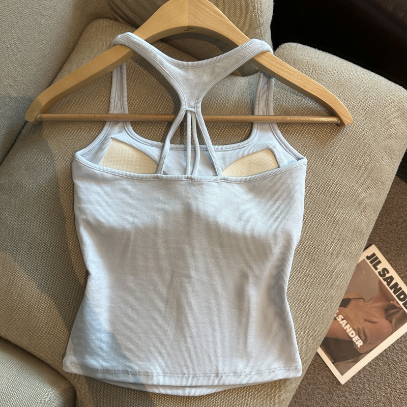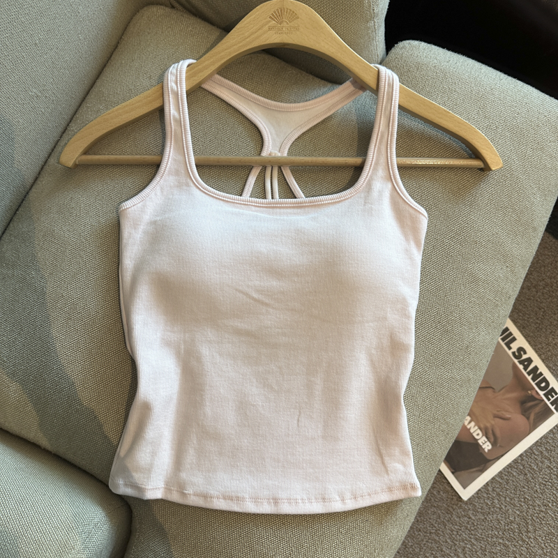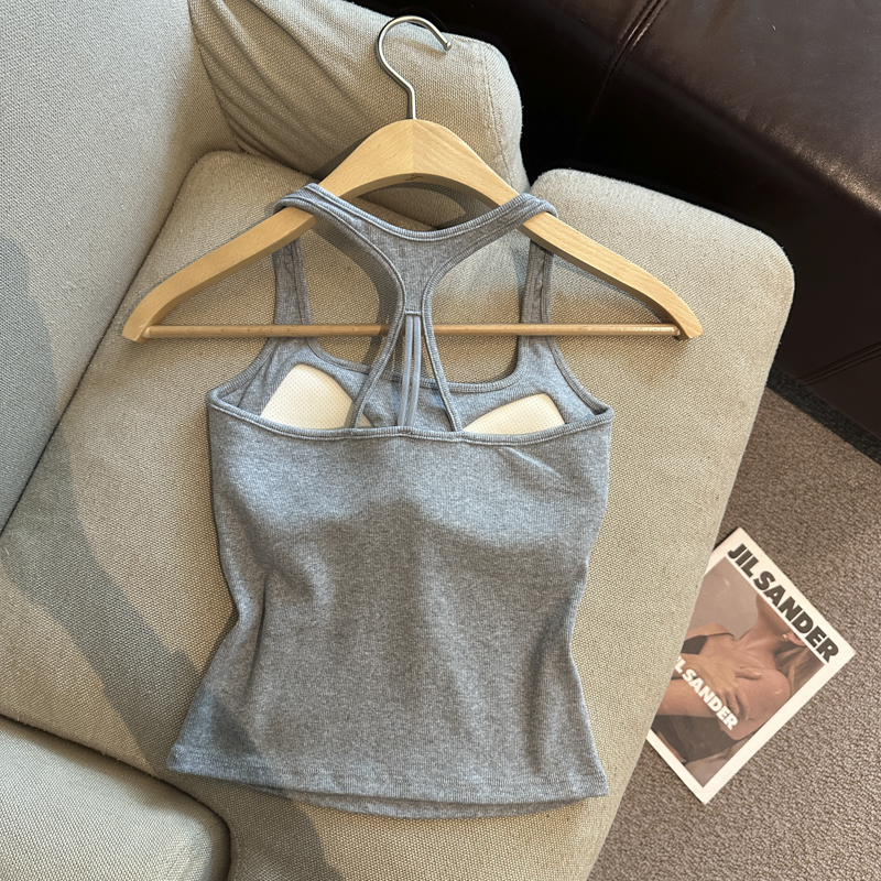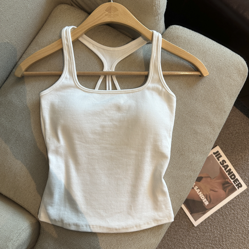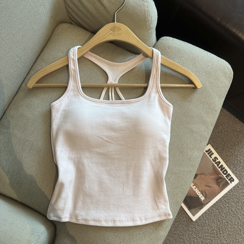 实拍 纯欲性感美背吊带背心女夏季内搭带胸垫甜辣妹短款镂空上衣